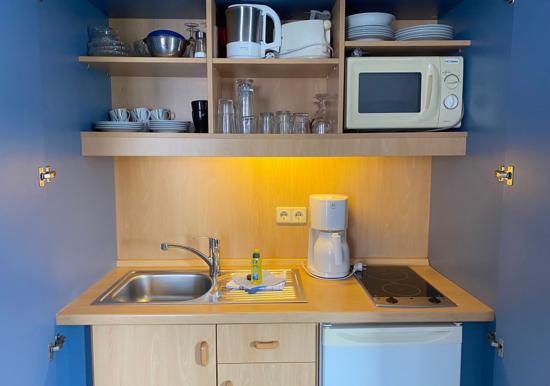 an recht ordentlich,aber Kleiderschrank hat uns gefehlt. auch die Koffer konnte man nicht unterbringen. ein Radio wäre auch schön gewesen