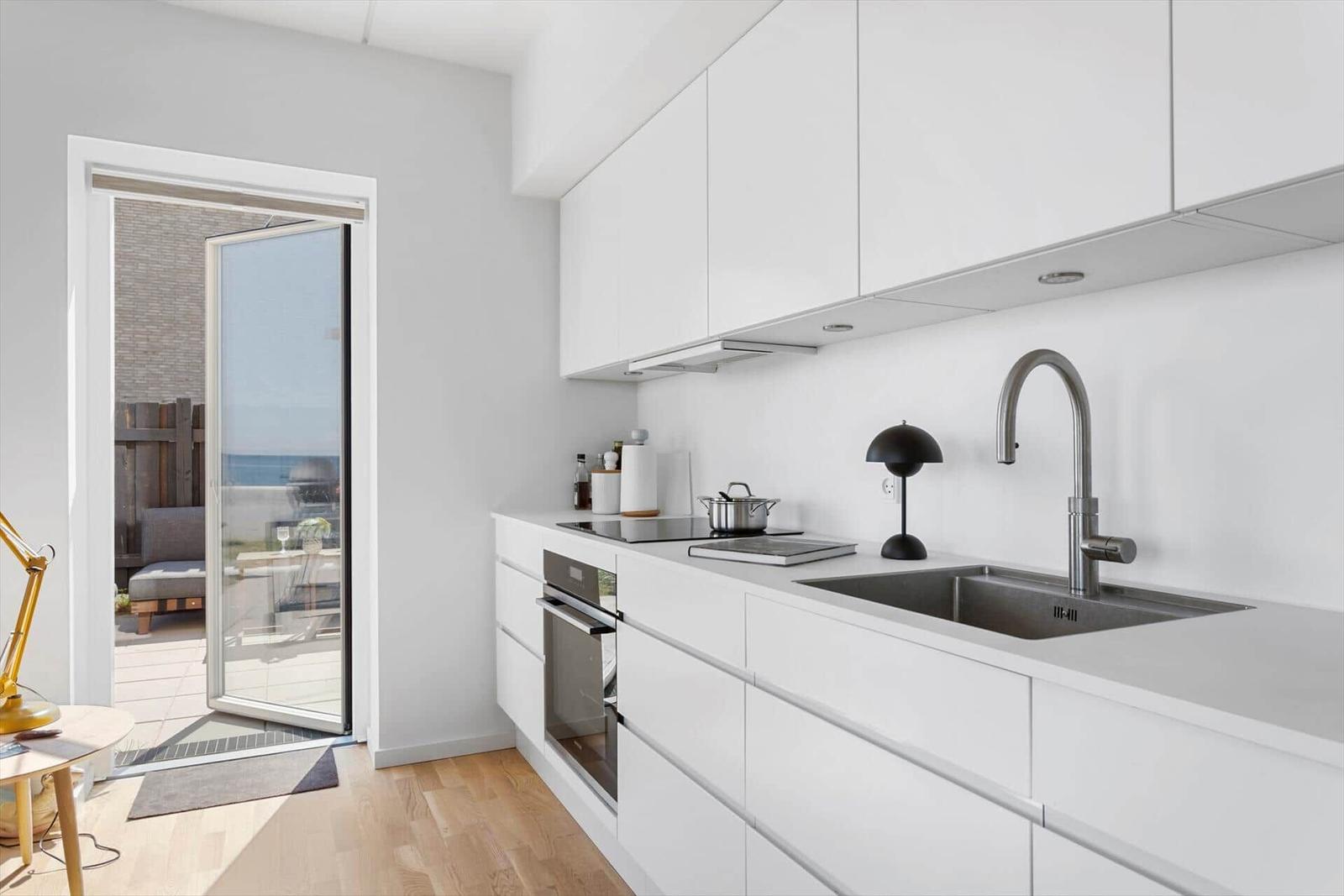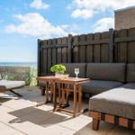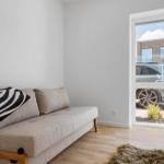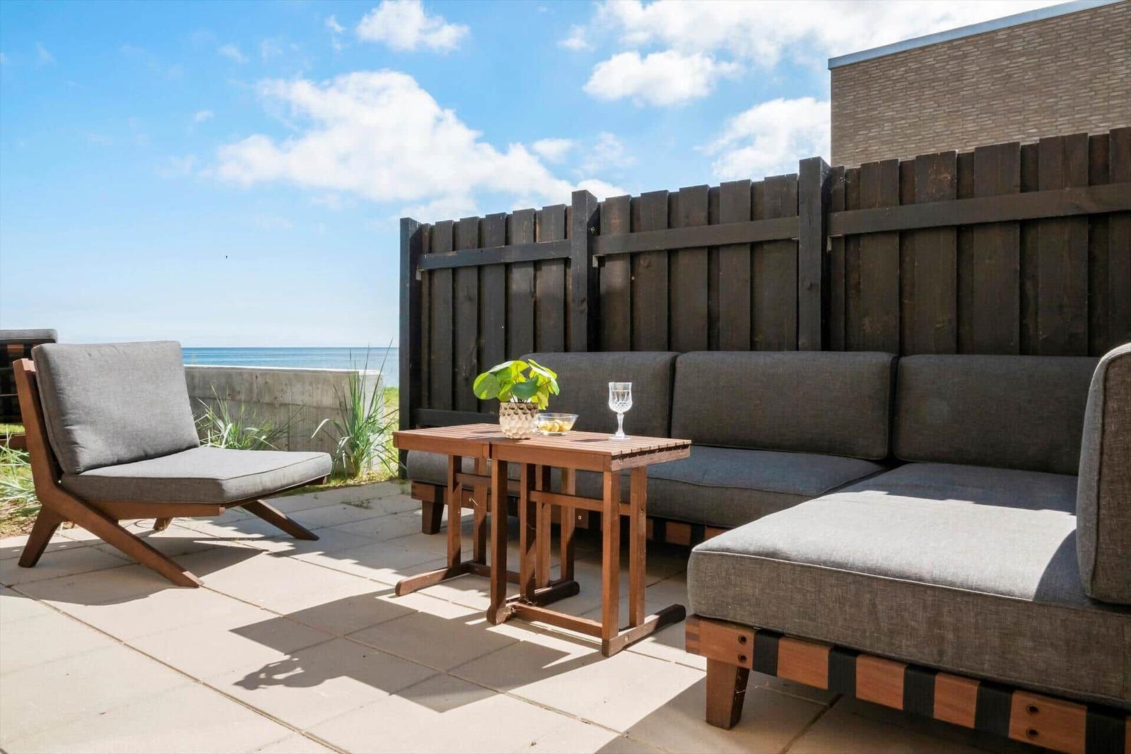 Welcome to this beautiful vacation apartment, where the ocean is always in sight. This bright and inviting accommodation features an open concept living area and kitchen, creating a natural gathering space. Large windows invite ample light, enhancing the atmosphere while offering stunning ocean views. The well-equipped kitchen, complete with a dishwasher, oven, refrigerator, and coffee maker, allows for easy meal preparation. Two cozy bedrooms accommodate restful nights, complemented by a bathroom featuring a shower. Modern amenities include Wi-Fi, a television, a washing machine, and a dryer, ensuring convenience during any stay. The entire apartment benefits from underfloor heating, providing comfort in all seasons. With a child’s highchair and additional sleeping arrangements on a sofa bed, this space is perfect for families. Enjoy outdoor living on the terrace, complete with comfortable furniture and a grill, making it an ideal spot for relaxation and meals amidst the fresh coastal air.