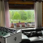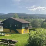 The holiday apartment is located in a picturesque setting at the Feriendorf Hohen Bogen in Arrach, right by a tranquil lake surrounded by the stunning landscapes of the Bavarian Forest. Guests can enjoy morning views over the water while being just a short distance from various attractions. The area features swimming spots, playgrounds for children, and a riding school nearby, along with numerous hiking and biking trails.