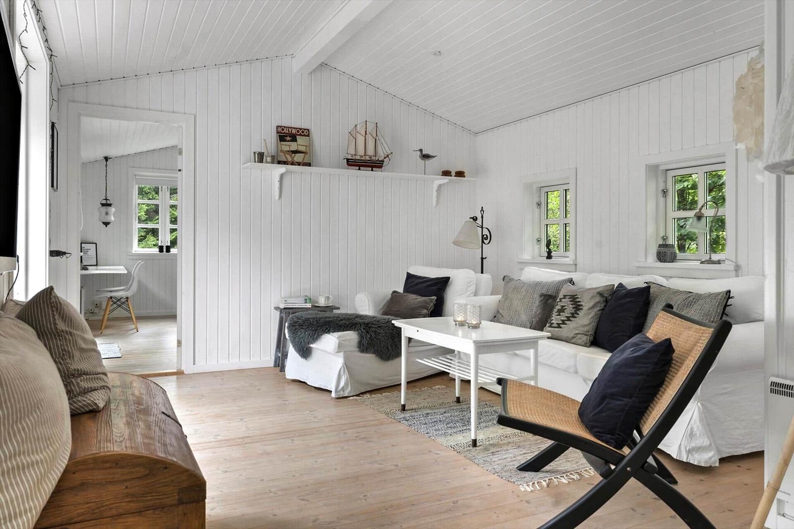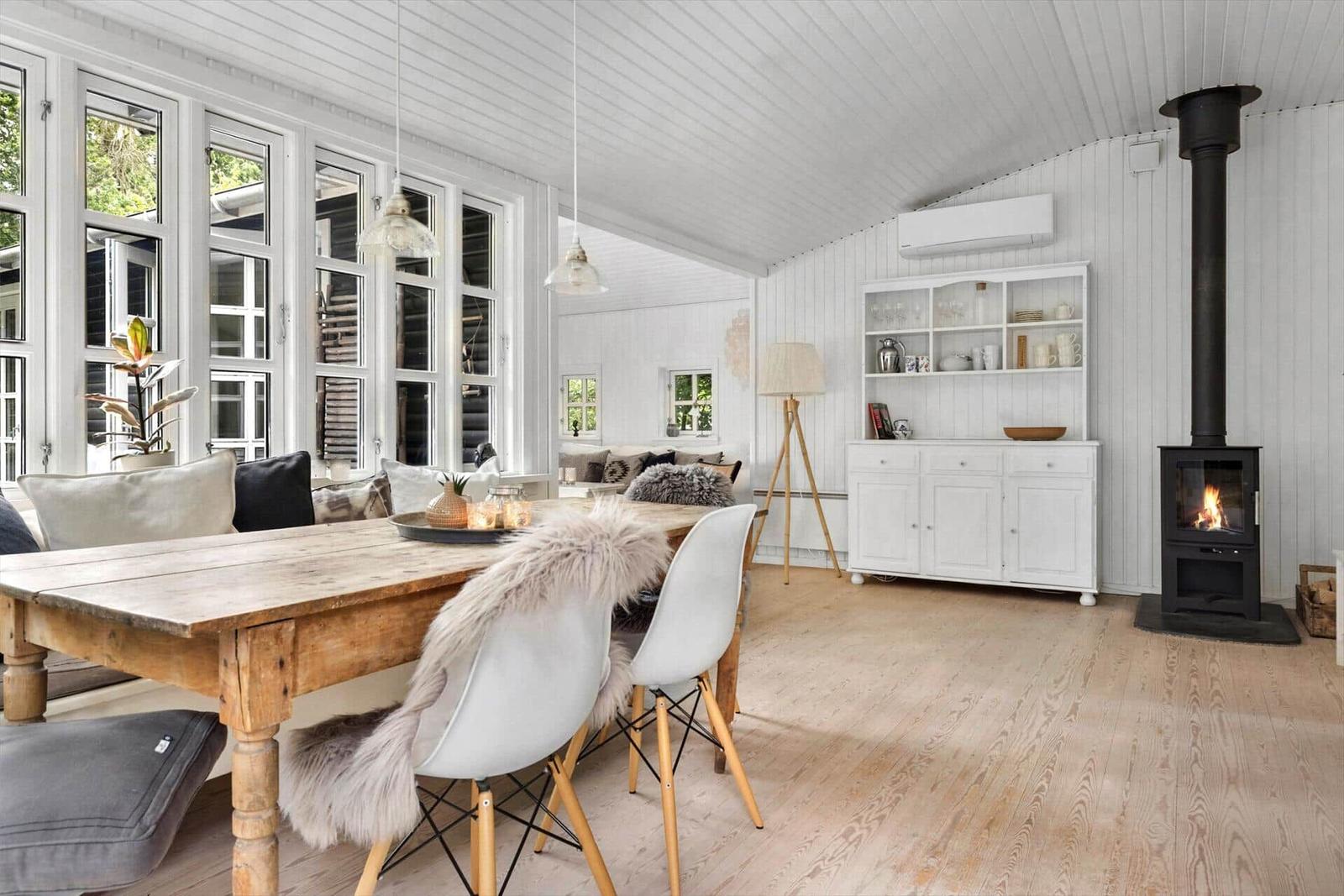 This charming holiday apartment in Asserbo, North Sealand, offers ample space for 8 adults and 1 pet. Spanning 65 m², with an additional 32 m² annex, it features a cozy decor highlighted by a welcoming fireplace. The apartment includes 4 bedrooms, equipped with 3 double beds and 4 single beds, providing comfortable sleeping arrangements. Two bathrooms are available, complemented by a separate kitchen featuring modern amenities such as a dishwasher, electric/gas stove, refrigerator, and coffee maker.
