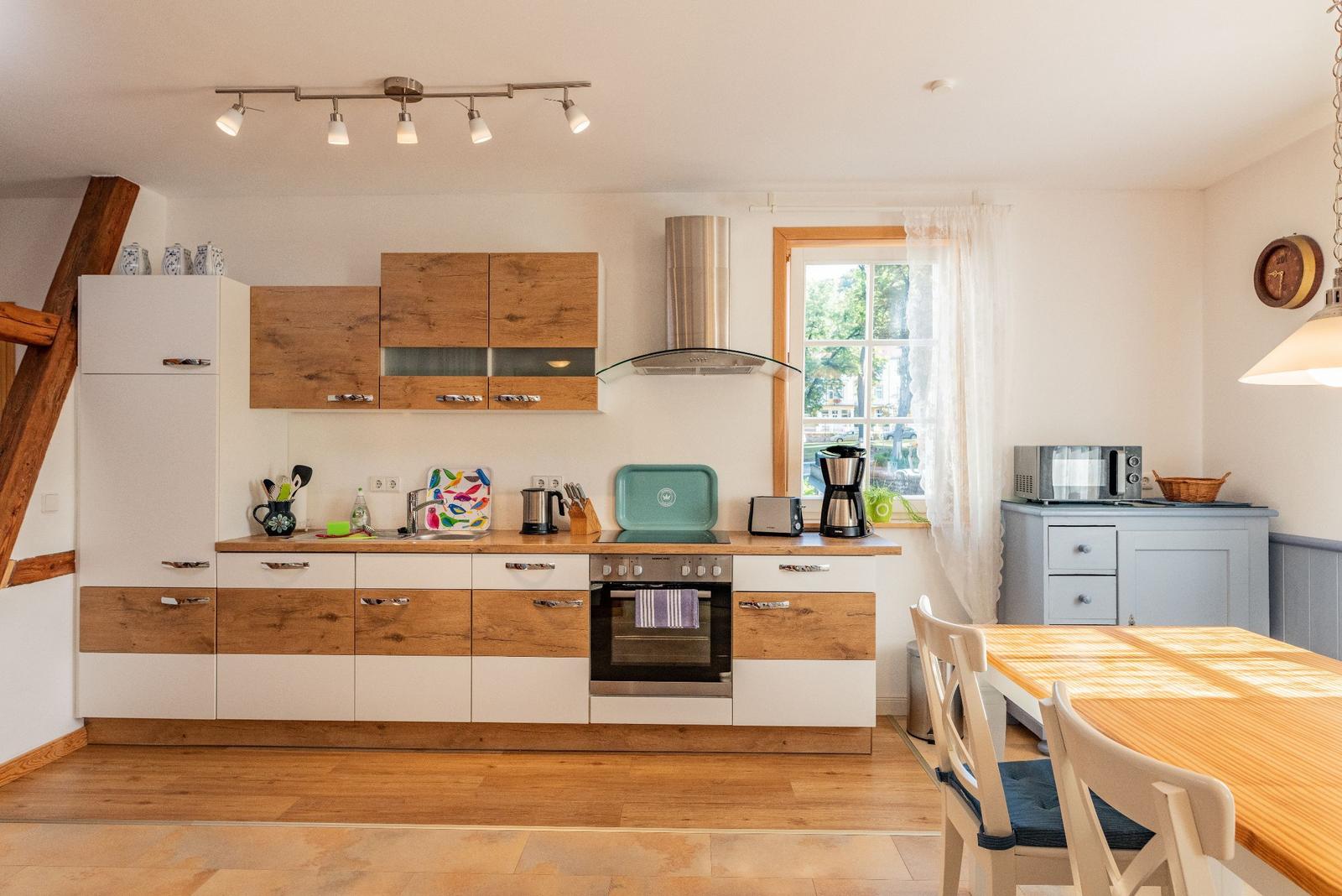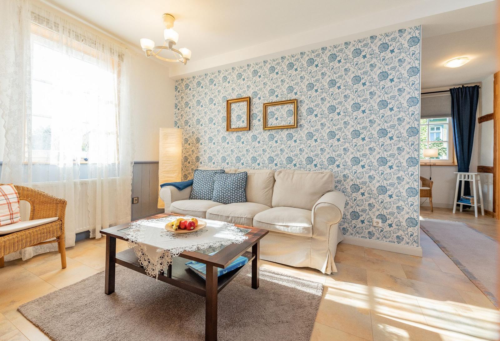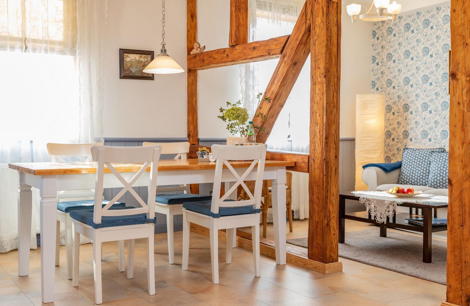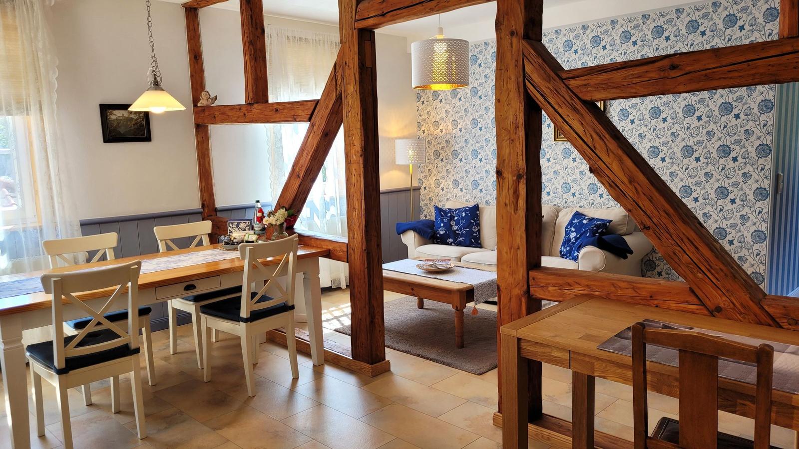 The vacation apartment, located in the historic "Alte Rathaus" of Bad Liebenstein, offers a prime central location on Herzog-Georg-Straße, one of the main streets of this charming spa town in the Thuringian Forest. Surrounded by historic buildings and delightful cafés, guests can immerse themselves in the unique atmosphere of the oldest spa in Thuringia.