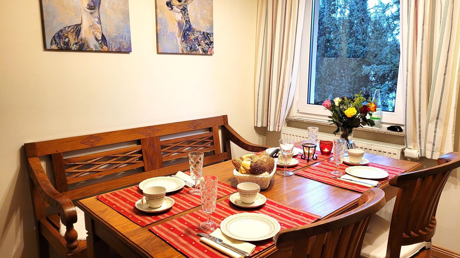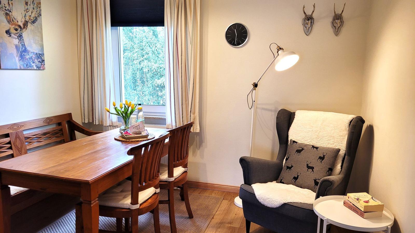 The elegant holiday apartment "Postblick," located on the first floor of the historic "Altes Rathaus" in Bad Liebenstein, offers an exquisite view of the charming historical post office across the street. This apartment is just a short walk from the picturesque spa park, the Wandelhalle, and Altenstein Castle, which boasts a stunning landscape. Nearby attractions include the renowned Rennsteig hiking trail and the famous Wartburg Castle in Eisenach, both easily accessible by car. The central location on Herzog-Georg-Straße provides convenient access to various restaurants, shops, and bakeries for fresh breakfast rolls. For arrival, guests will find a private parking space on the premises, making it easy to explore this delightful region. With its blend of historical charm and modern comfort, "Postblick" is an ideal retreat for those seeking a relaxing getaway.