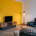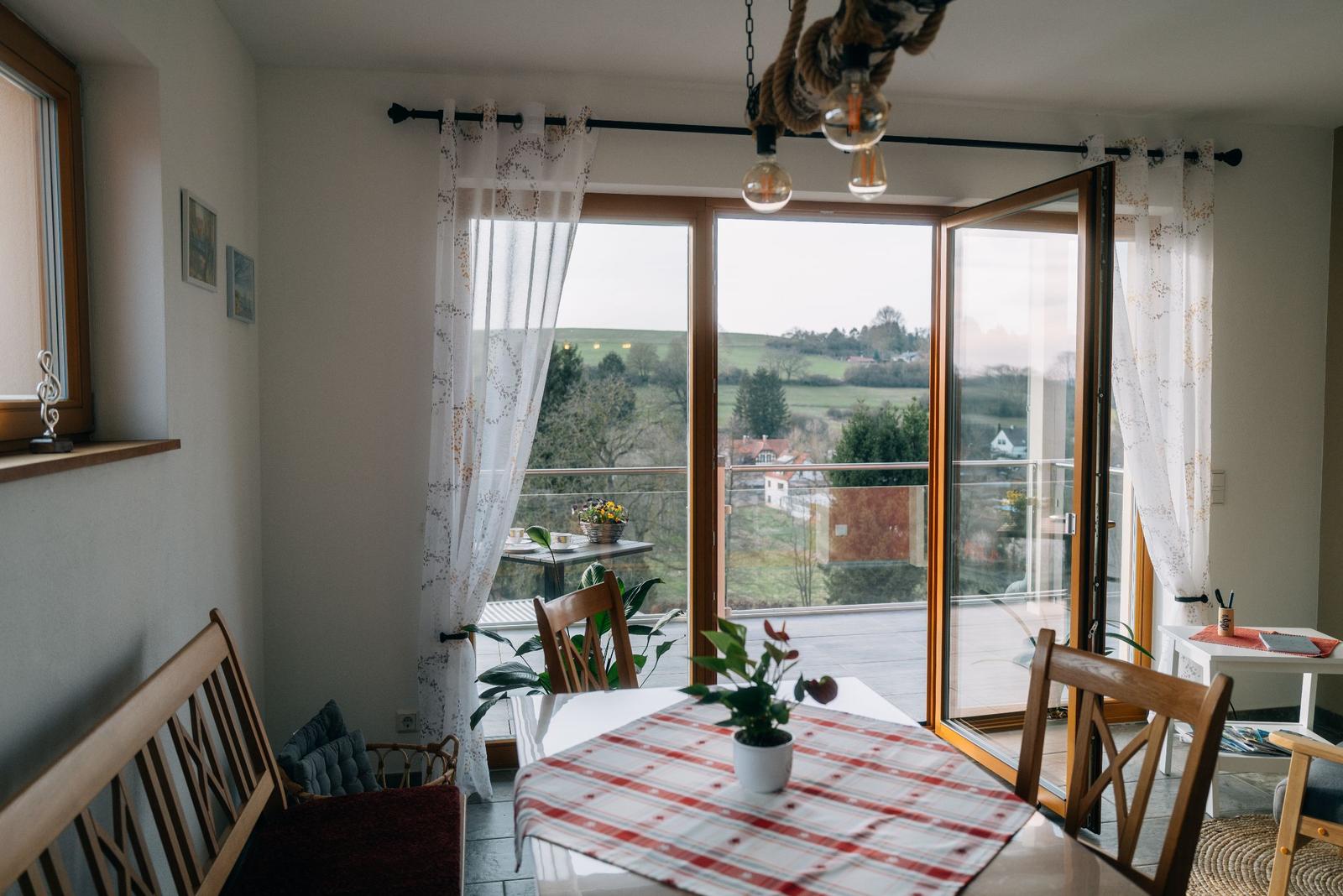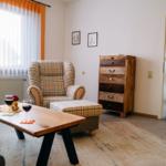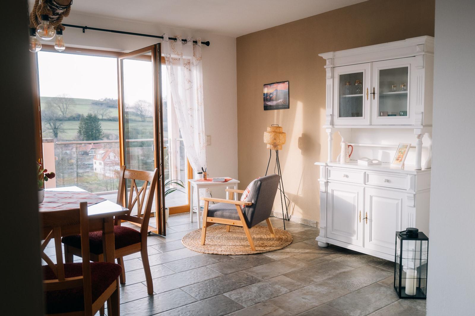 The "Altensteinblick" holiday apartment offers a perfect retreat in the picturesque surroundings of Bad Liebenstein. This charming accommodation, renovated in 2024, features 90 m² of space, ideal for two guests. It includes a cozy bedroom with a spacious double bed and an inviting living room furnished with a comfortable sofa, armchair, and dining area, perfect for relaxing evenings.