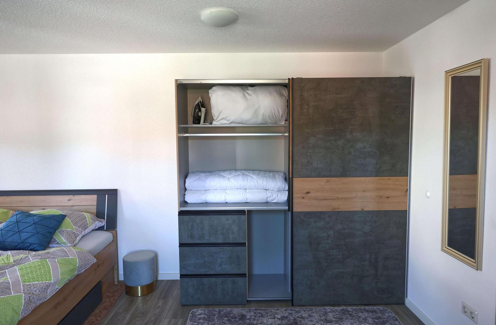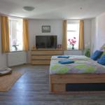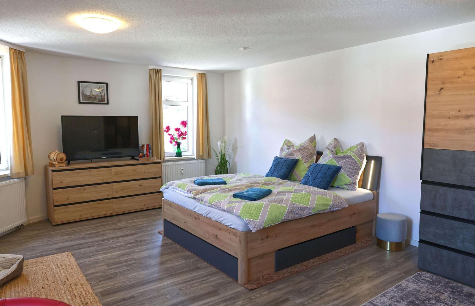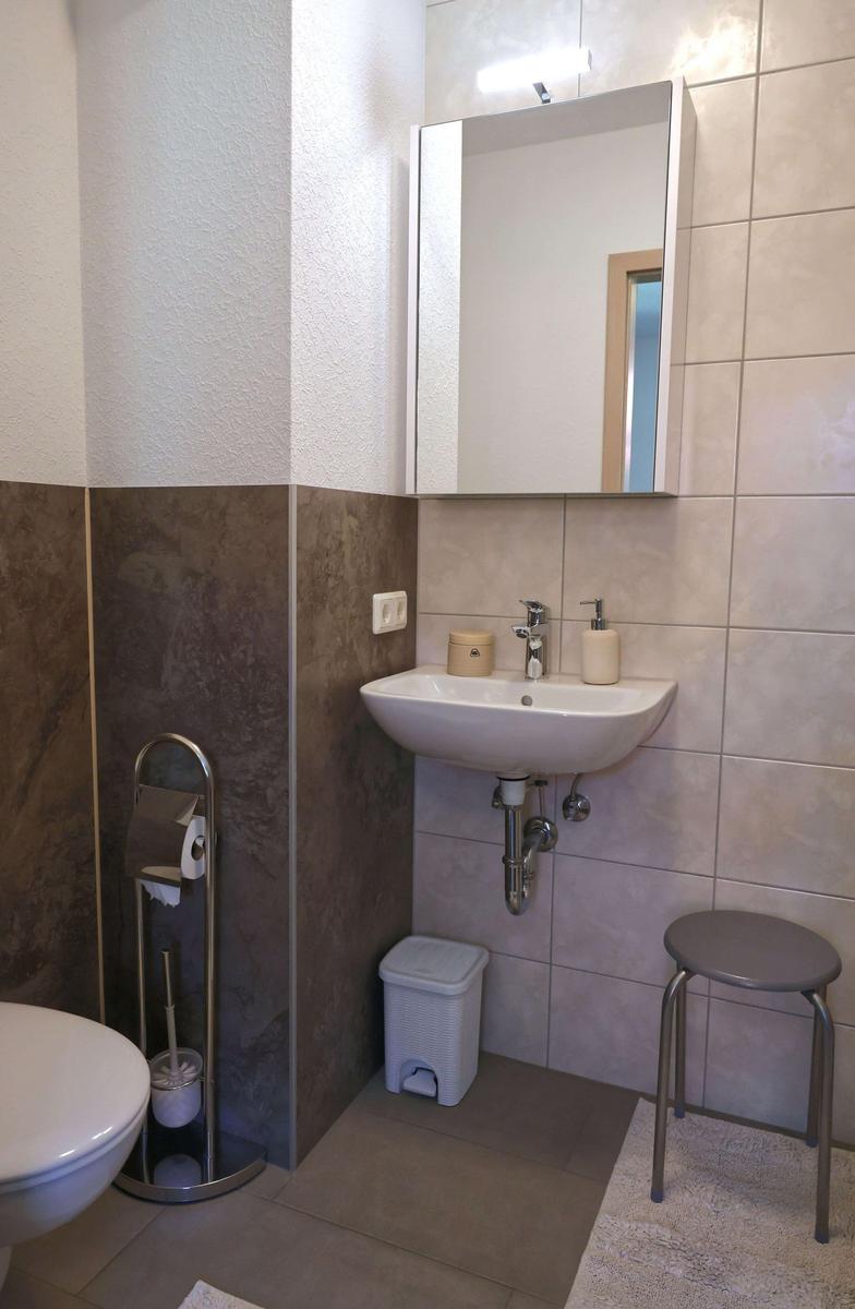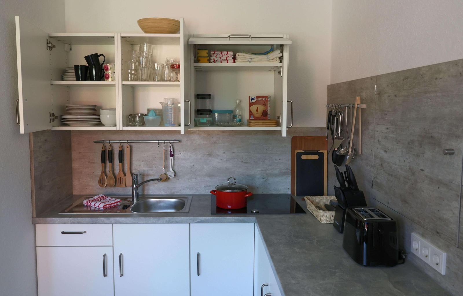 The vacation apartment "Zur Sonne," located in the historic inn in Schweina, offers a charming retreat infused with history and modern comfort. Positioned on the first floor, the freshly designed space combines rustic style with contemporary amenities. The entrance leads directly to a cozy dining area featuring a well-equipped kitchenette, perfect for preparing meals. The separate bedroom includes a comfortable bed, a stylish sitting area with two armchairs, and artwork by local artist Simone Dittmar, enhancing its unique charm. The compact bathroom is functional and includes a shower, WC, and hairdryer. An extra child’s bed can be provided upon request. Guests can enjoy free parking either in the backyard or at the nearby supermarket, just 100 meters away. This apartment is ideally suited for couples, solo travelers, or small families seeking relaxation amidst the natural beauty and culture of the Thüringer Wald. Check-in is available from 3:00 PM, and check-out is until 11:00 AM.
