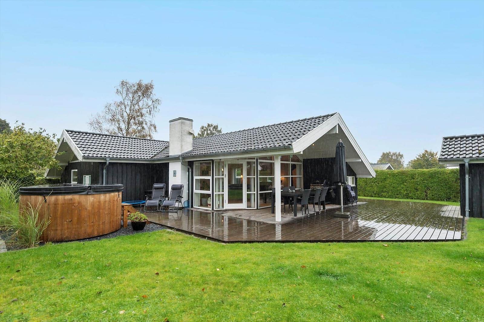 This charming vacation home in Mariendal Strand, East Jutland, accommodates up to 10 adults and offers a comfortable setting for relaxation. Spanning 89 m² with an additional 10 m² annex, it features four well-appointed bedrooms, each equipped with five double beds and two children's beds.