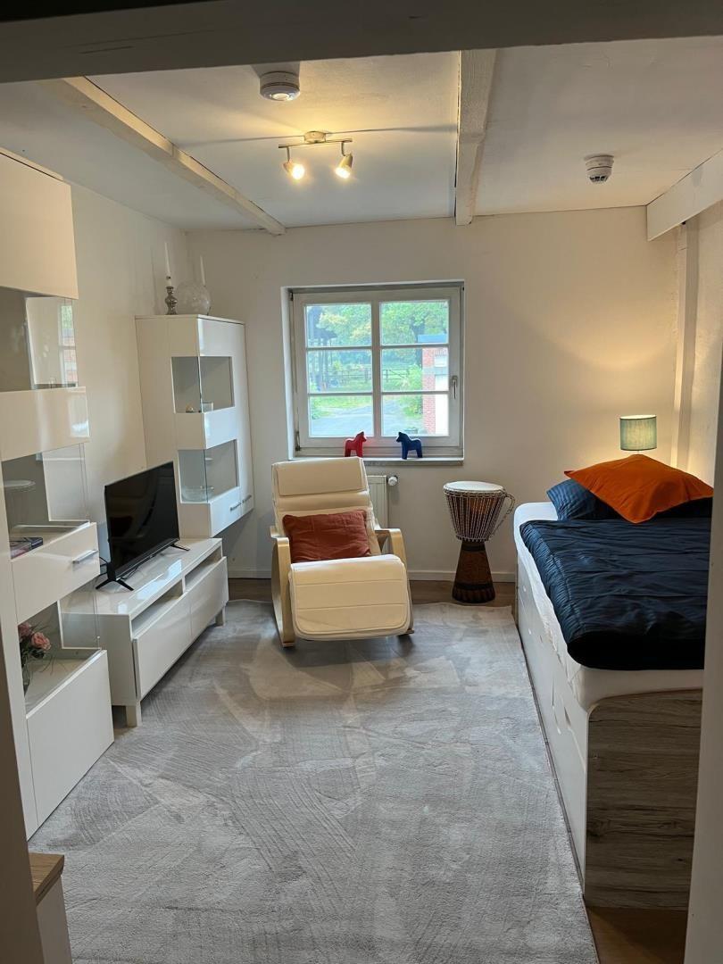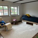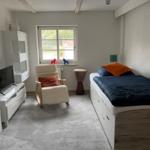 The vacation rental features a spacious and inviting outdoor area that enhances the overall experience. Guests can enjoy the sunny days on the private balcony, perfect for unwinding and soaking up the sun. For families traveling with children, the property offers the unique opportunity to engage with animals, as horses and other pets reside on the premises, making it an ideal spot for animal lovers. While the balcony provides personal outdoor space, it's important to note that the larger outdoor areas are used communally, allowing guests to socialize and share experiences with others. This thoughtful design caters to all, creating a welcoming atmosphere. The accommodation is designed to host up to five guests, ensuring ample room for relaxation and enjoyment. The property is conveniently located in Bönen and awaits the arrival of visitors who seek a blend of comfort and nature during their stay.