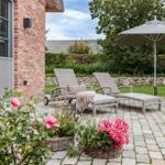 The apartment is allergy-friendly, features underfloor heating, and includes essentials such as a high chair, ironing board, and cleaning supplies. Parking is available, and a sunshade is provided for outdoor enjoyment.