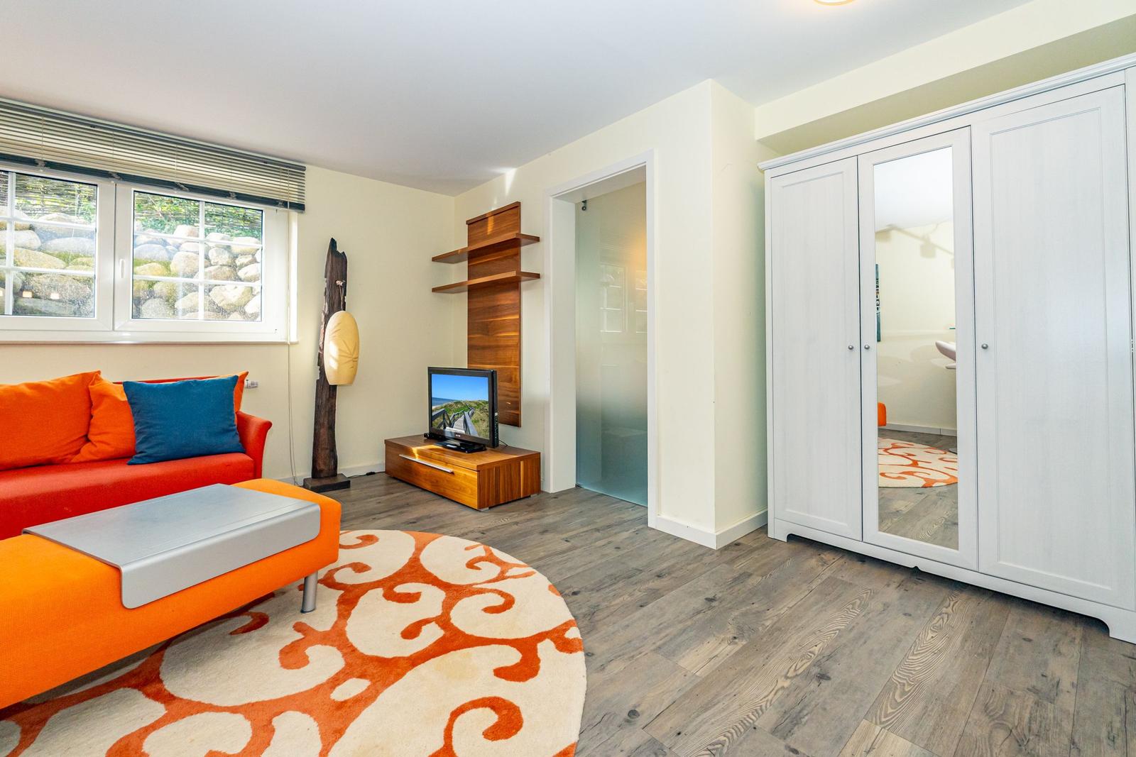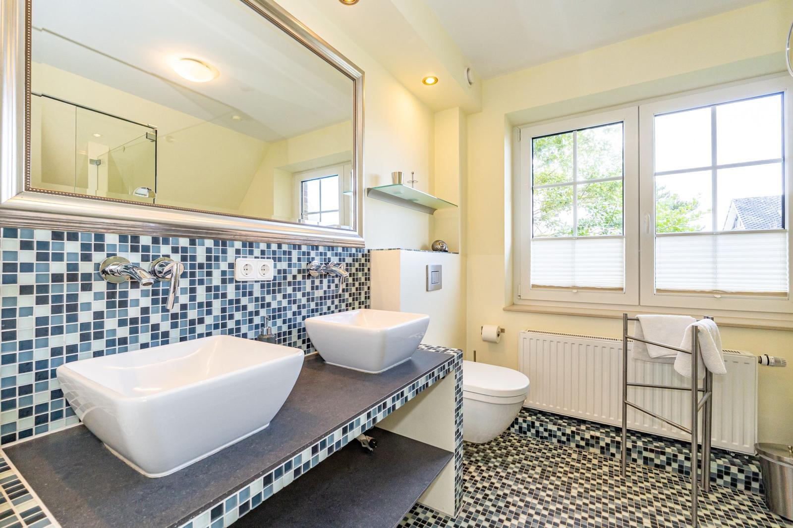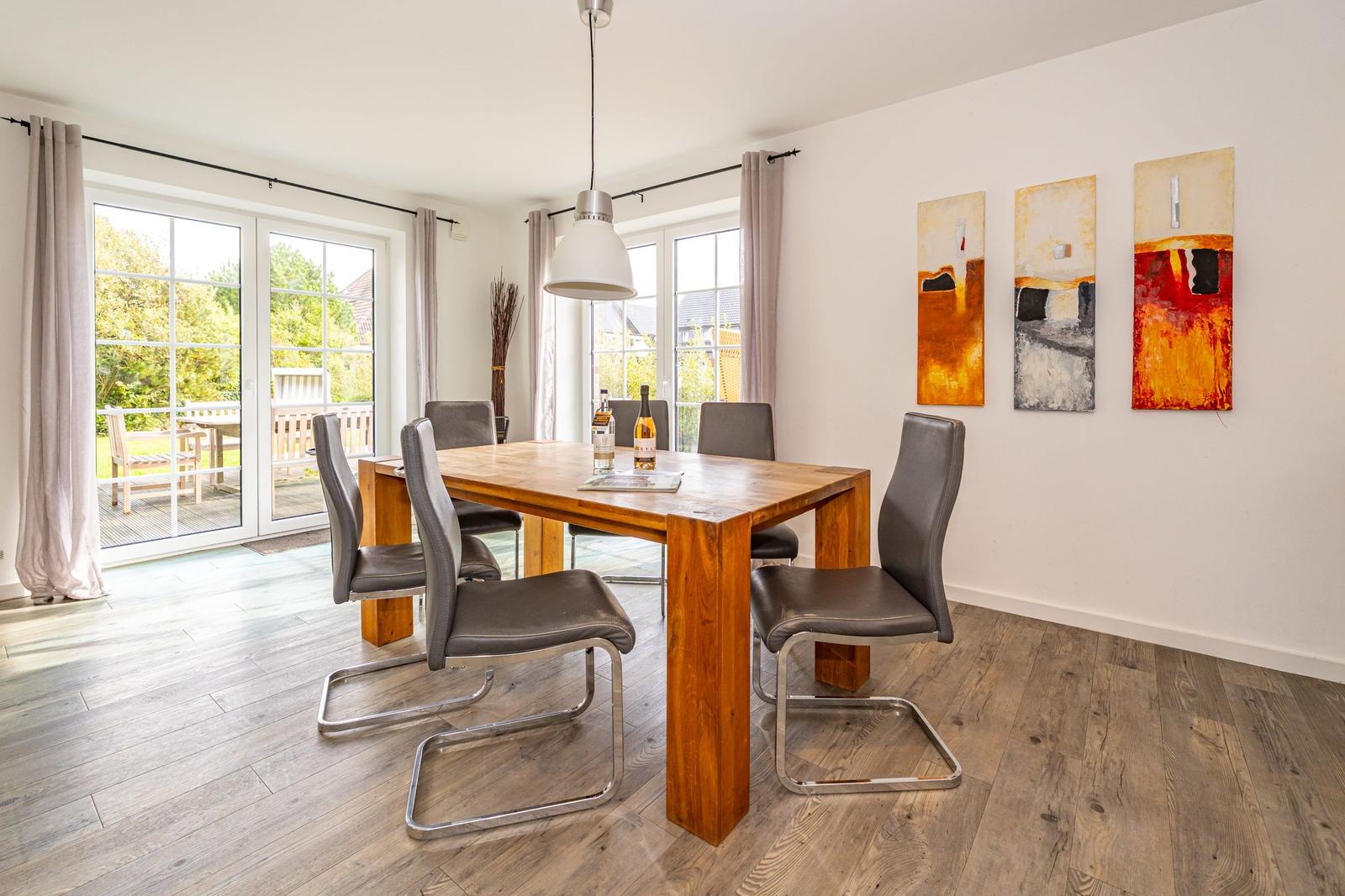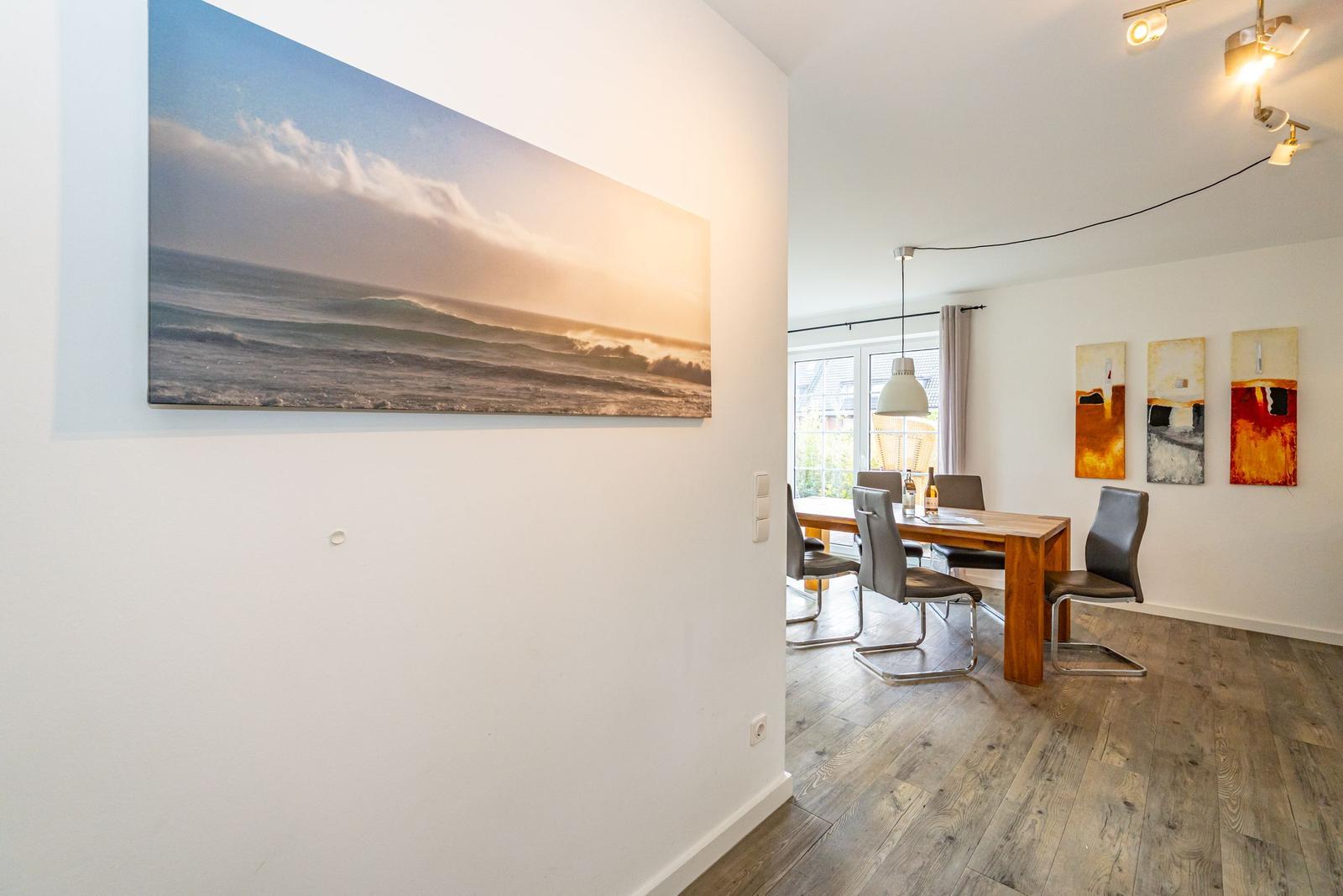 The Villa Luna is situated in an ideal location in Wenningstedt-Braderup on Sylt, just 600 meters from the beautiful sandy beach, providing easy access to the captivating coastal atmosphere. Within walking distance, guests can find various shops, restaurants, and essential amenities, all located between 250 and 800 meters away. For those interested in golf, the nearest golf course is approximately 2,100 meters from the villa. Public transport is conveniently accessible at 250 meters, while the nearest train station is 3 kilometers away, and Sylt Airport is about 3,500 meters from the property. The surrounding area offers a blend of maritime charm and serene island landscapes, appealing to both families and active vacationers. With a lovely garden view, the villa serves as an excellent starting point for exploring the beautiful island of Sylt.