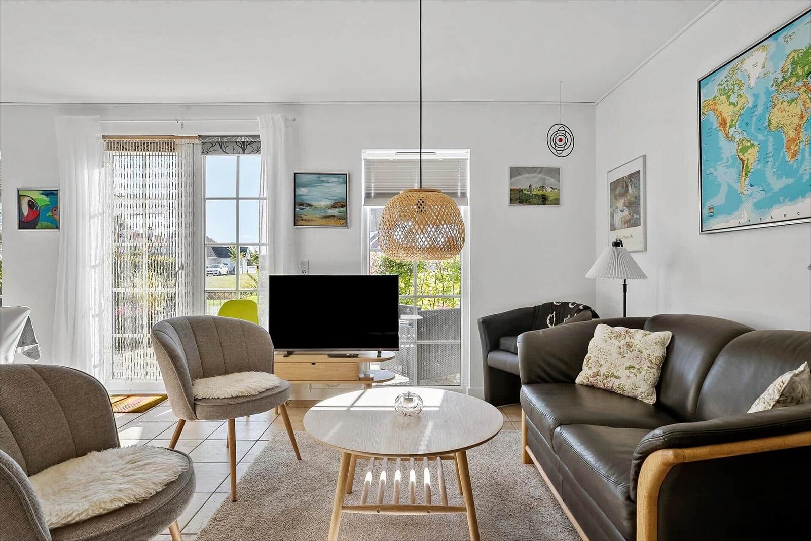 This charming holiday apartment in Varbjerg Strand, Funen, offers a spacious and comfortable retreat for up to 6 adults. Spanning 103 m², the residence features 3 cozy bedrooms equipped with 3 double beds and 1 children's bed, ensuring ample space for families. The open kitchen is fully equipped with modern amenities, including a dishwasher, electric/gas stove, oven, microwave, refrigerator, and coffee maker, perfect for preparing meals. Guests will appreciate the convenience of a washing machine, tumble dryer, and energy-efficient heating, alongside a welcoming living area with a Smart TV and fireplace. The stylish bathroom includes a shower, while additional comforts like Wi-Fi, parking, and a children's high chair ensure a pleasant stay. Located just 250 meters from the beach and 5,000 meters from shopping, this vacation home combines relaxation with convenience. A sandbox is also available on the 150 m² property, making it ideal for families.