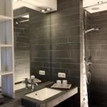 The bathroom light gray natural slate dominated in accordance with the large mirrors. Bathroom and shower are individually manufactured and tailored to the room.