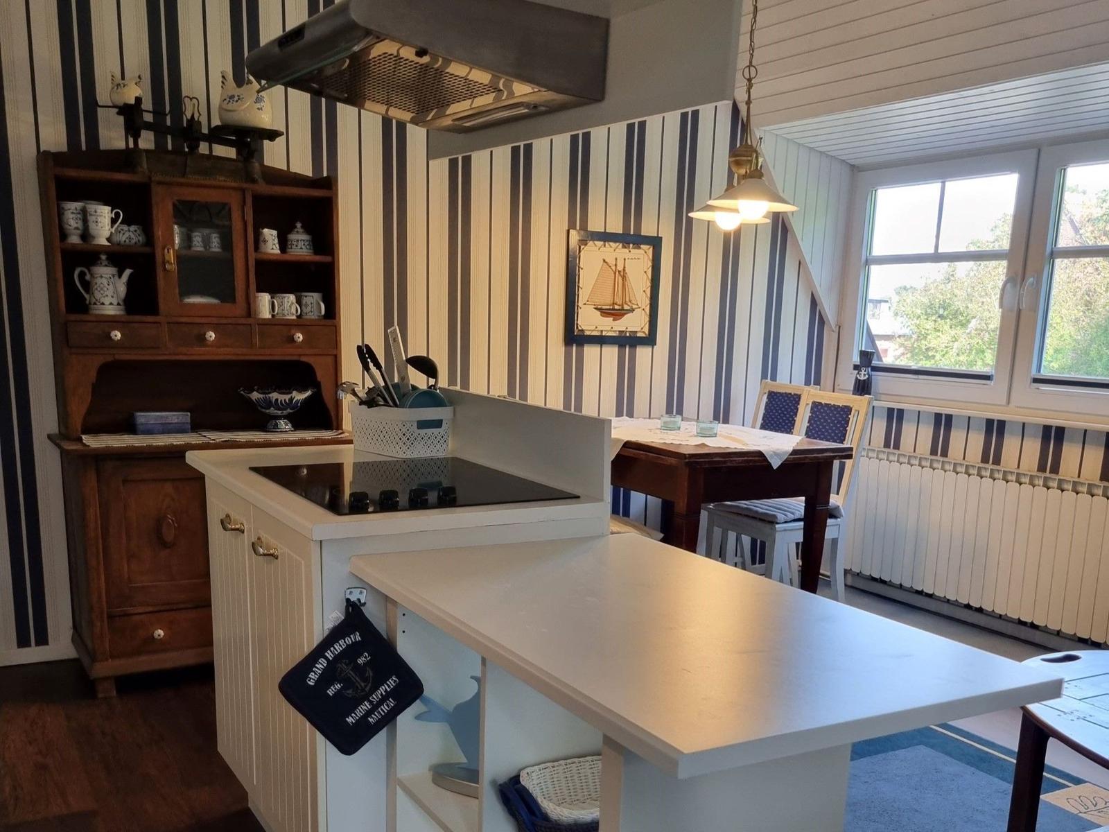 The Klönschnack holiday apartment in Burhave offers a charming outdoor area ideal for relaxation. Guests can enjoy a private seating area in the garden during the warm months, perfect for a leisurely afternoon or a cozy evening. Additionally, the expansive green spaces surrounding the property contribute to a tranquil atmosphere, ideal for unwinding. The garden includes a barbecue area, making it a great spot for outdoor dining. The location ensures that the beach, just 1,000 meters away, is easily accessible, enhancing the outdoor experience. With convenient amenities like a designated parking space and free Wi-Fi, the Klönschnack apartment provides a warm and welcoming setting for families and those seeking a serene getaway. The nearby countryside is perfect for walking, cycling, and water sports, completing the outdoor adventure that awaits.