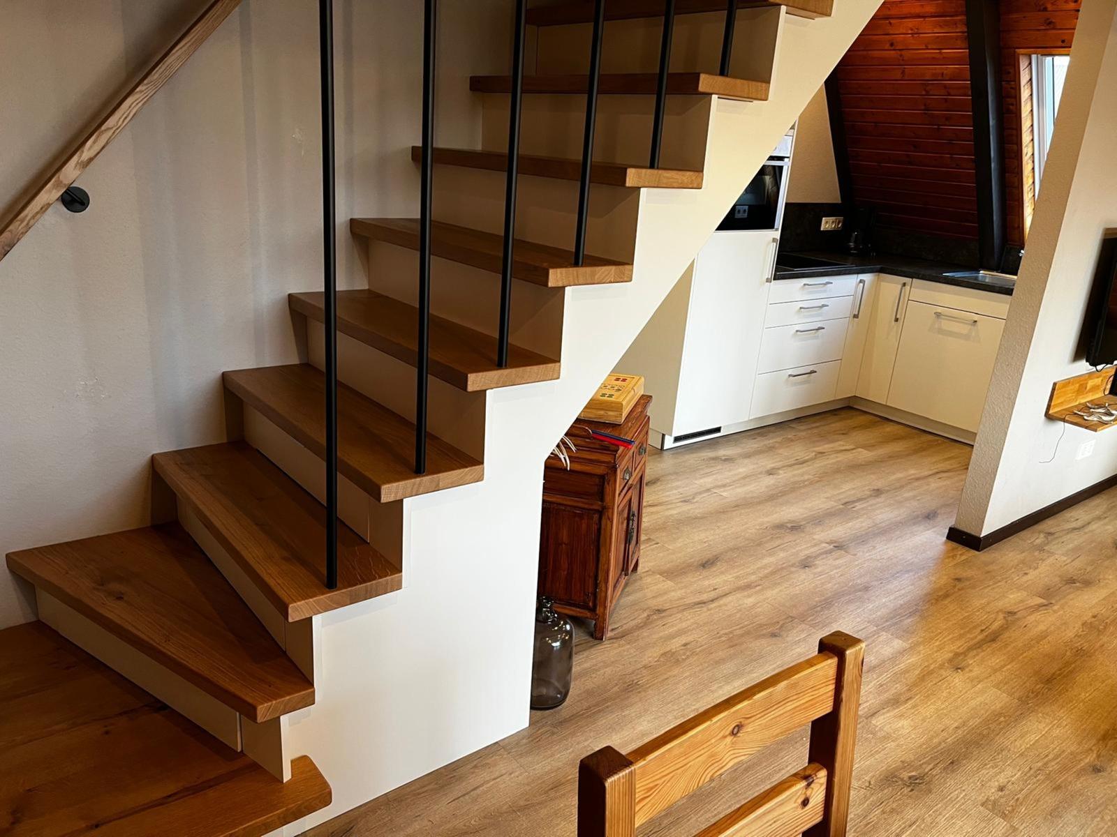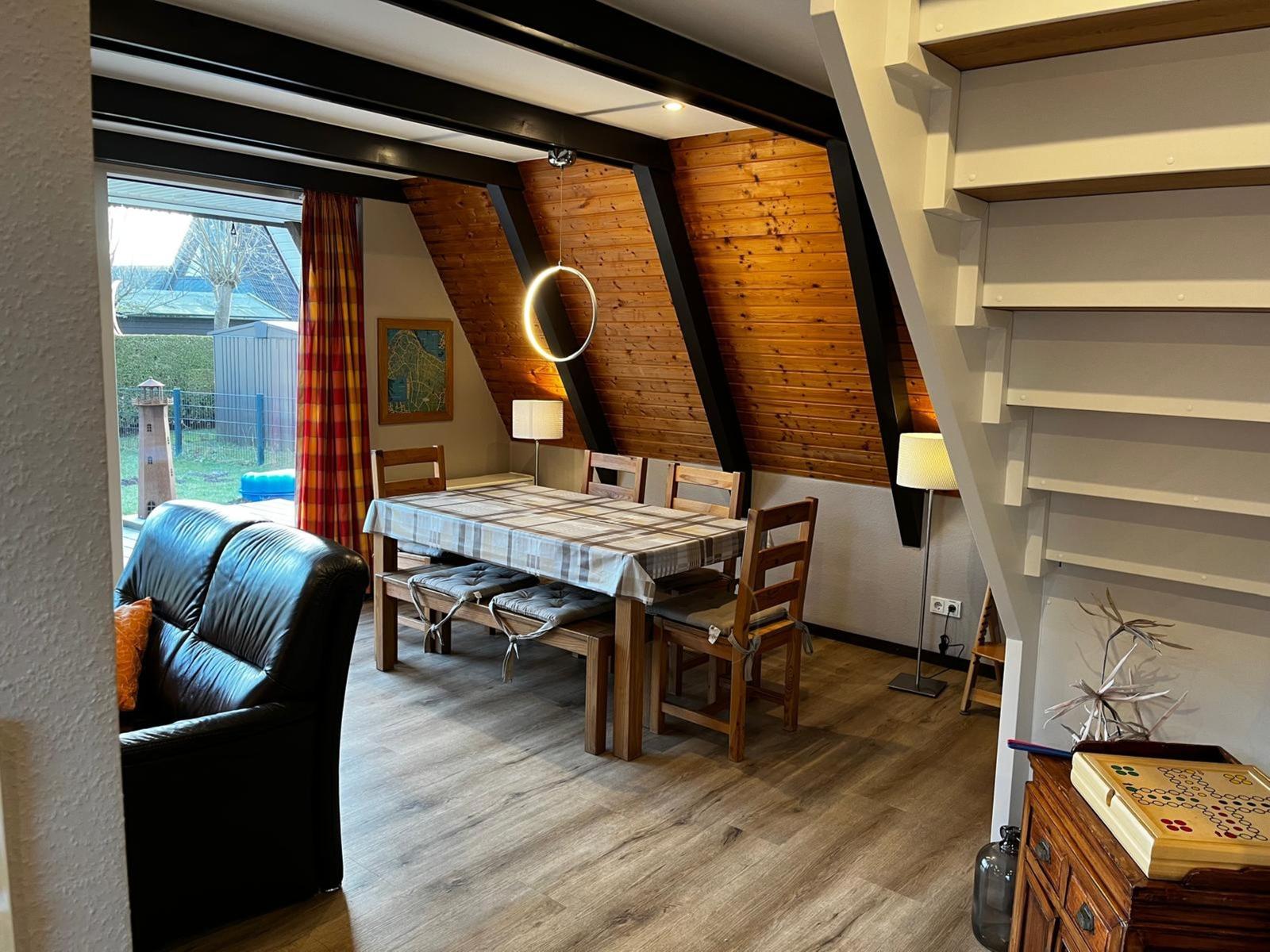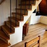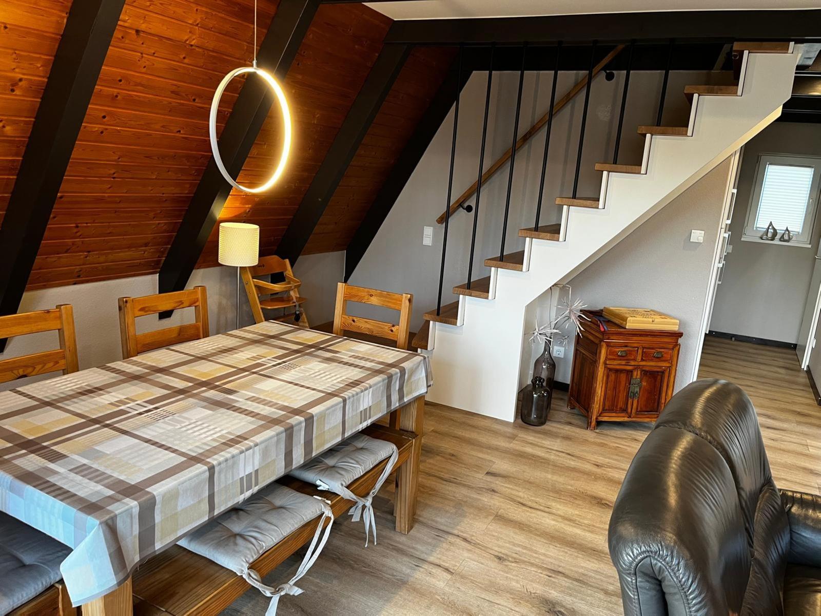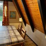This vacation apartment offers a spacious and comfortable retreat, featuring three bedrooms furnished with two double beds and two single beds, making it ideal for families or groups. The open kitchen is well-equipped with modern appliances, including a dishwasher, oven, gas/electric stove, microwave, and a refrigerator, alongside a starter set of spices, coffee machine, and toaster. The cozy living area is complemented by a sofa, armchair, and a dining table, perfect for gatherings. The apartment also includes a bathroom with a window and shower, hairdryer, and necessary amenities such as cleaning supplies and a vacuum cleaner. With fast internet access (25 MBit/s), a TV, and a HiFi system, relaxation is assured. The space is allergy-friendly, and convenient features such as a children's high chair, desk, and parking enhance the overall experience. Safety measures including smoke detectors and a stair guard ensure peace of mind during the stay.