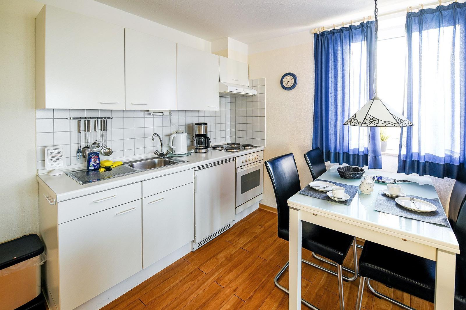 This modern vacation apartment offers a comfortable and stylish retreat, ideal for a relaxing getaway. It features one cozy bedroom with a double bed, perfect for rejuvenating sleeps. The open kitchen is fully equipped with an electric/gas stove, oven, microwave, refrigerator, coffee machine, toaster, and ample storage, catering to all culinary needs. The inviting living area includes a sofa and armchair, creating a welcoming atmosphere. Guests will appreciate the bathroom with a window, featuring a shower, hairdryer, and underfloor heating for added comfort. Additional amenities include high-speed internet with Wi-Fi, a Hi-Fi system, TV, and laundry facilities with a washing machine and dryer. The apartment is also allergy-friendly, ensuring a pleasant environment. A parking space and elevator access enhance convenience. With everything thoughtfully provided, this vacation apartment is the perfect choice for a memorable stay.