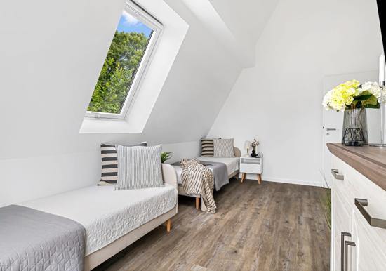 The "Inselloft" holiday home on Fehmarn offers an inviting outdoor space for guests to unwind and enjoy the beautiful surroundings. The terrace, accessible from the light-filled living area, is furnished with a garden table and six chairs, complemented by a sun parasol for shade on sunny days. Guests can indulge in outdoor cooking with the provided high-quality electric grill.
