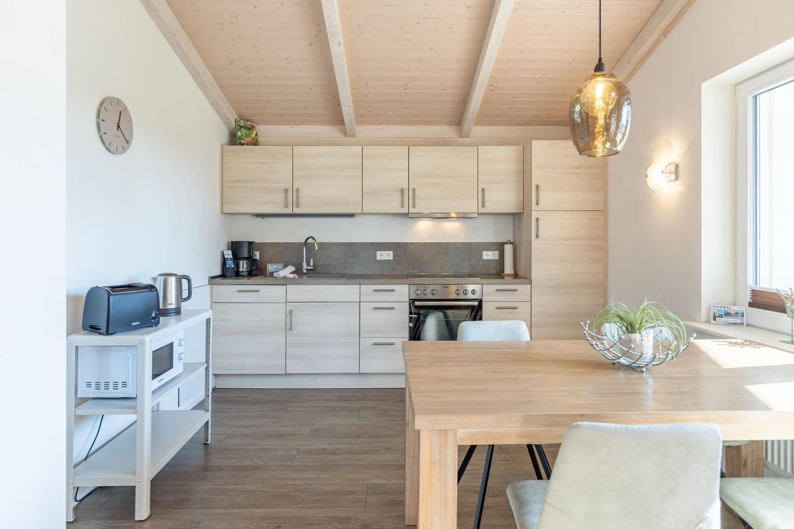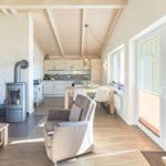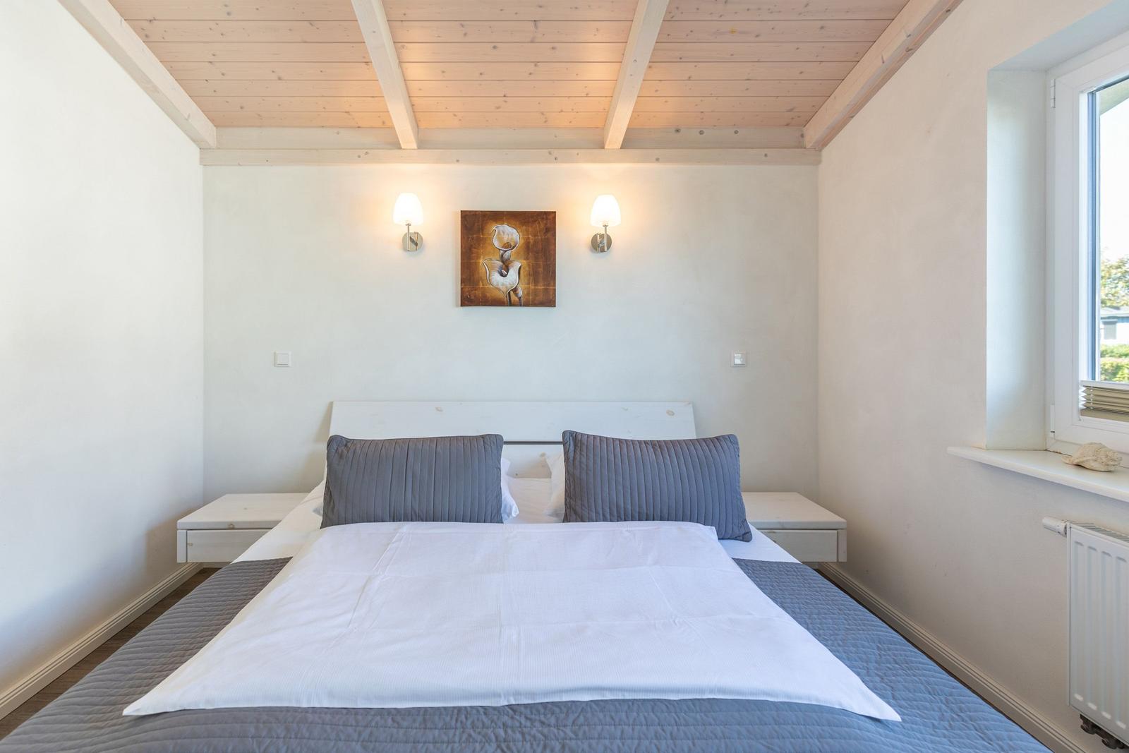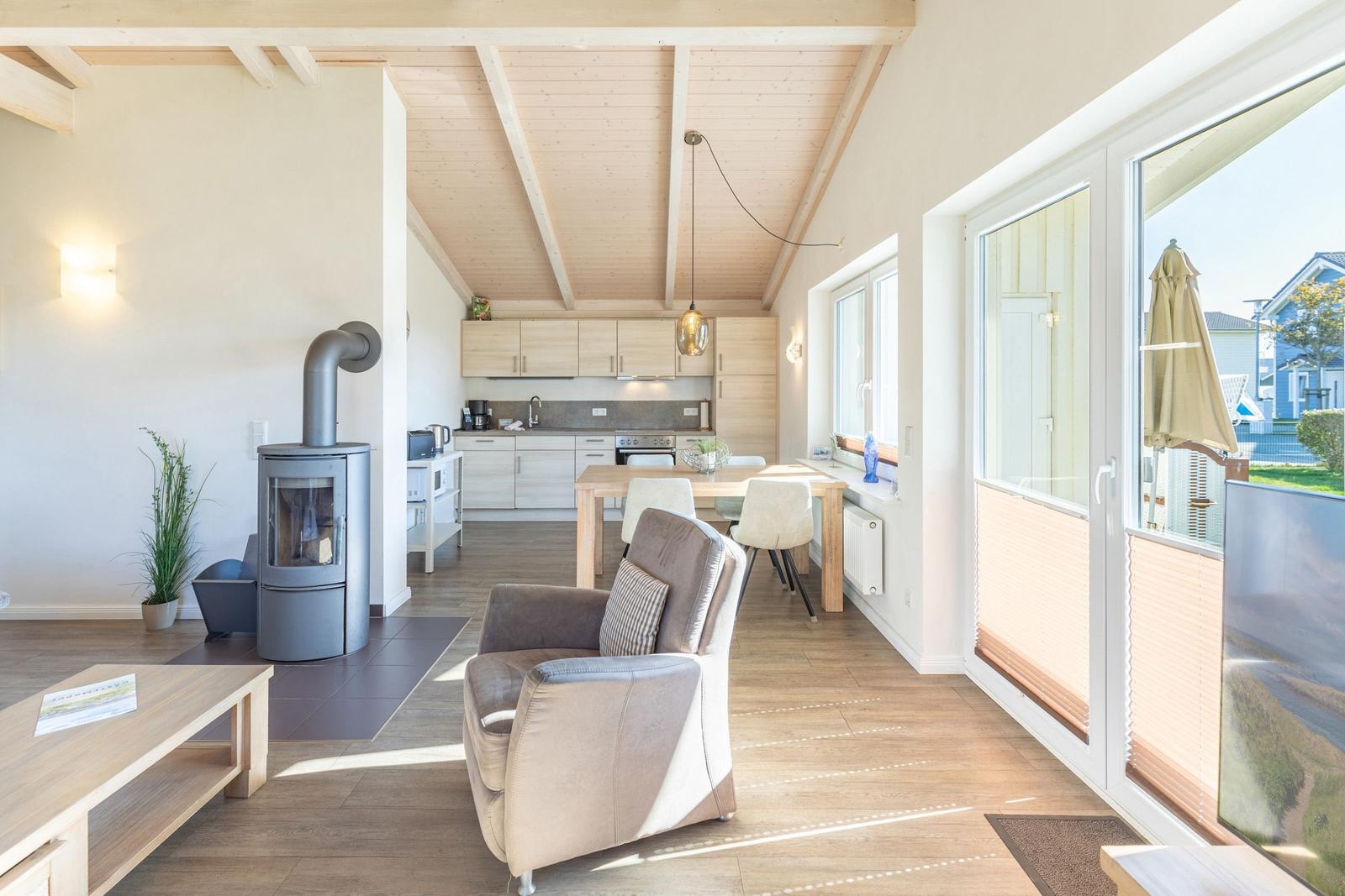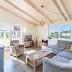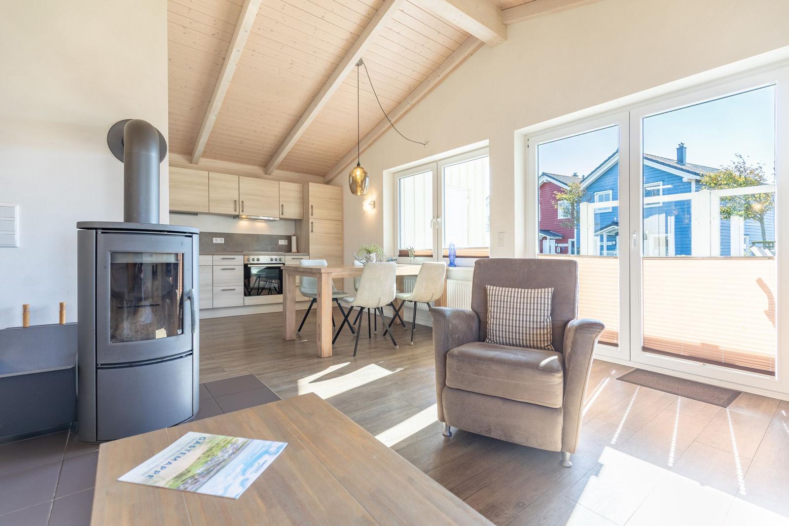 The "Oland" holiday home in Dagebüll offers a luxurious, ground-level accommodation for up to four guests. Comprising two beautifully appointed bedrooms, each with a comfort double bed (180 x 200 cm), this 85 sqm house is designed with modern Scandinavian charm. The cozy living room features a Smart TV and a fireplace, ensuring warmth and comfort during cooler seasons.