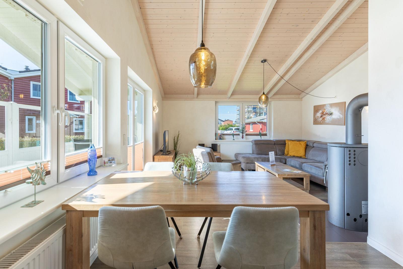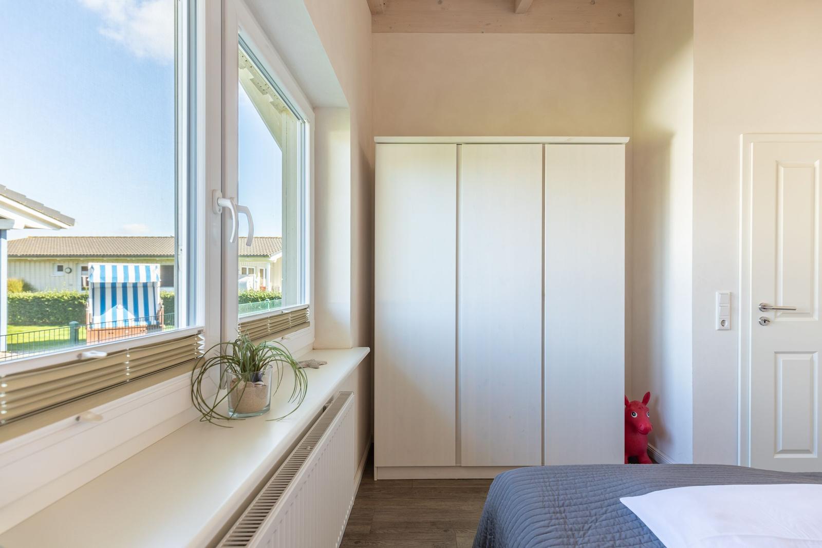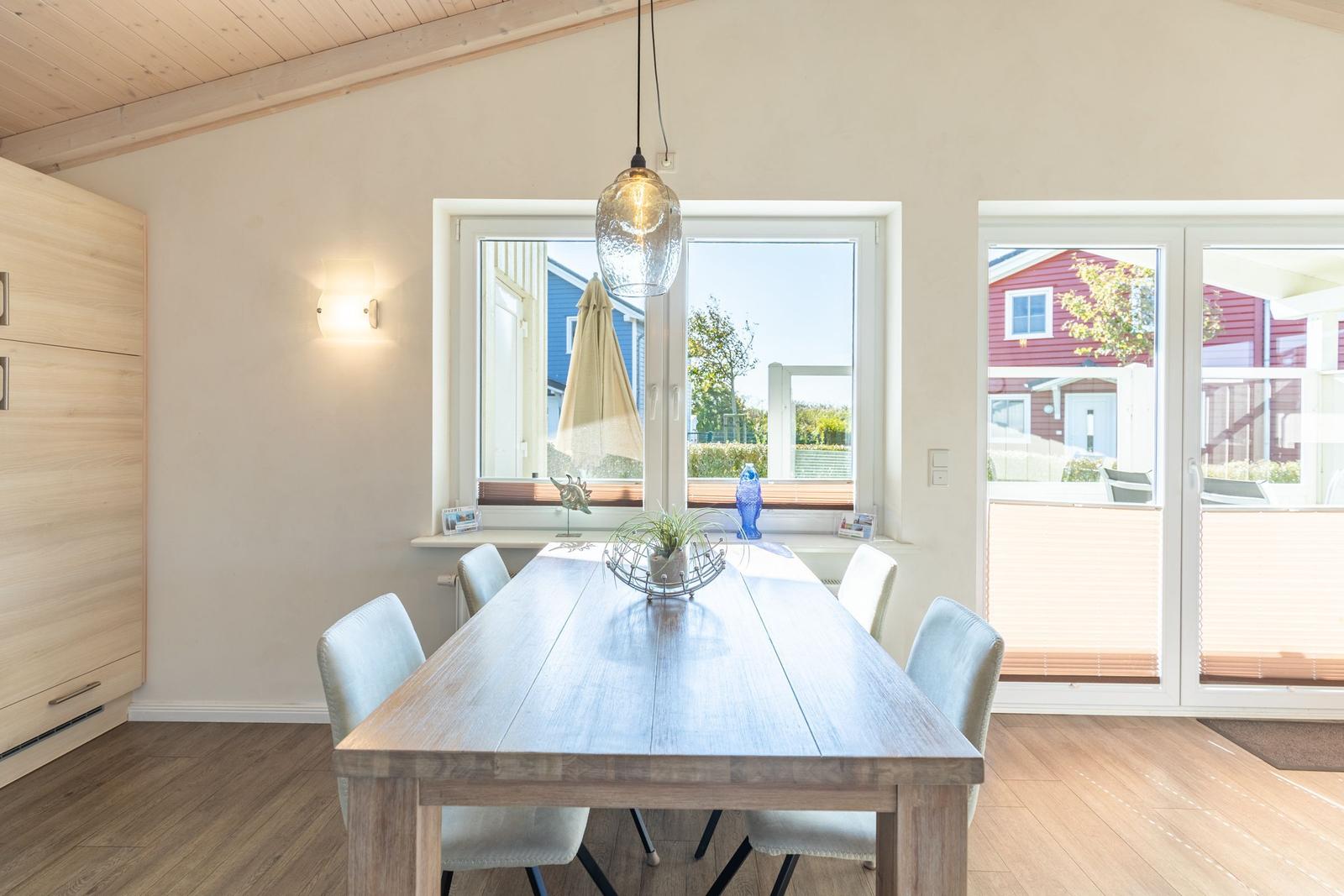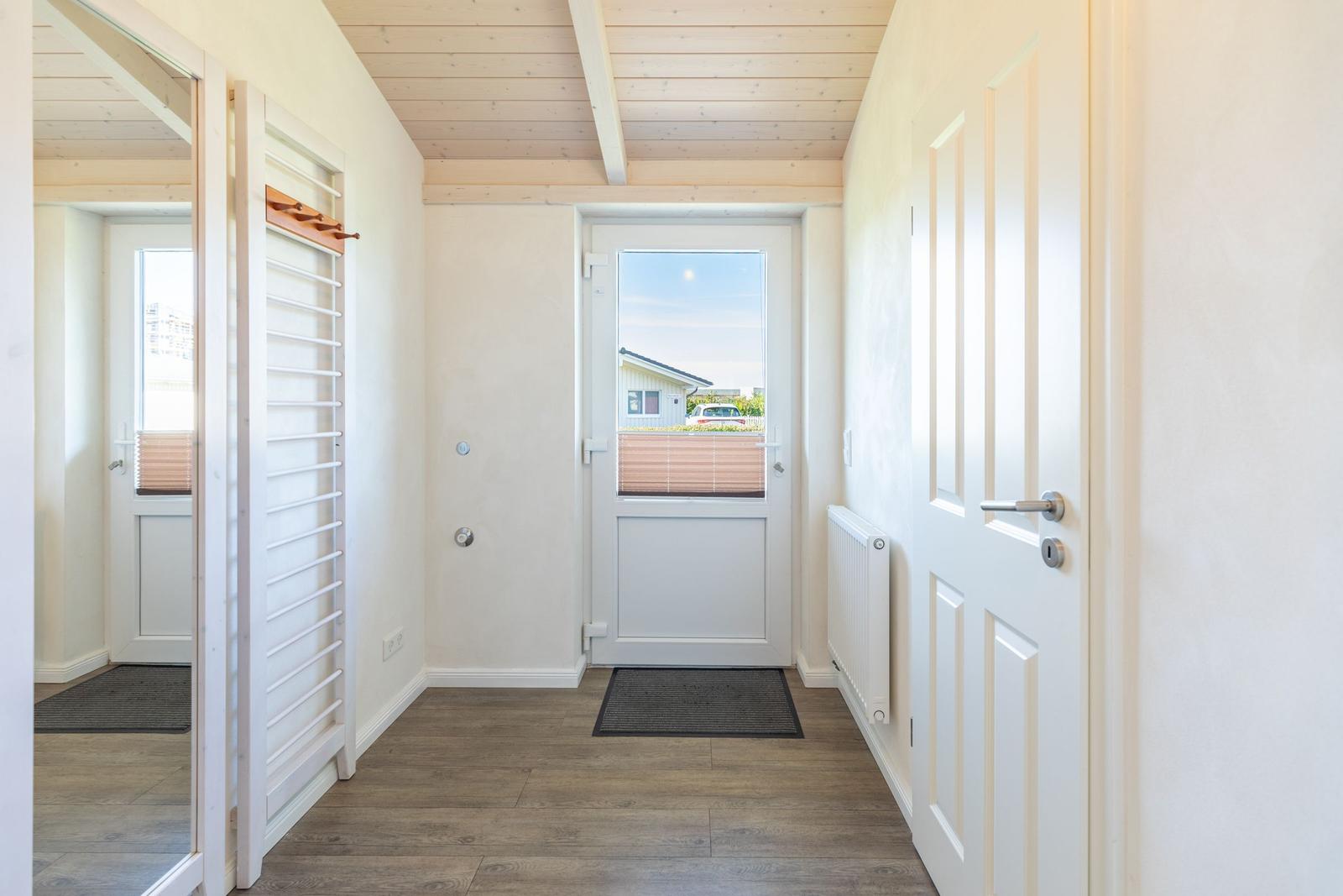 The "Oland" holiday home in Dagebüll offers a luxurious, ground-level accommodation for up to four guests. Comprising two beautifully appointed bedrooms, each with a comfort double bed (180 x 200 cm), this 85 sqm house is designed with modern Scandinavian charm. The cozy living room features a Smart TV and a fireplace, ensuring warmth and comfort during cooler seasons.