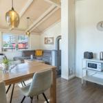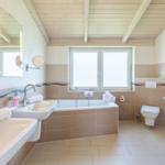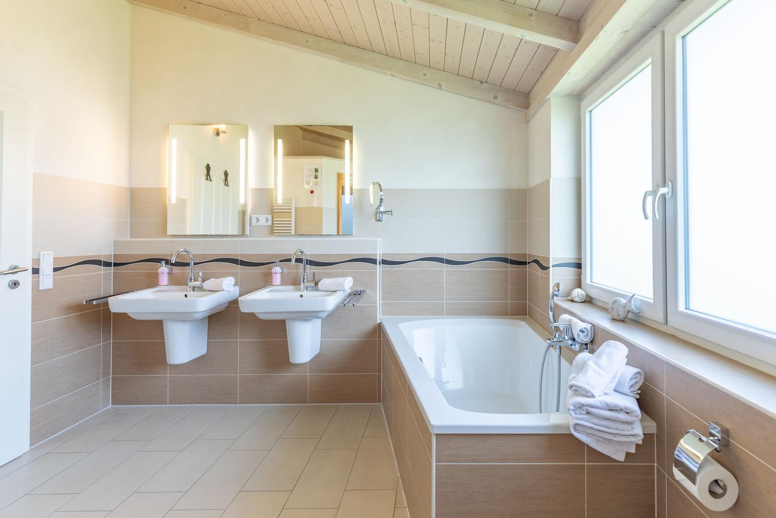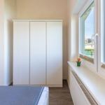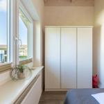 The open kitchen is fully equipped with amenities including a ceramic cooktop, oven, refrigerator with freezer compartment, microwave, dishwasher, and a coffee maker, catering to every culinary need. The spacious bathroom includes two sinks, a large bathtub, a walk-in shower, and a sauna for ultimate relaxation. An additional WC is also available. Shared facilities, including washing machines and dryers, are accessible for guests. Free Wi-Fi is provided, and the property is happily pet-friendly. An initial supply of bed linen and towels is included for added convenience.
