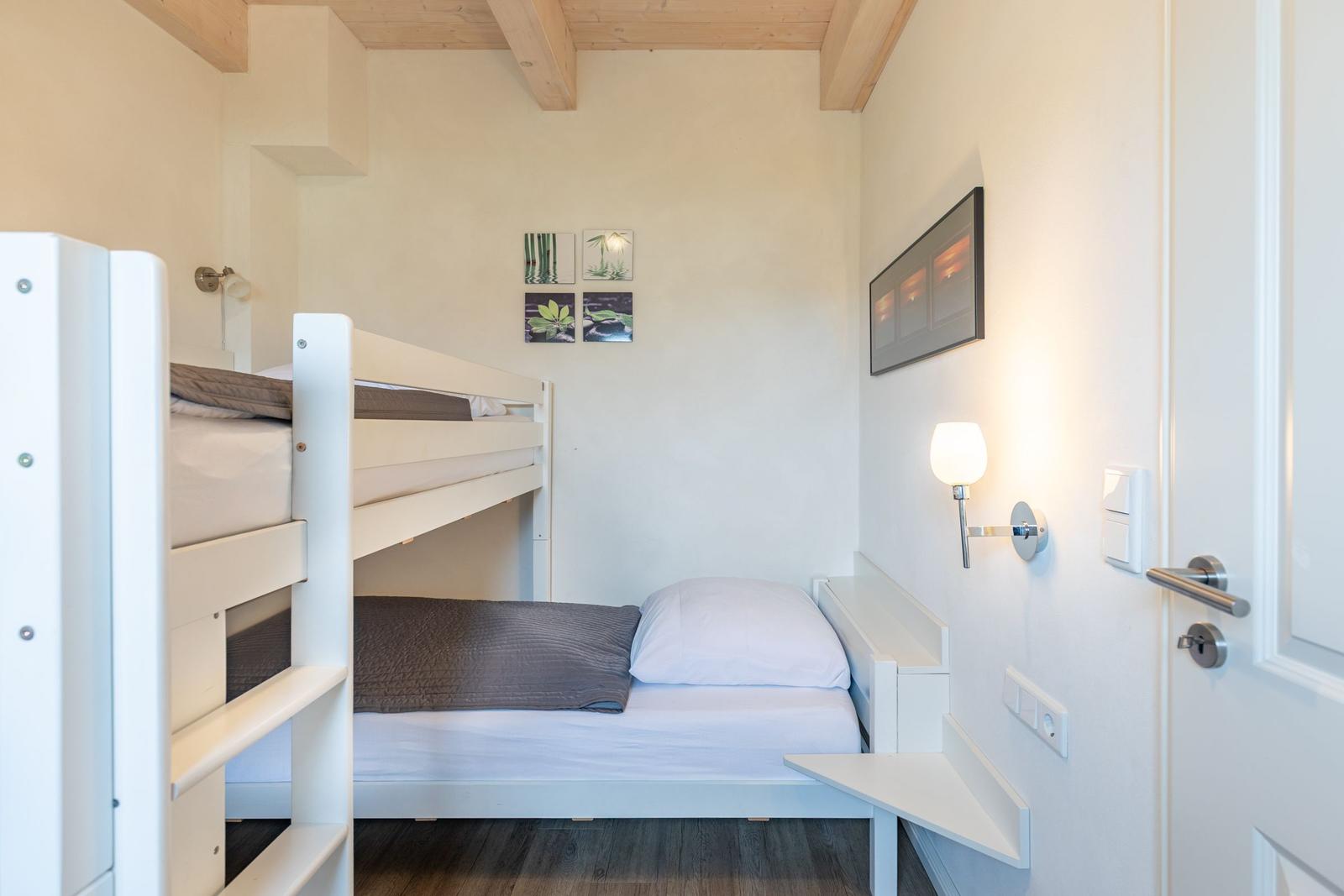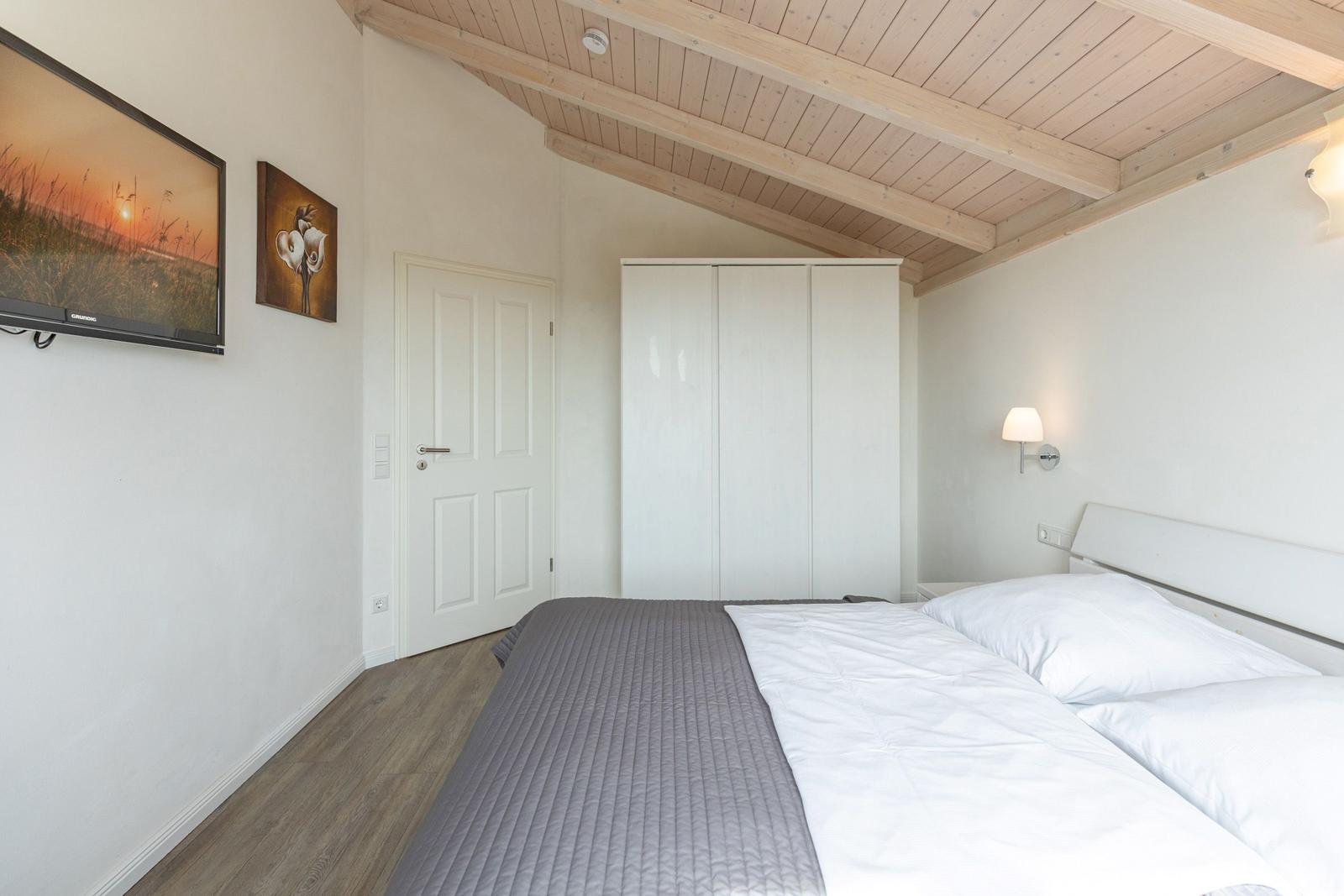 The "Silbermöwe" holiday home in Dagebüll offers a luxurious retreat for up to six guests across two levels. With three bedrooms—two featuring comfortable double beds (180 x 200 cm) and one with a corner bunk bed—the accommodations ensure a restful stay. The spacious living room is equipped with SAT-TV, a Blu-ray player, and a cozy fireplace for chilly evenings. The open kitchen delights culinary enthusiasts with its comprehensive amenities, including a ceramic stove, oven, fridge with freezer, microwave, dishwasher, and coffee machine. The impressive bathroom upstairs boasts dual sinks, a large bathtub, walk-in shower, and a sauna, while an additional shower room is conveniently located on the ground floor. Guests can utilize laundry facilities located in a communal area for a fee. Free Wi-Fi is provided, and the property welcomes pets, surrounded by an 80 cm high fence for safety. An initial supply of bed linen and towels is included, with options for additional packages.