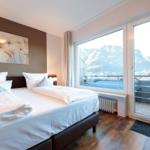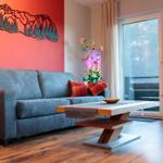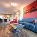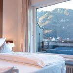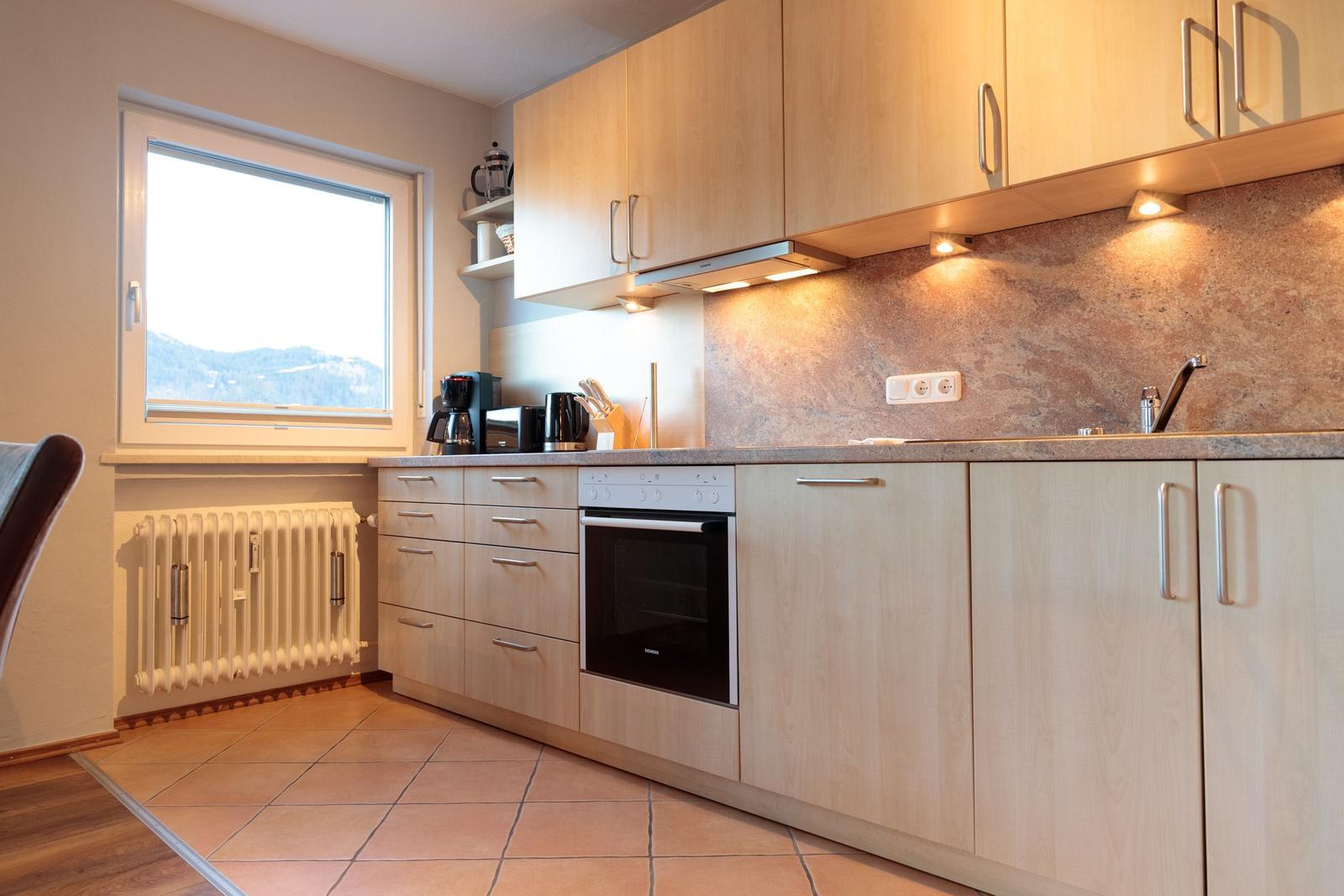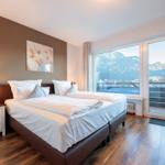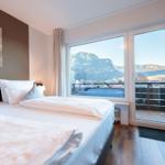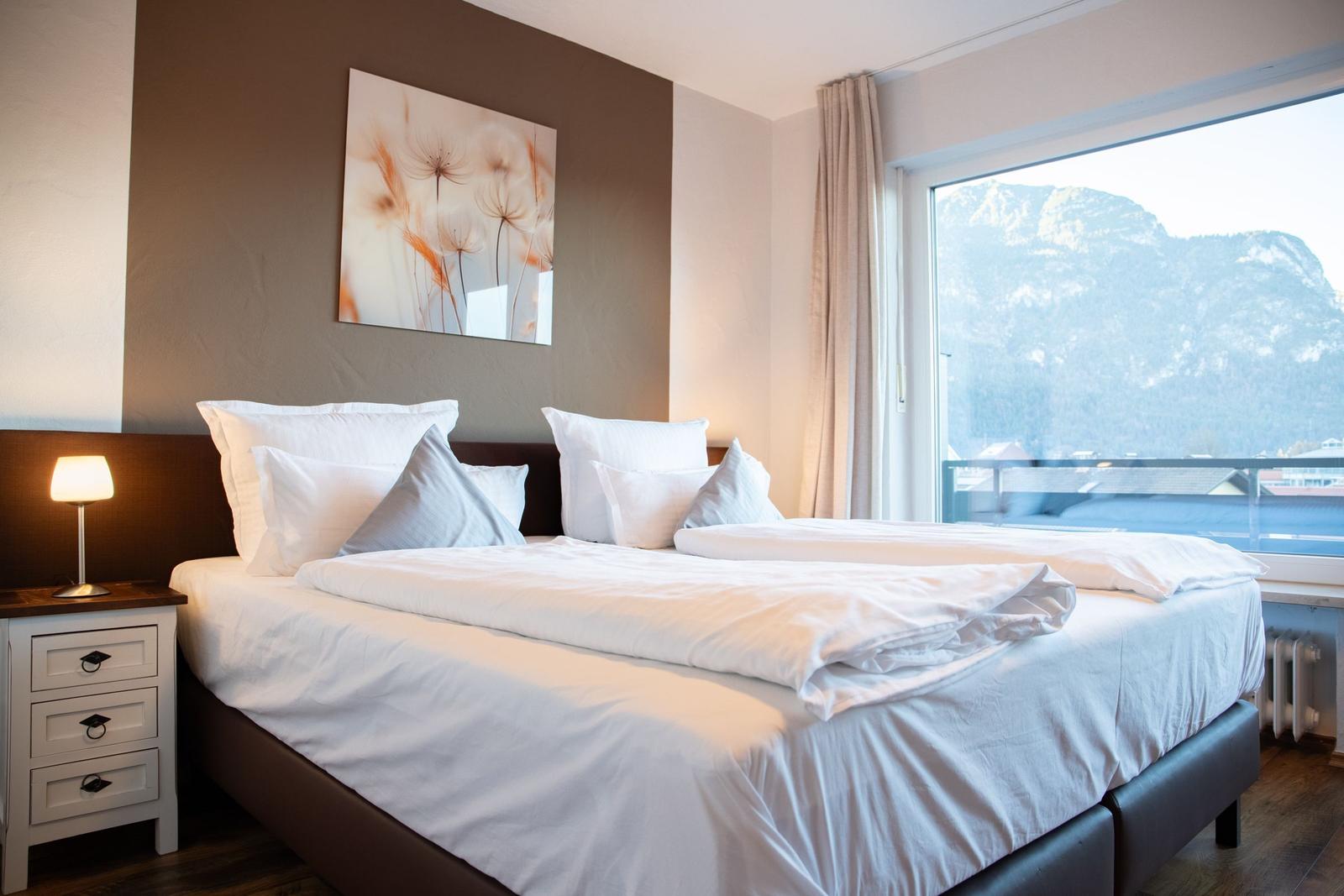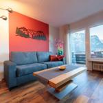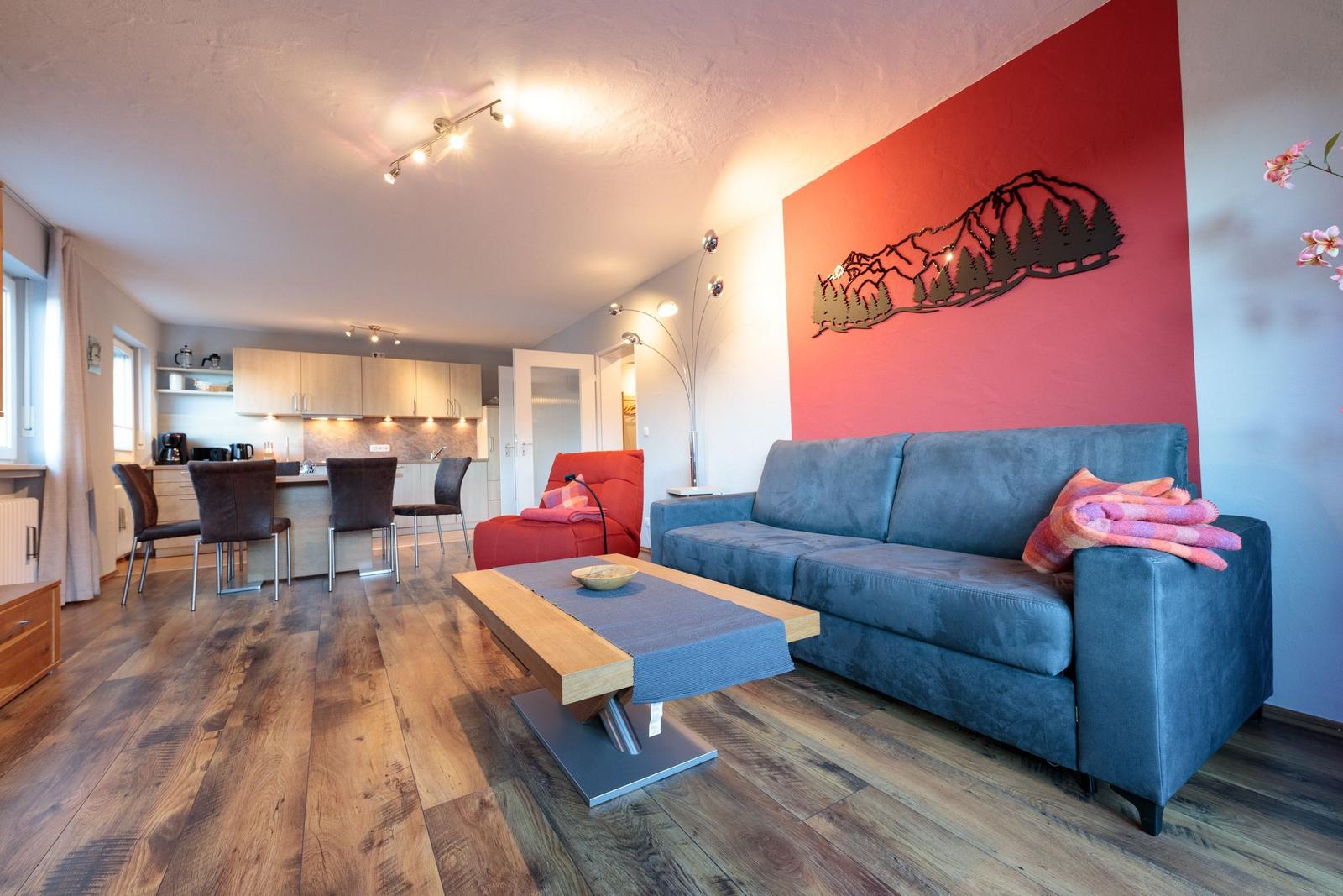The generously open kitchen and living area is not only well equipped, but also opens up a breathtaking mountain panorama for you. Relax on high-quality leather furniture and enjoy the spacious balcony with outdoor furniture and views of the surrounding mountain range.