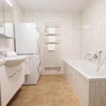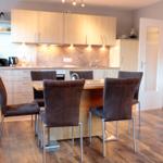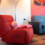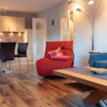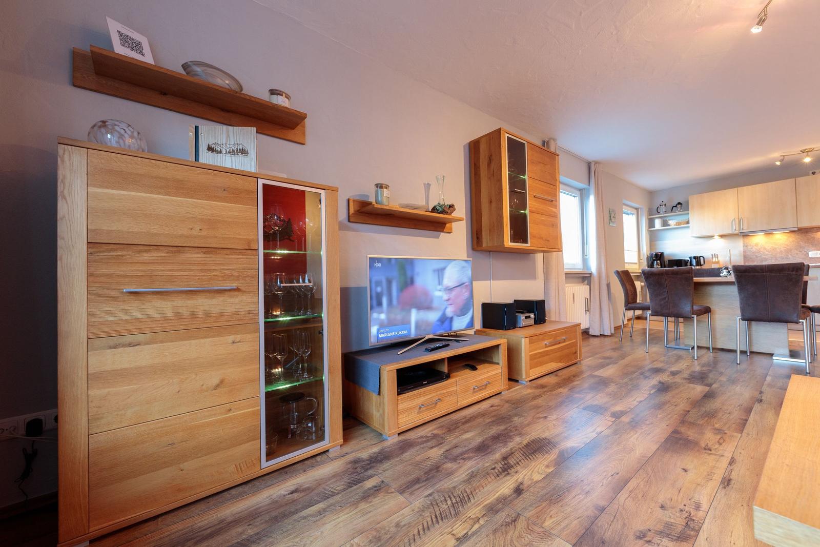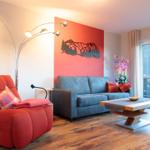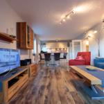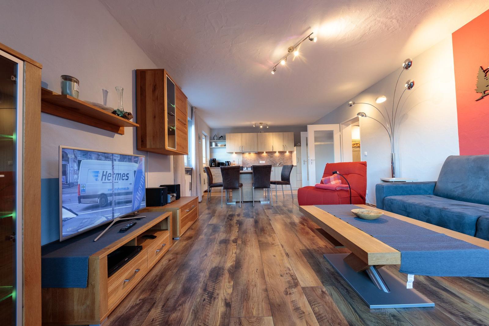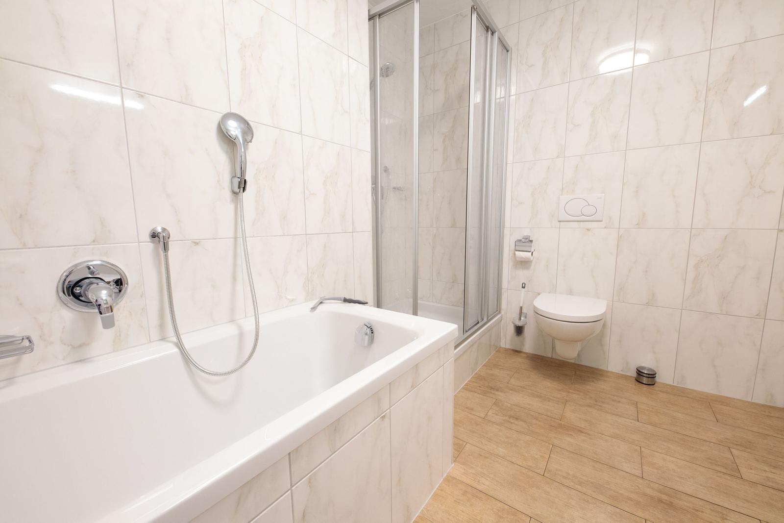 The bright and modern furnished 2-room holiday apartment has a spacious living room with a cozy leather sofa bed and leather comfort chair, as well as an open kitchen and a beautiful dining table. The kitchen is fully equipped with a stove with ceramic hob, oven, dishwasher and all the important utensils you will like to find. Bedroom with box spring bed, also individually adjustable as DBL or TWIN. High-quality blankets provide for dreamlike sleeping comfort. Bathroom with shower, bathtub and toilet, as well as underfloor heating. Washing machine and dryer are also available.