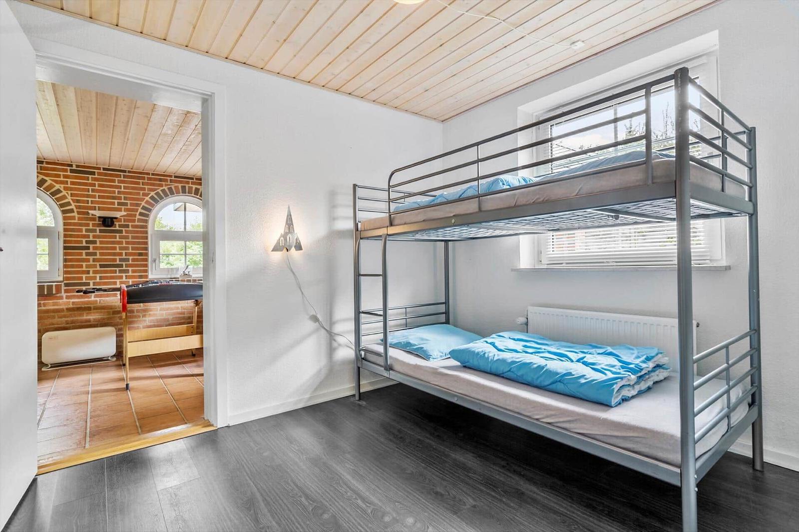 This holiday apartment in Fjellerup Strand og By, East Jutland, offers spacious accommodation for 10 adults and up to 2 pets. Covering an area of 198 m² on a 1,211 m² plot, it features a cozy interior with a fireplace that creates a warm atmosphere. The property includes modern conveniences such as a washing machine, dishwasher, and tumble dryer. Guests can enjoy the relaxation of a sauna and stay connected with internet access. Sleeping arrangements consist of 4 double beds, 2 single beds, and 2 children's beds across 5 bedrooms, complemented by 2 bathrooms for added convenience. Just 150 meters from the nearest beach and 1,100 meters from shopping, this apartment is perfectly located for both relaxation and exploration. On-site amenities include a swing, sandbox, and trampoline, making it an ideal choice for families.