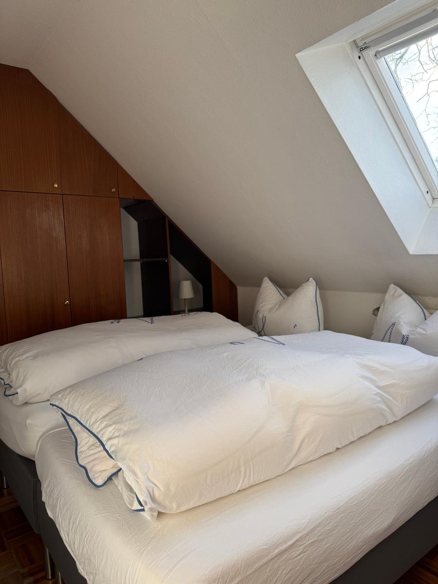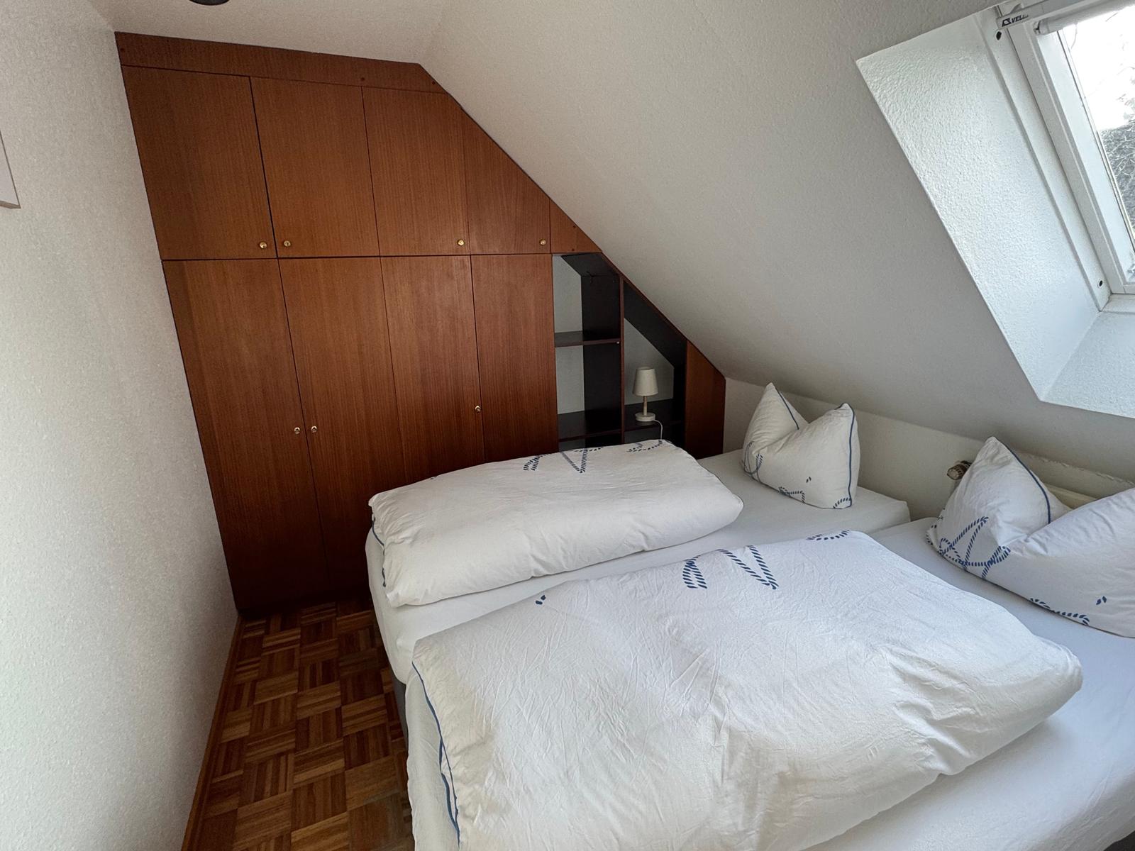 2 single beds (0,90 x2, 00 m) with bedding, wardrobe, small. Table with lamp