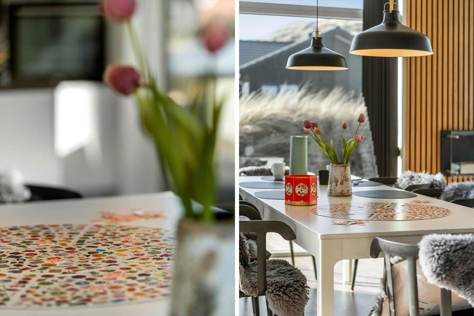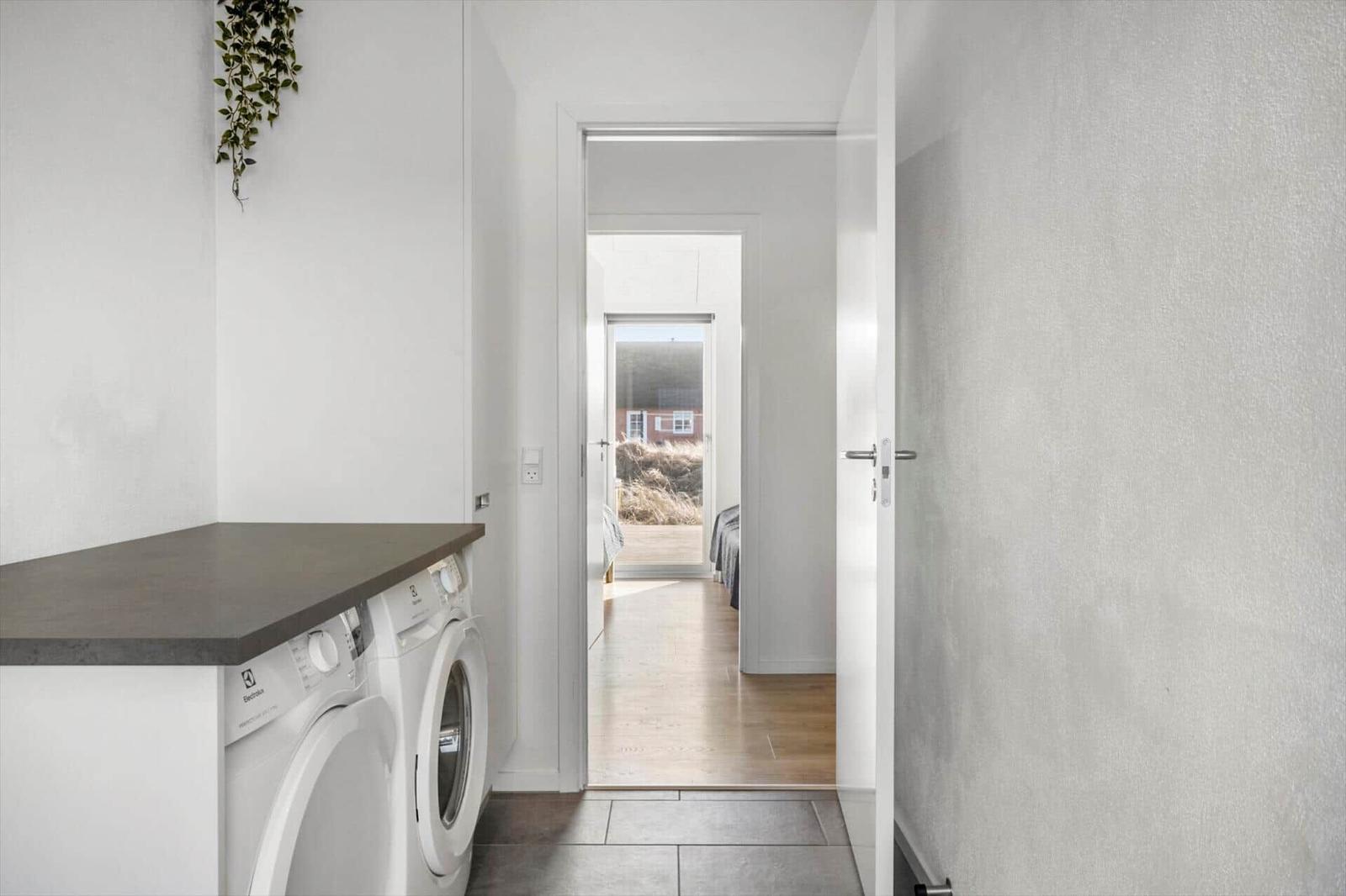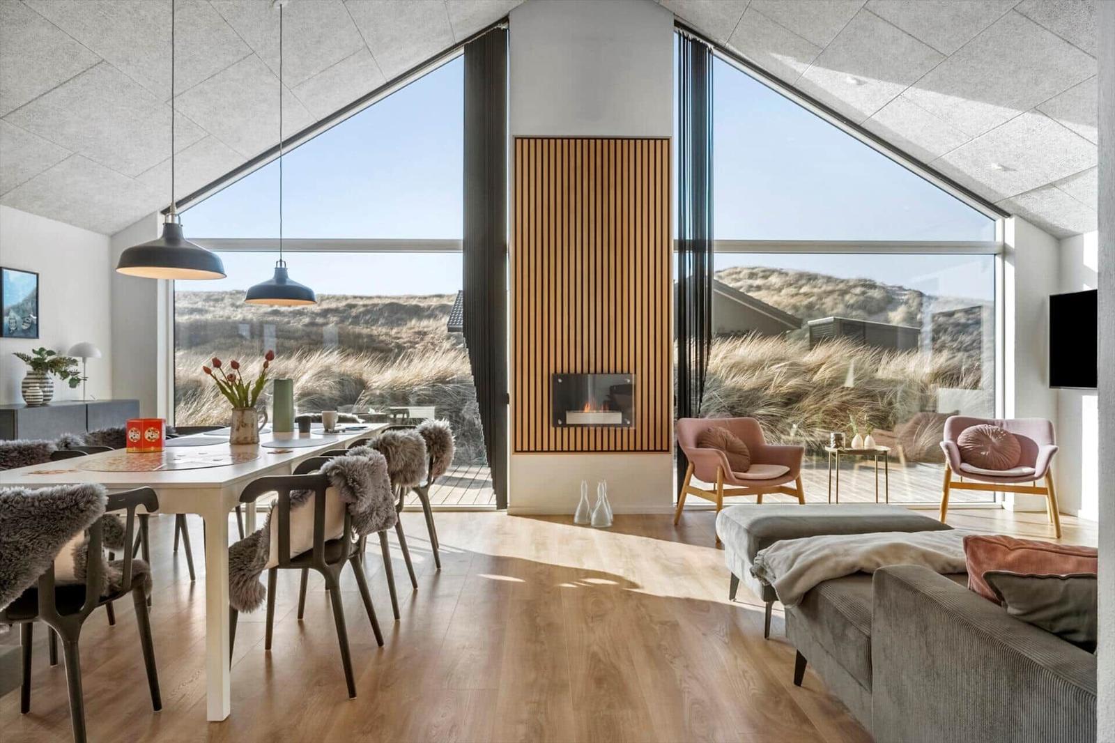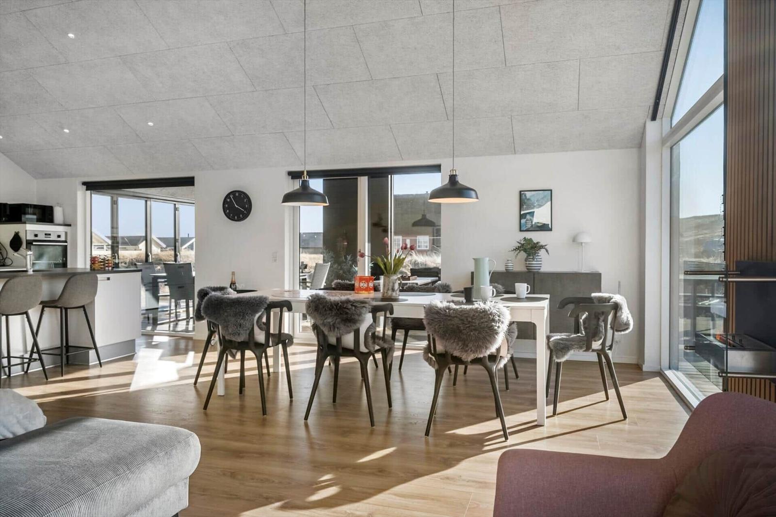 This holiday apartment in Vrist, West Jutland, offers a spacious retreat for up to 8 adults and 2 pets, featuring a cozy layout across 150 m². Guests will enjoy a modern open kitchen, fully equipped with a dishwasher, electric/gas stove, oven, microwave, refrigerator, and coffee machine. The living area boasts a smart TV and a comforting fireplace (bio-pejs), perfect for relaxing evenings.