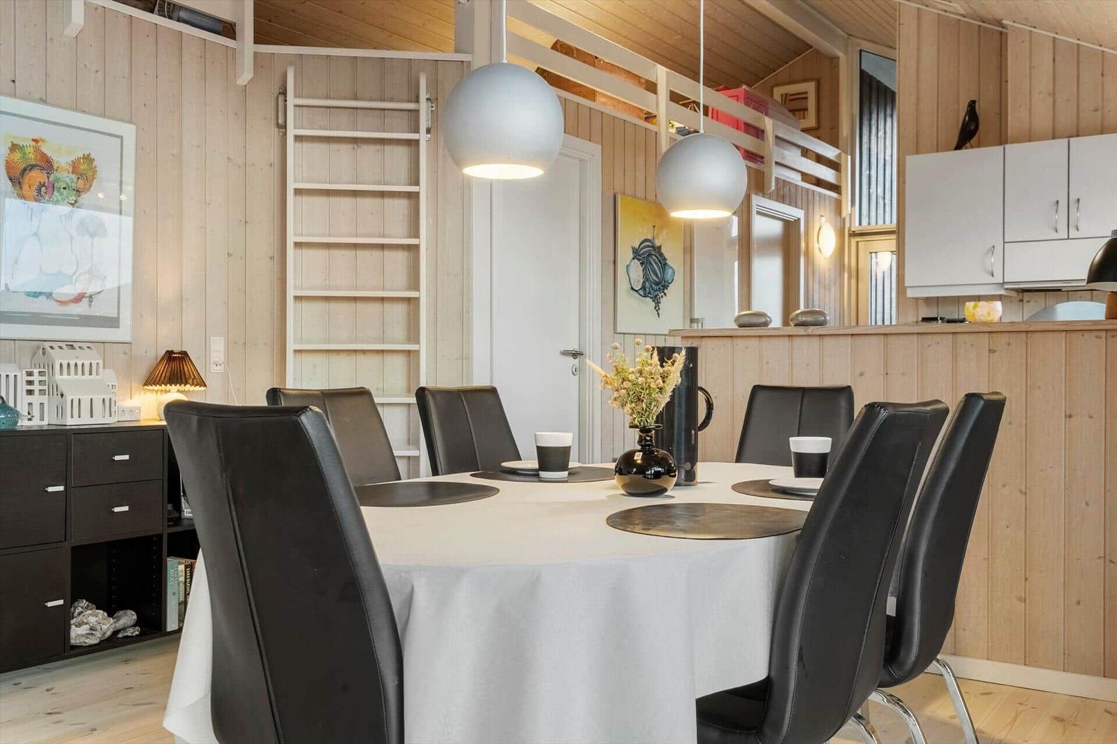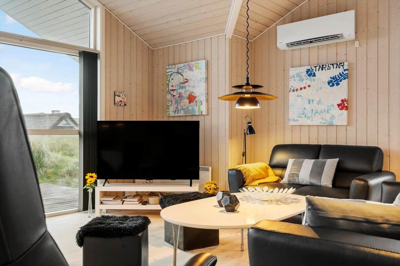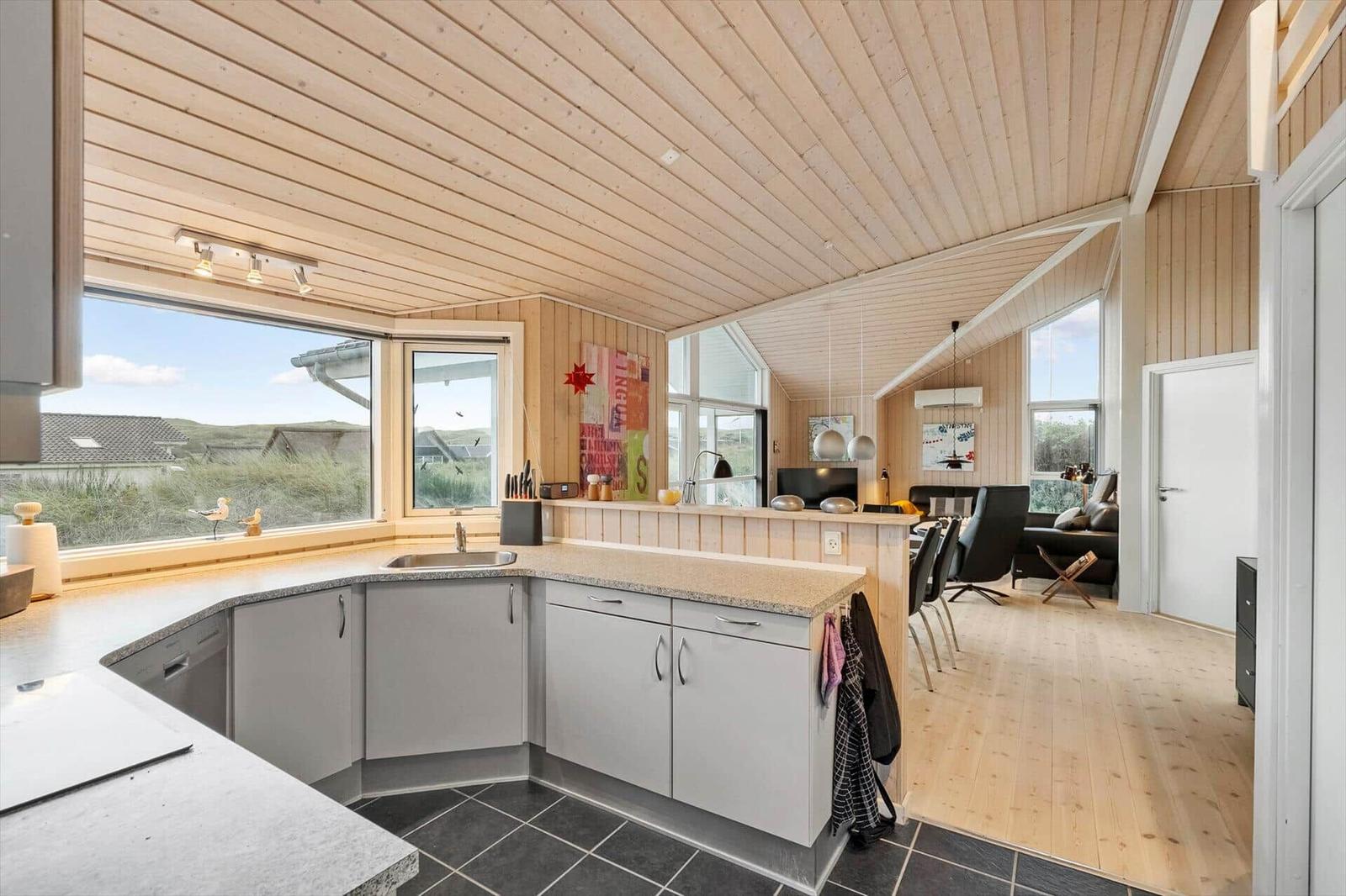 This well-maintained luxury wooden house accommodates up to 6 guests and features a loft perfect for children. The bright and spacious interior, enhanced by high ceilings and warm wooden floors, offers a cozy atmosphere. The open-plan kitchen is fully equipped with modern amenities, including a dishwasher, electric/gas stove, oven, microwave, refrigerator, coffee maker, and kettle, ensuring a comfortable cooking experience. The living area boasts a smart TV, DVD/Blu-ray player, and a wood stove, creating a perfect space for relaxation. The bathroom includes a shower and washing machine. The property features three bedrooms—two with double beds and one with two single beds. A large terrace wraps around the house, providing stunning views of the dunes and direct access to outdoor furniture and a grill. Complimentary high-speed Wi-Fi adds convenience for all guests, ensuring a wonderful vacation experience near the North Sea.