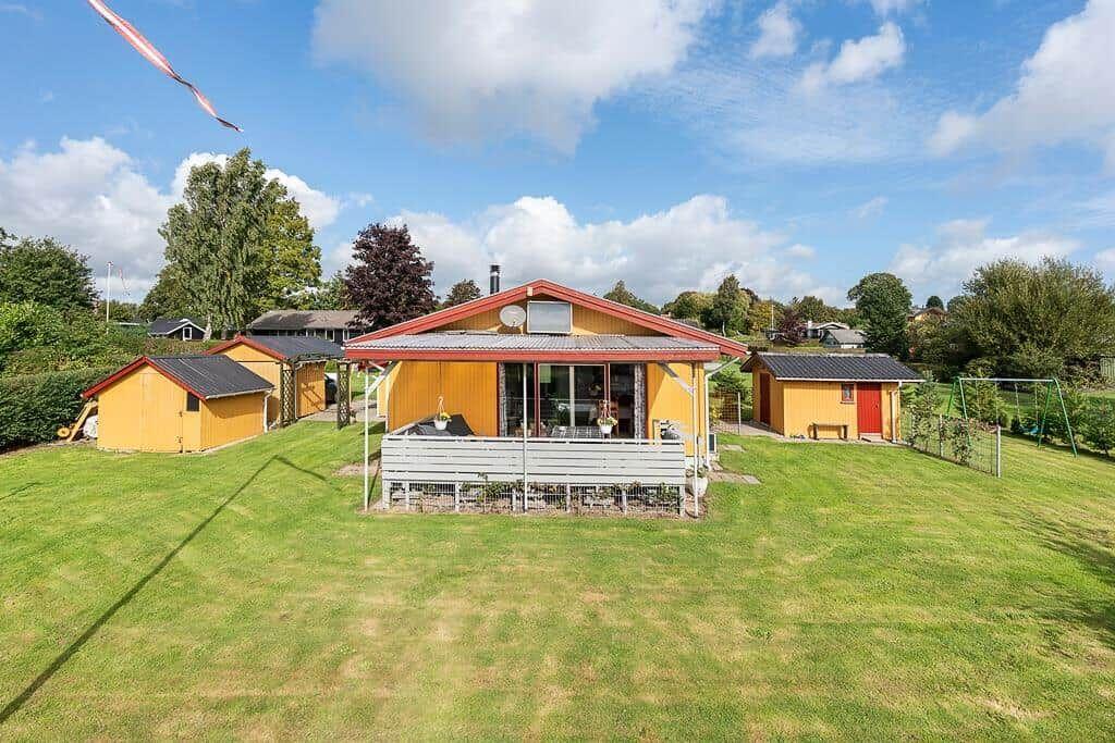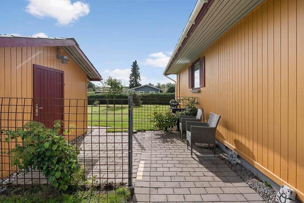 This charming vacation apartment in Hejlsminde, Southeast Jutland, offers a cozy retreat for up to 4 adults and 1 pet. Spanning 67 m² on an 868 m² plot, it features two comfortable bedrooms, including one with a double bed and another with two single beds. The separate kitchen is well-equipped with a gas/electric stove, microwave, refrigerator, and coffee maker, ensuring a delightful cooking experience. For families with young children, a high chair is provided, making it kid-friendly. The bathroom includes a shower, and amenities like a washing machine, internet with Wi-Fi, and energy-efficient heating cater to modern needs. Enjoy the convenience of a parking space, while outdoor activities are enhanced with a swing and sandbox just steps away. The sandy beach is only 900 meters away, and shopping is a mere 1,000 meters from the doorstep.