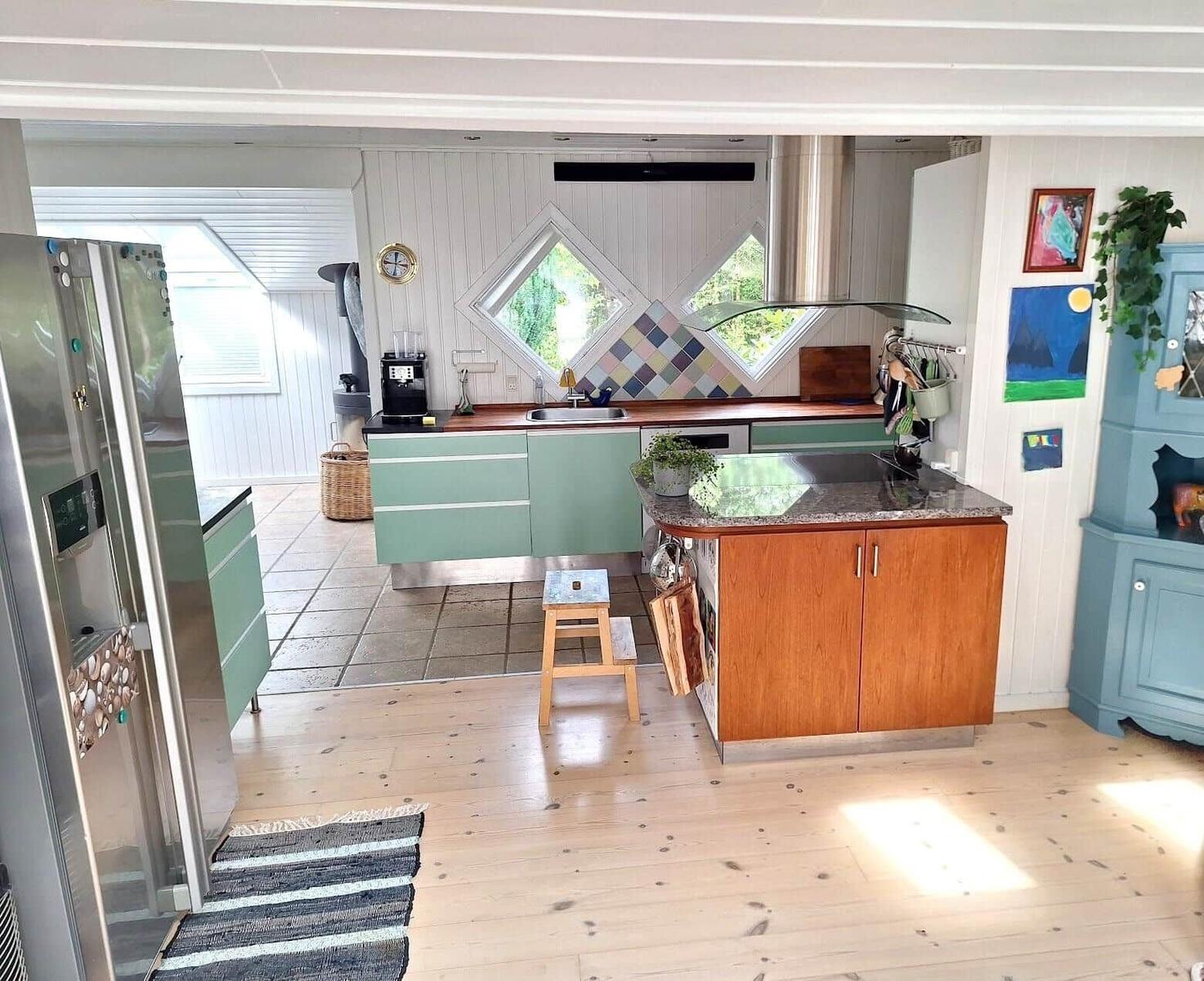 This vacation apartment in Sejerø Bugt - Lyngområderne, Odsherred, offers a comfortable retreat for 6 adults, 2 children, and 1 pet. Spanning 113 m², with a 20 m² annex on an 871 m² plot, it features a cozy interior complete with a fireplace. The open kitchen is equipped with modern appliances, including a dishwasher, electric/gas stove, oven, microwave, refrigerator, and coffee maker, ensuring convenient meal preparation. The living area includes a TV, and Wi-Fi allows for seamless connectivity. The bathroom features a refreshing shower, and practical amenities such as a washing machine, dryer, and kettle enhance the stay. With underfloor heating and energy-efficient heating, guests can enjoy comfort year-round. Just 200 meters from the beach and 5,000 meters from shopping, this well-appointed property offers a perfect getaway.