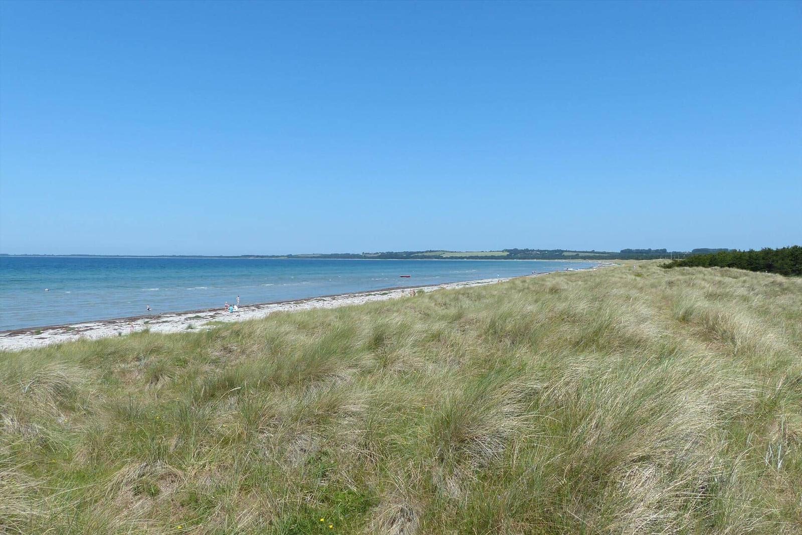 The holiday cottage is set in a beautiful natural area, surrounded by heath and just a short distance from Gudmindrup Beach, renowned as one of Denmark's best sandy bathing beaches. Guests can unwind on the terrace, which features both an open and a covered space, perfect for soaking up the sun throughout the day. The outdoor space allows families to enjoy the soothing sounds of the sea while children play by the shore, collecting shells and building sandcastles. In the evening, adults can relax under the starlit sky with a favorite drink. This inviting outdoor area, along with access to communal facilities, enhances the overall holiday experience, providing a serene environment for leisure and enjoyment in nature. Enjoy nearby attractions, including local eateries and scenic hiking and biking trails.