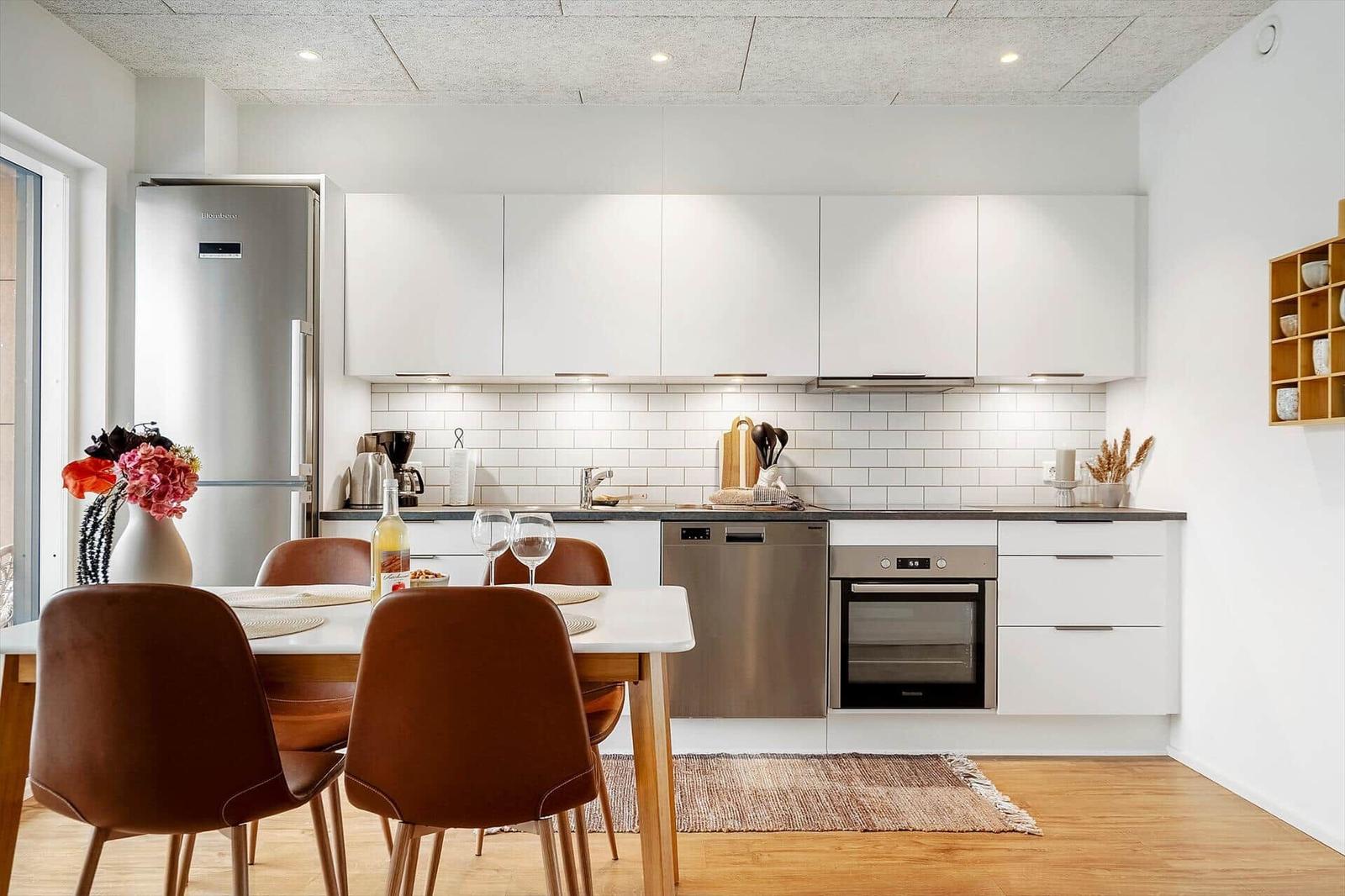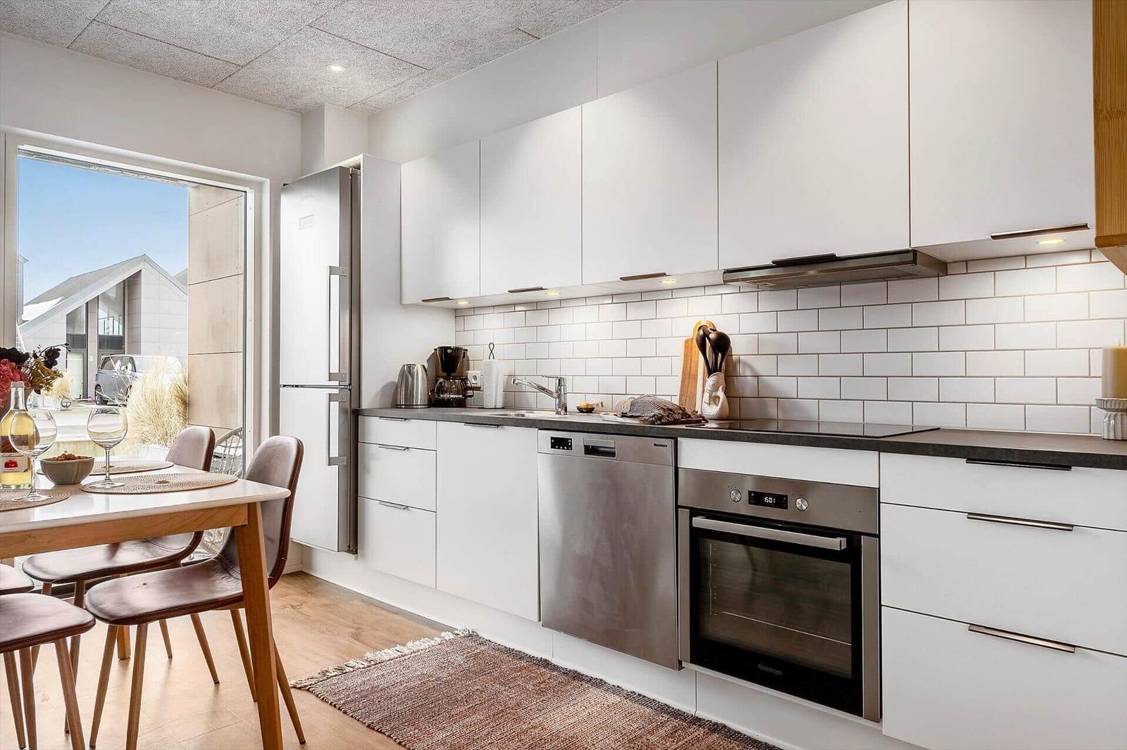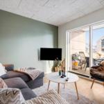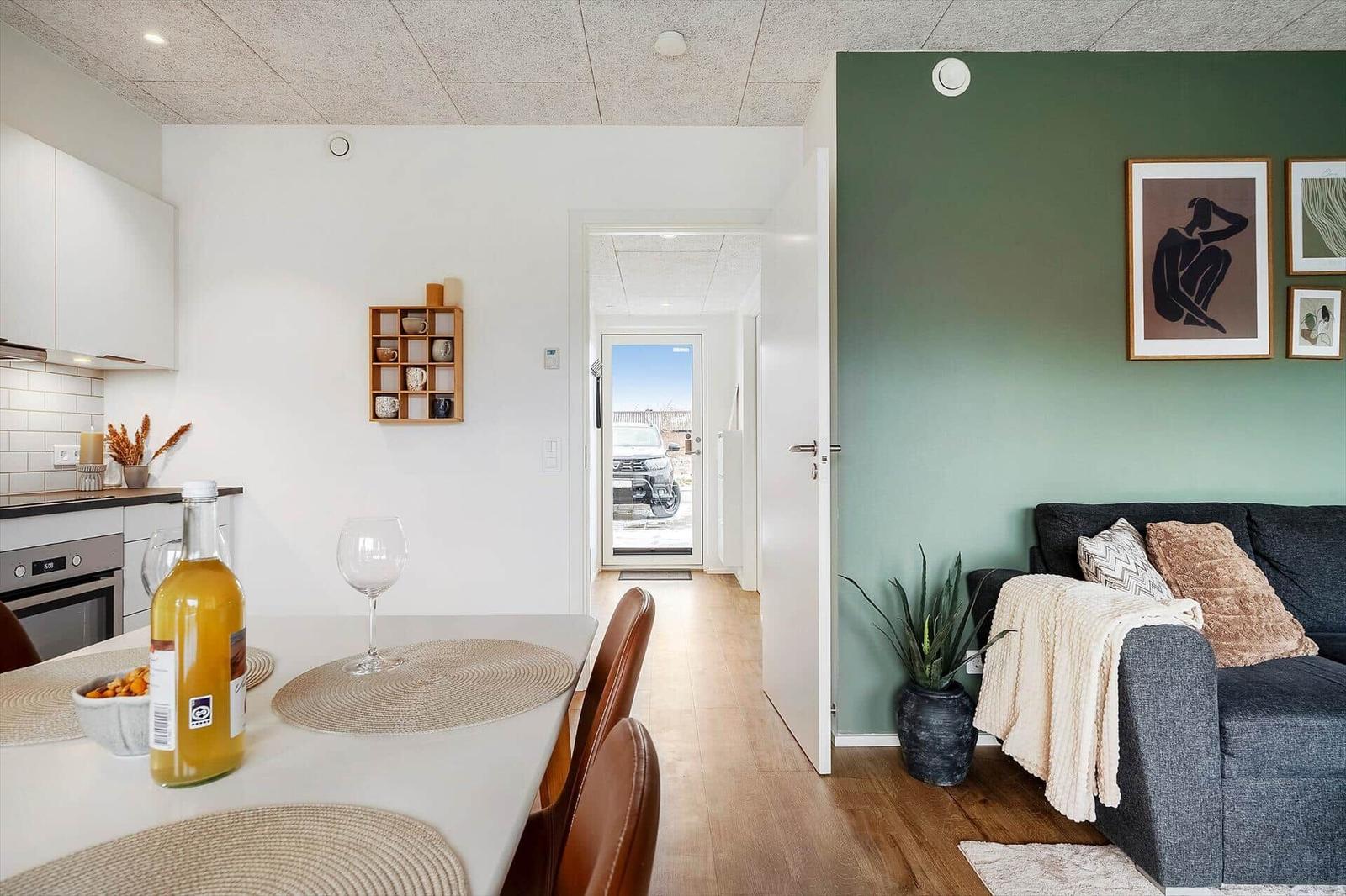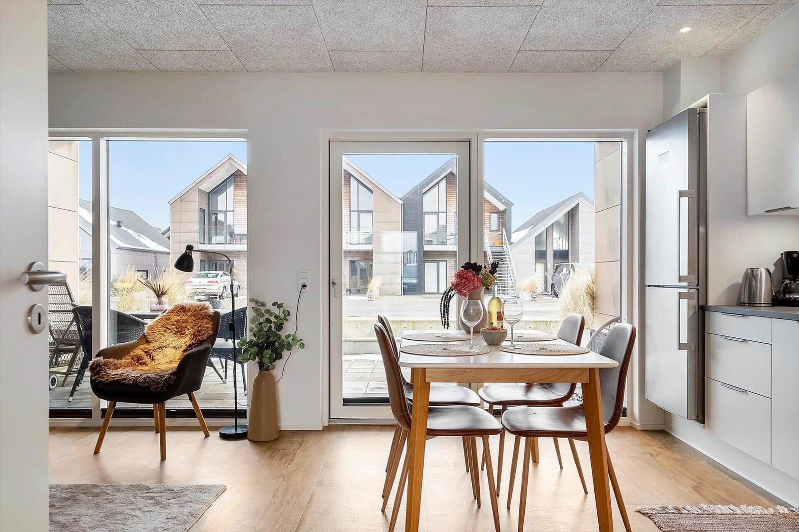 This charming holiday apartment, designed for two adults and two children, offers an ideal retreat for those seeking a vibrant atmosphere in Hvide Sande while enjoying a peaceful setting close to the water. Located in a modern, architect-designed complex built in 2021, the apartment spans 55 m² and features a bright, welcoming atmosphere. The open kitchen is equipped with modern appliances, including a dishwasher, oven, refrigerator, and coffee maker, promoting quality time together in the living area. Entertainment options include a Smart TV and high-speed WiFi. The stylish bathroom boasts a shower, underfloor heating, and a washer-dryer combo. A comfortable bedroom and a cozy sofa bed in the living room provide ample sleeping arrangements. Guests can unwind on the spacious partially covered south-facing terrace, relishing the soothing sounds of the nearby waves. Ideal for families, the apartment combines comfort with convenient access to local attractions and scenic views.