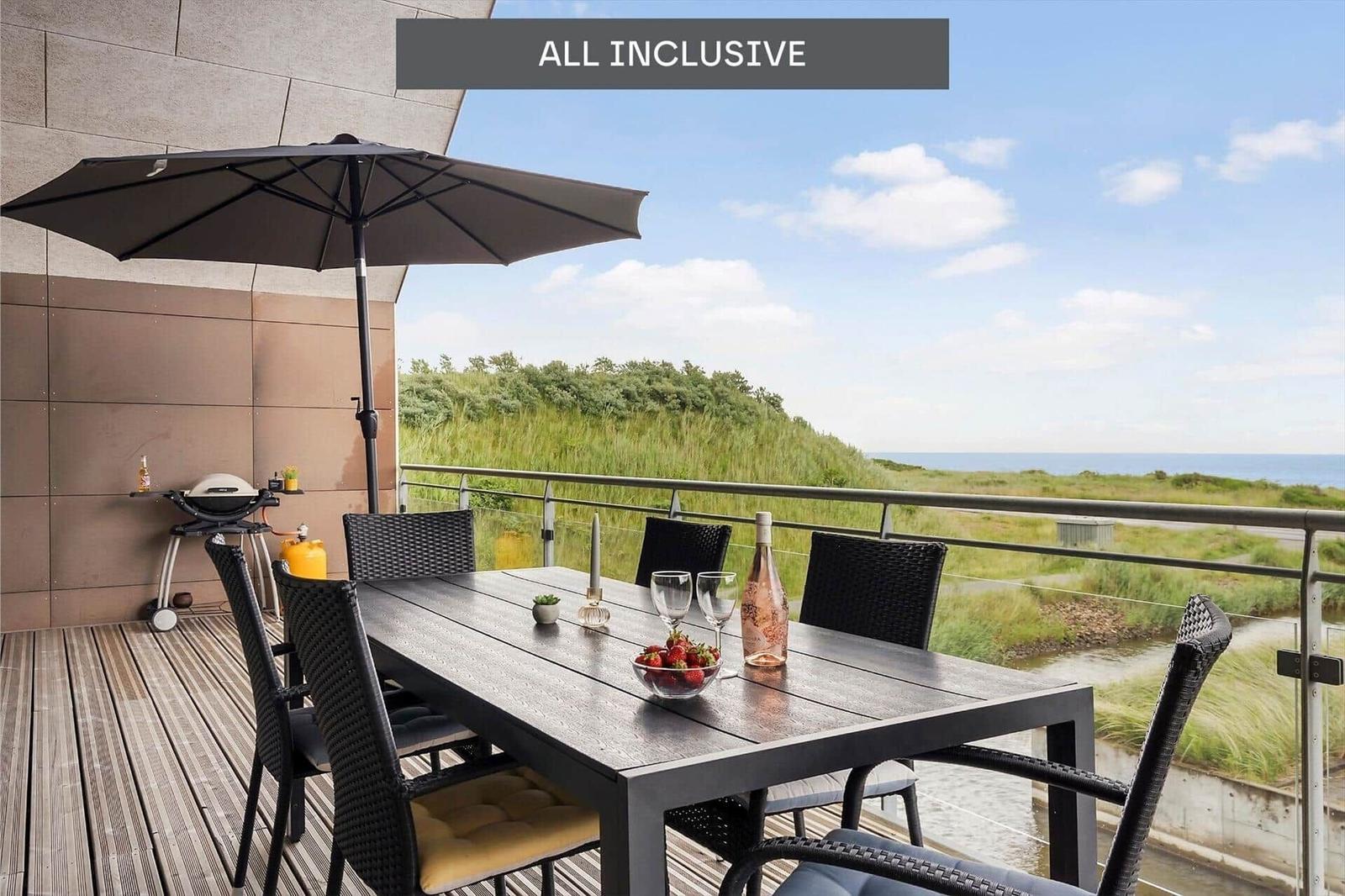 Discover a stunning 100 m² quality apartment, perfectly situated for relaxing vacation days in Hvide Sande. This first-floor residence, housed in an architect-designed building from 2020, offers a captivating view of the surrounding canals and the Ringkøbing Fjord.