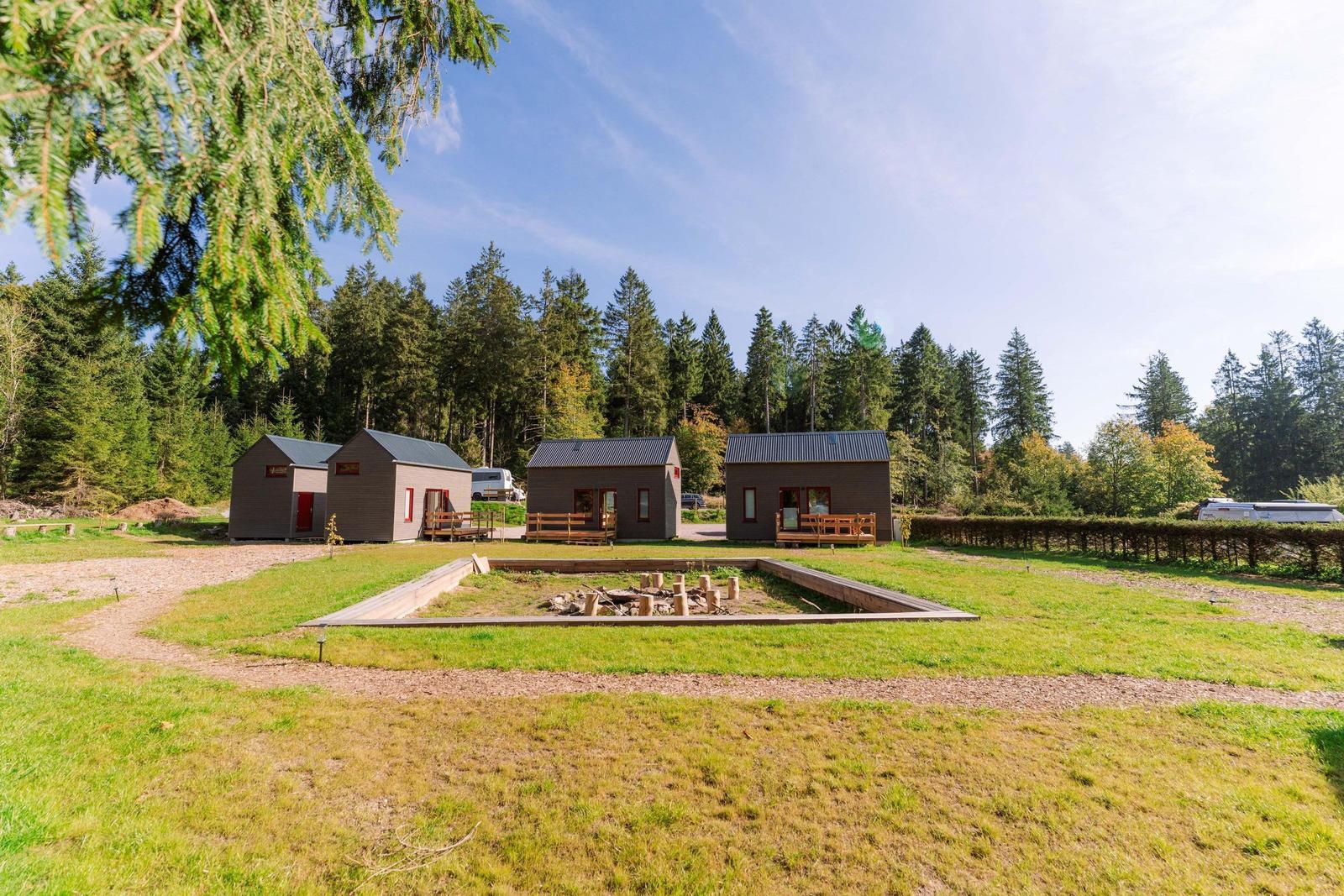 The Tinyhouse "Wald-Fritzl," located in the Naturcamp Lenkgrund in Frauenwald, offers a cozy and modern escape for up to six guests. Spanning 25 m², the open living area features a dining space and a fully equipped kitchen, including two mobile induction cooktops, a refrigerator, coffee maker, kettle, toaster, and essential kitchen utensils.