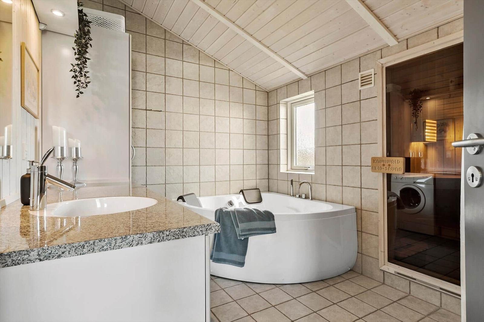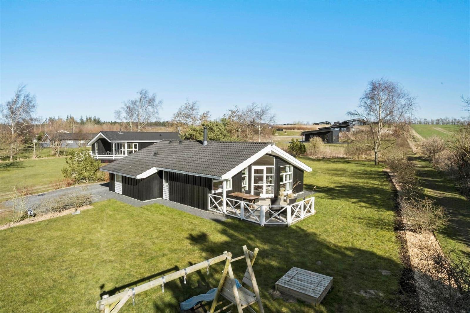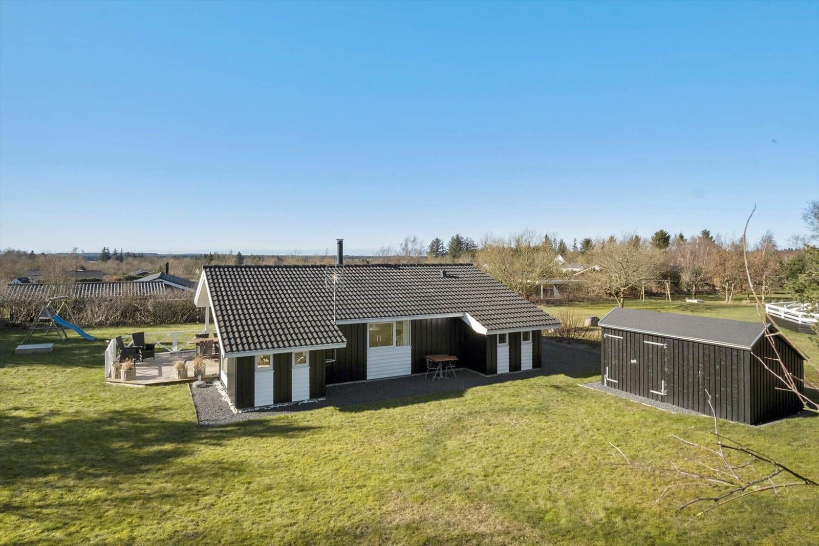 This holiday home in Kollerup Klit, Nordjütland, features an inviting outdoor area, perfect for relaxing and enjoying the surroundings. Situated on a 924 m² plot, the property offers communal outdoor amenities, including a swing and a sandbox, catering to families with children. Guests can unwind in the fresh air or engage in playful activities. The proximity to the beach, just 4,900 meters away, provides easy access to coastal enjoyment, while shopping is conveniently located only 1,300 meters from the accommodation. With a charming 88 m² interior that includes a fireplace, washing machine, and dishwasher, this holiday rental promises comfort and convenience both indoors and outdoors. For those seeking a rejuvenating experience, a sauna is also available.