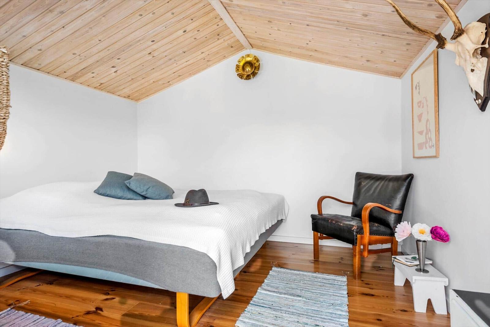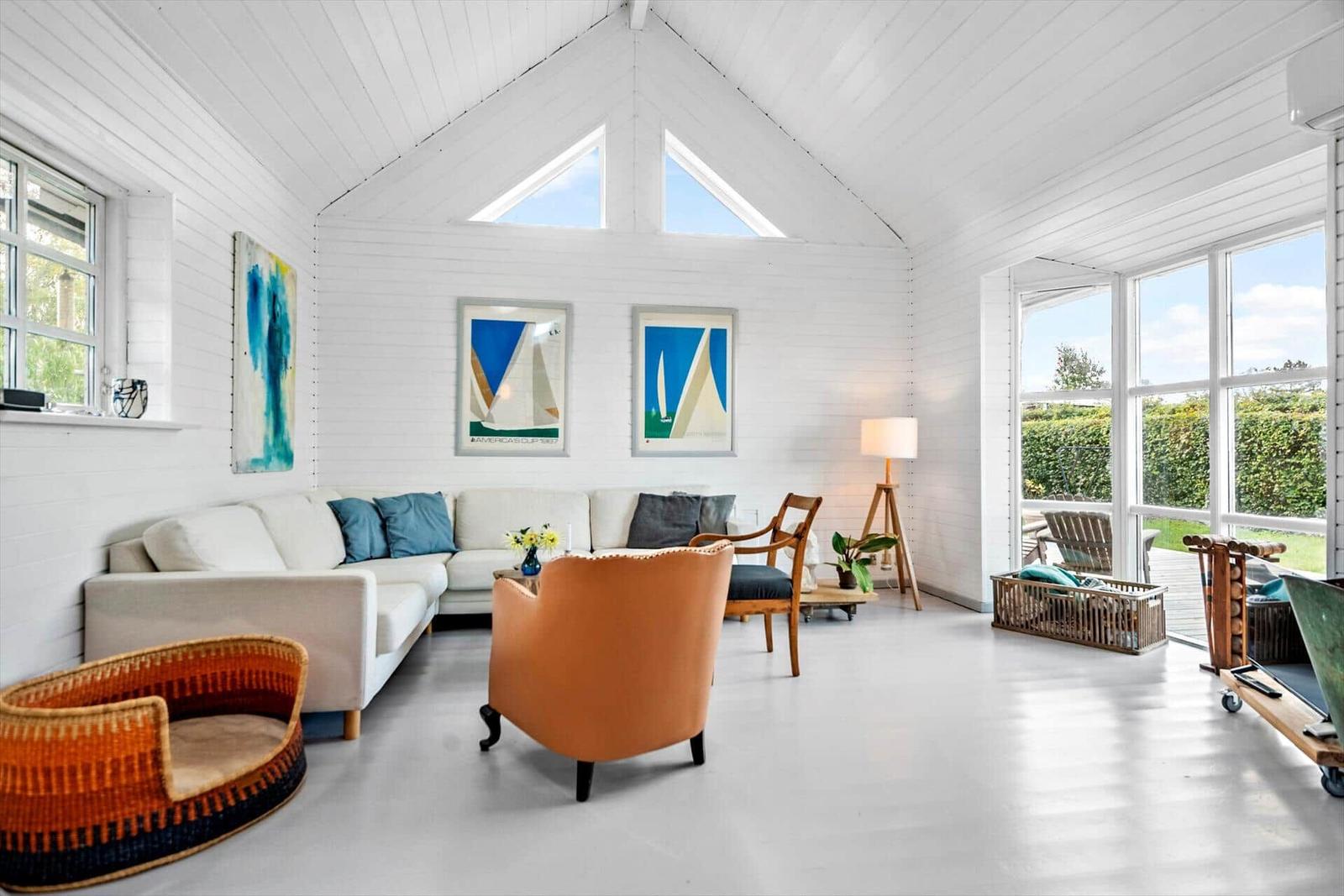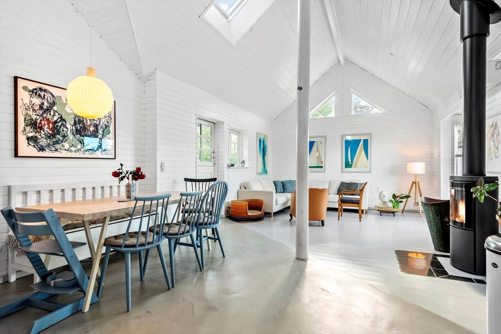 This charming holiday apartment in Norsminde, East Jutland, offers a spacious layout of 111 m², accommodating up to six adults and one pet. It features four bedrooms, including three double beds and one single bed, along with a children's bed for the little ones. The open kitchen is fully equipped with a dishwasher, gas cooker, microwave, refrigerator, coffee maker, and kettle, making meal preparation a delight. The living area boasts a cozy fireplace and a smart TV, where guests can enjoy their own streaming services via Chromecast. The bathroom includes both a shower and a bathtub, and the apartment benefits from underfloor heating for added comfort. Essentials like a washing machine and dryer are also provided. Situated on a 725 m² plot, it is just 100 meters from the beach and 3,000 meters from shopping facilities, ensuring convenience and relaxation. Free Wi-Fi and parking complete this delightful offer.