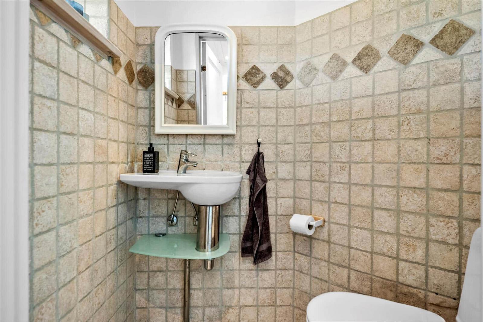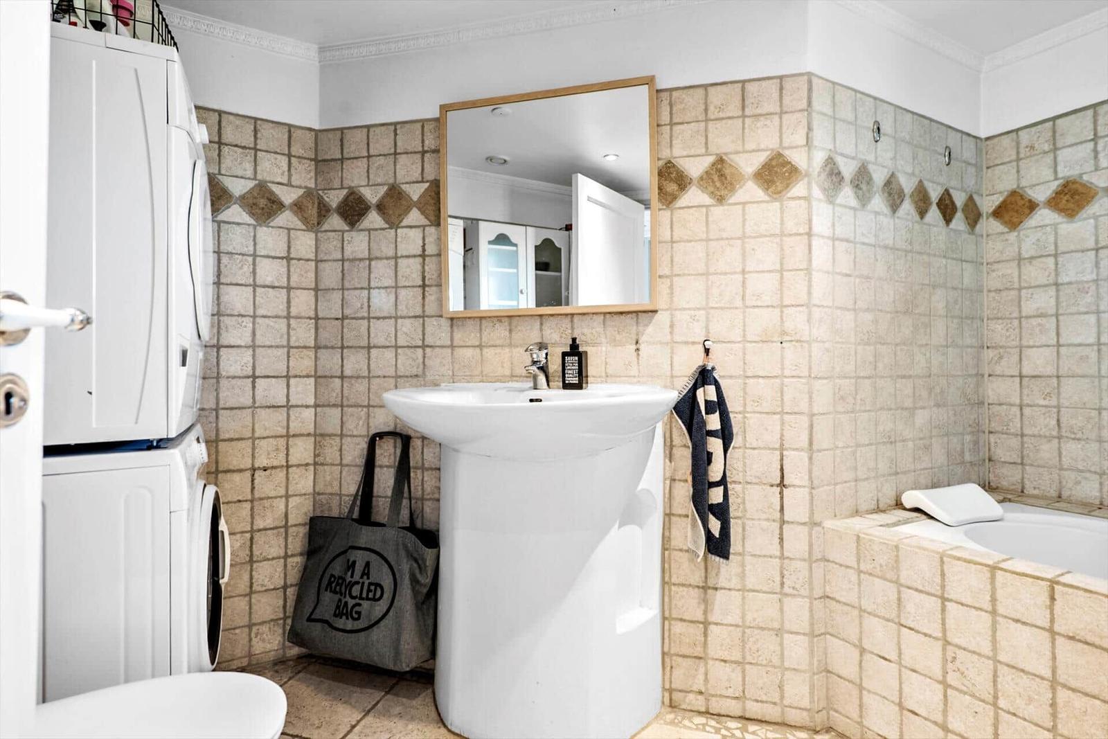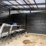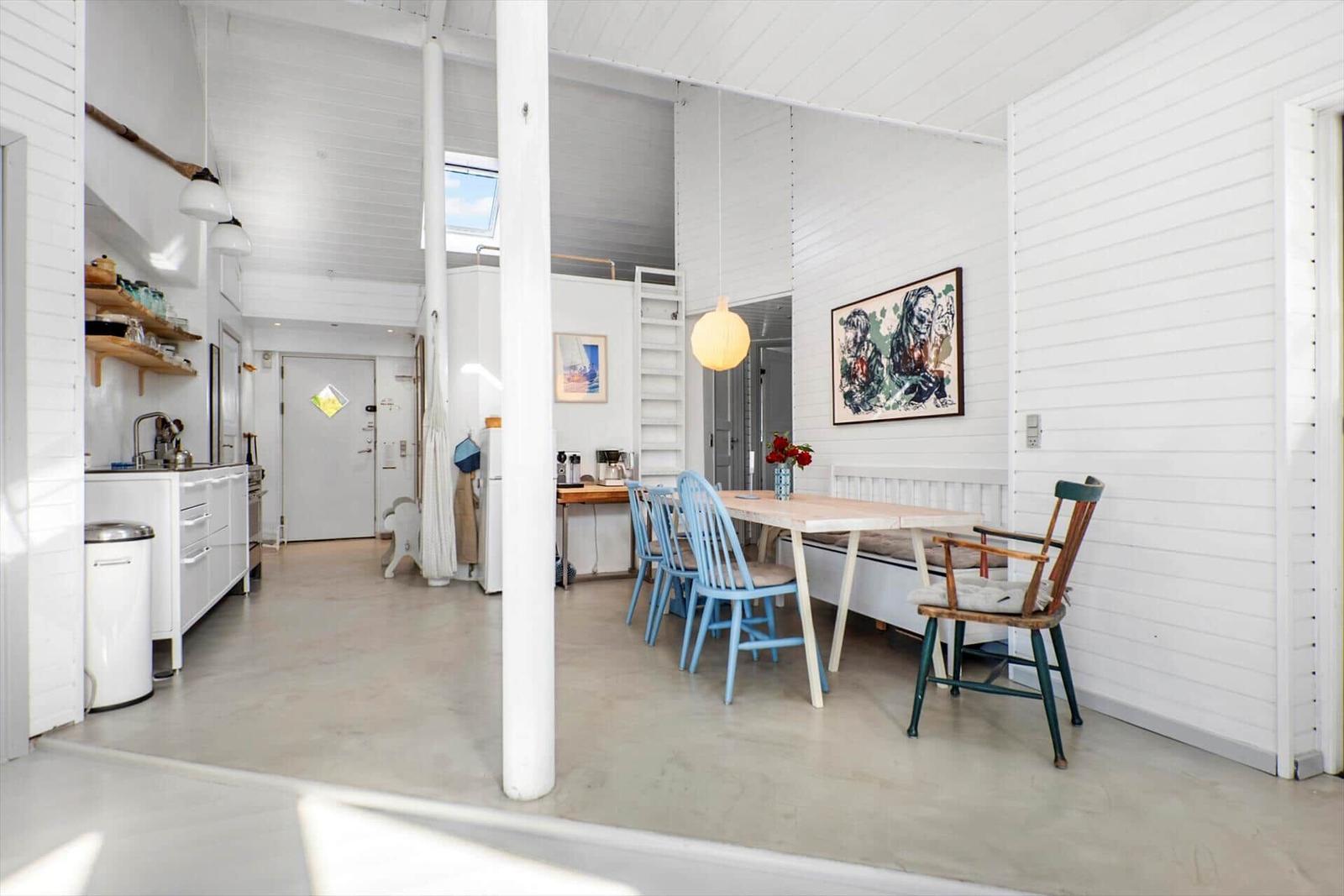 This charming holiday apartment in Norsminde, East Jutland, offers a spacious layout of 111 m², accommodating up to six adults and one pet. It features four bedrooms, including three double beds and one single bed, along with a children's bed for the little ones. The open kitchen is fully equipped with a dishwasher, gas cooker, microwave, refrigerator, coffee maker, and kettle, making meal preparation a delight. The living area boasts a cozy fireplace and a smart TV, where guests can enjoy their own streaming services via Chromecast. The bathroom includes both a shower and a bathtub, and the apartment benefits from underfloor heating for added comfort. Essentials like a washing machine and dryer are also provided. Situated on a 725 m² plot, it is just 100 meters from the beach and 3,000 meters from shopping facilities, ensuring convenience and relaxation. Free Wi-Fi and parking complete this delightful offer.