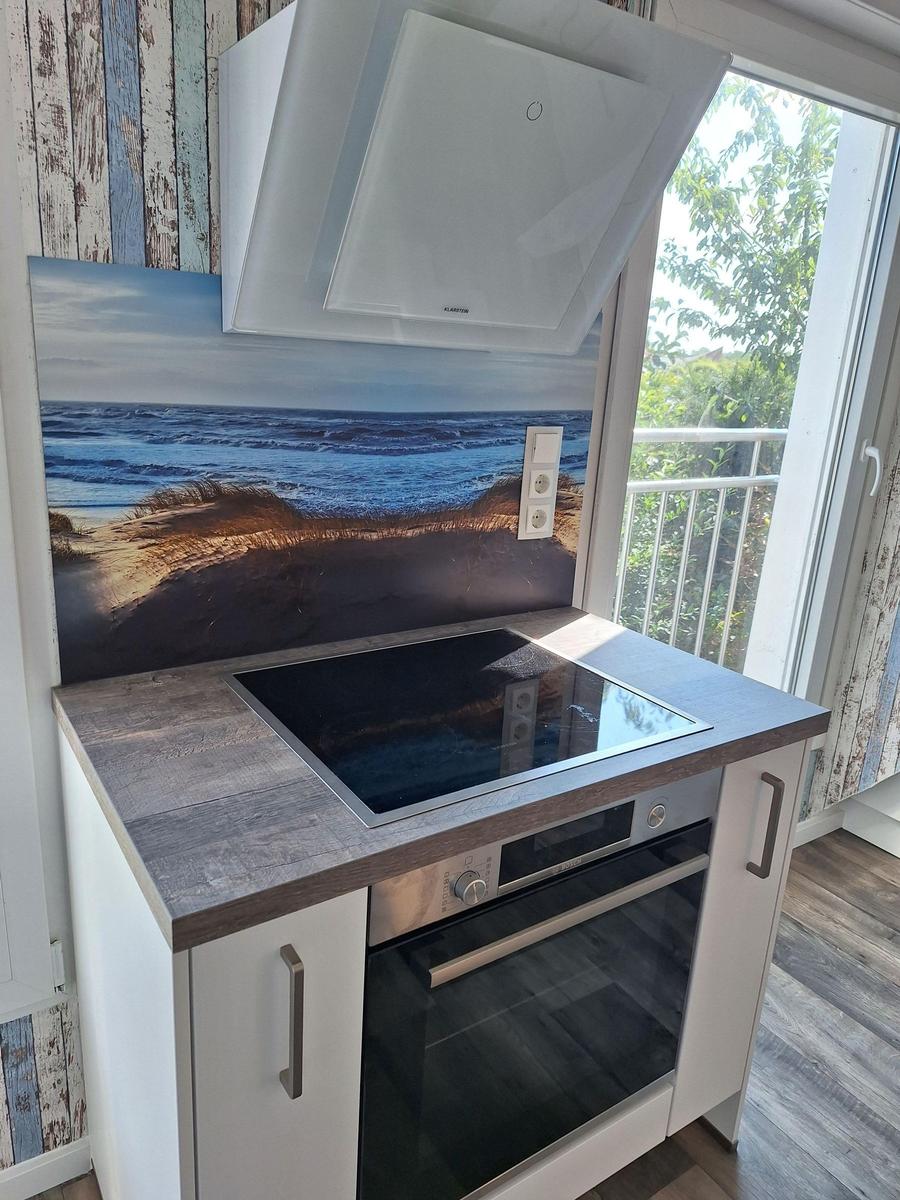 The cozy, modern vacation apartment in Norddeich, accommodating two people, features a lovely outdoor area for guests to enjoy. Guests can relax in the private garden in front of the house, furnished with garden chairs and sun loungers, making it an ideal spot to unwind and soak up the sun.