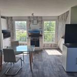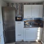 While the apartment is located within a two-family house, this outdoor space is exclusively available to the guests of the apartment. The well-appointed apartment boasts a comfortable living and dining area, a modern kitchen, and a serene bedroom, ensuring a pleasant stay.
