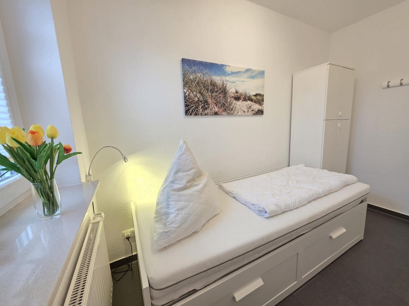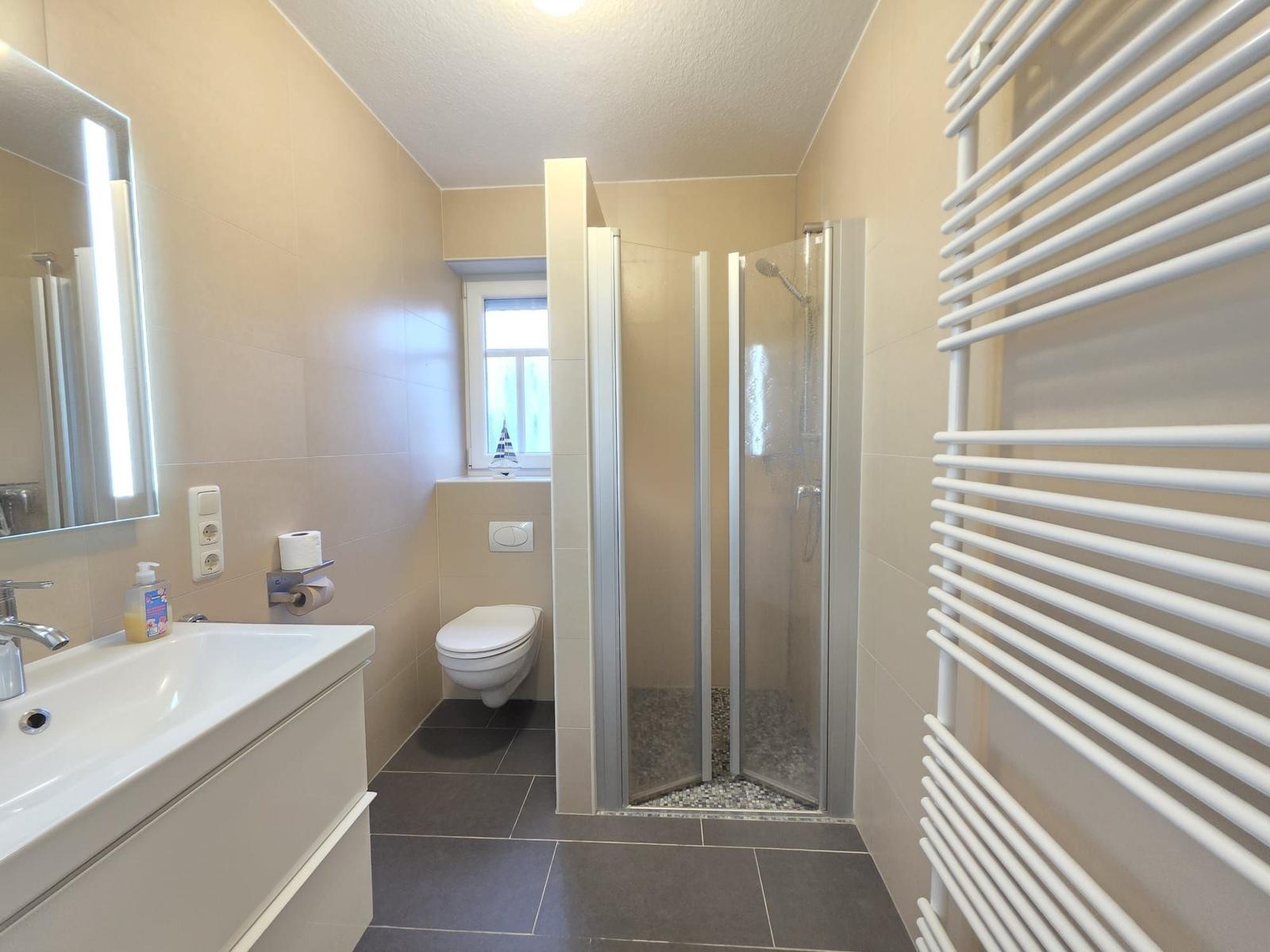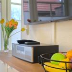 The bright bathroom offers a walk-in shower and comes complete with a starter set of essentials like soap, shampoo, and toilet paper. Guests will appreciate the cozy living area furnished with a sofa, armchair, and entertainment options such as a TV, HiFi system, and a DVD/Blu-ray player. Additional amenities include Wi-Fi, a washing machine, and various cleaning supplies, providing all the comforts of home. Relax and unwind in this well-equipped oasis, where every detail has been thoughtfully considered.