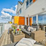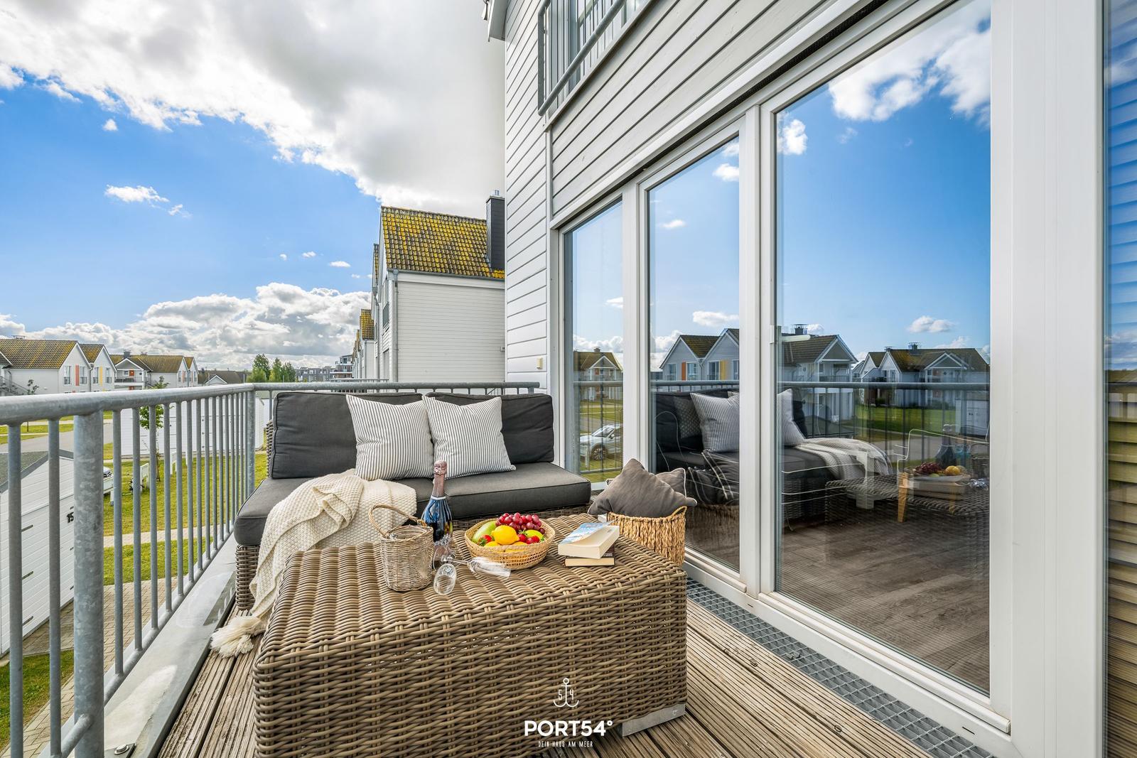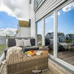 The "Relax" apartment in Olpenitz offers a spacious 97 m² layout designed for comfort and tranquility. It features an open living and dining area, complete with a modern kitchen and a cozy fireplace, perfect for unwinding after a day of exploration. Two bedrooms provide restful accommodations: one with a comfortable double bed (180x200 cm) and the other with two single beds (90x200 cm), both equipped with blackout options for a good night's sleep. The stylish bathroom is a wellness oasis, offering a whirlpool tub, shower, hand towel warmer, hairdryer, and an infrared sauna for ultimate relaxation. Guests will also enjoy two inviting balconies, ideal for soaking in the sun. A parking space is available, and pets up to 10 kg are welcome.