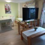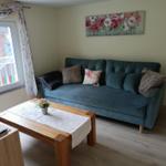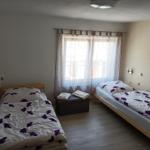 The Stork's Nest is a charming 44 m² apartment located on the upper floor. It features a bedroom equipped with two single beds (90 cm) and a spacious wardrobe. The combined living and sleeping area includes an additional bed, a sofa bed, a flat-screen TV, and a dining table with four chairs. The kitchenette is well-appointed, offering a refrigerator (with freezer compartment), a mobile two-burner ceramic stove, kettle, coffee machine, microwave, and ample cookware, dishes, and utensils. Complimentary Wi-Fi is available, along with towels and bed linens. Guests have access to a shared common room, which includes a large stove with oven, washing machine, dryer, and comfortable seating. A small covered beer garden and a garden with various seating options are also available for guest use. Breakfast and dinner can be arranged upon request.