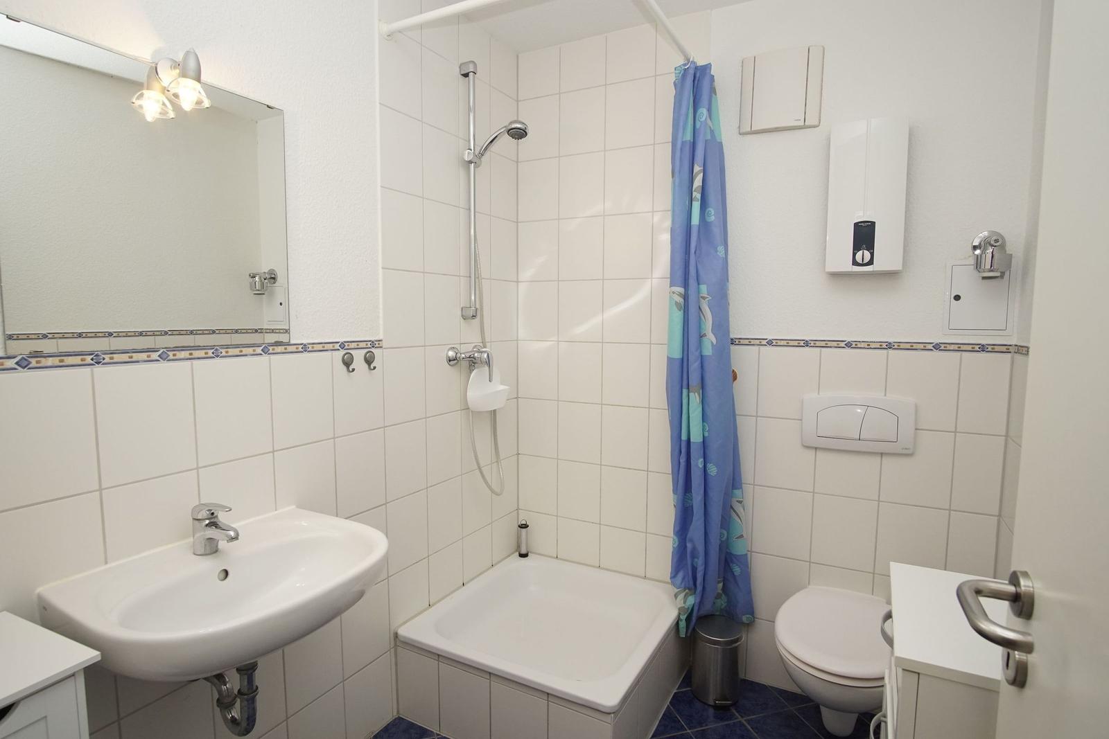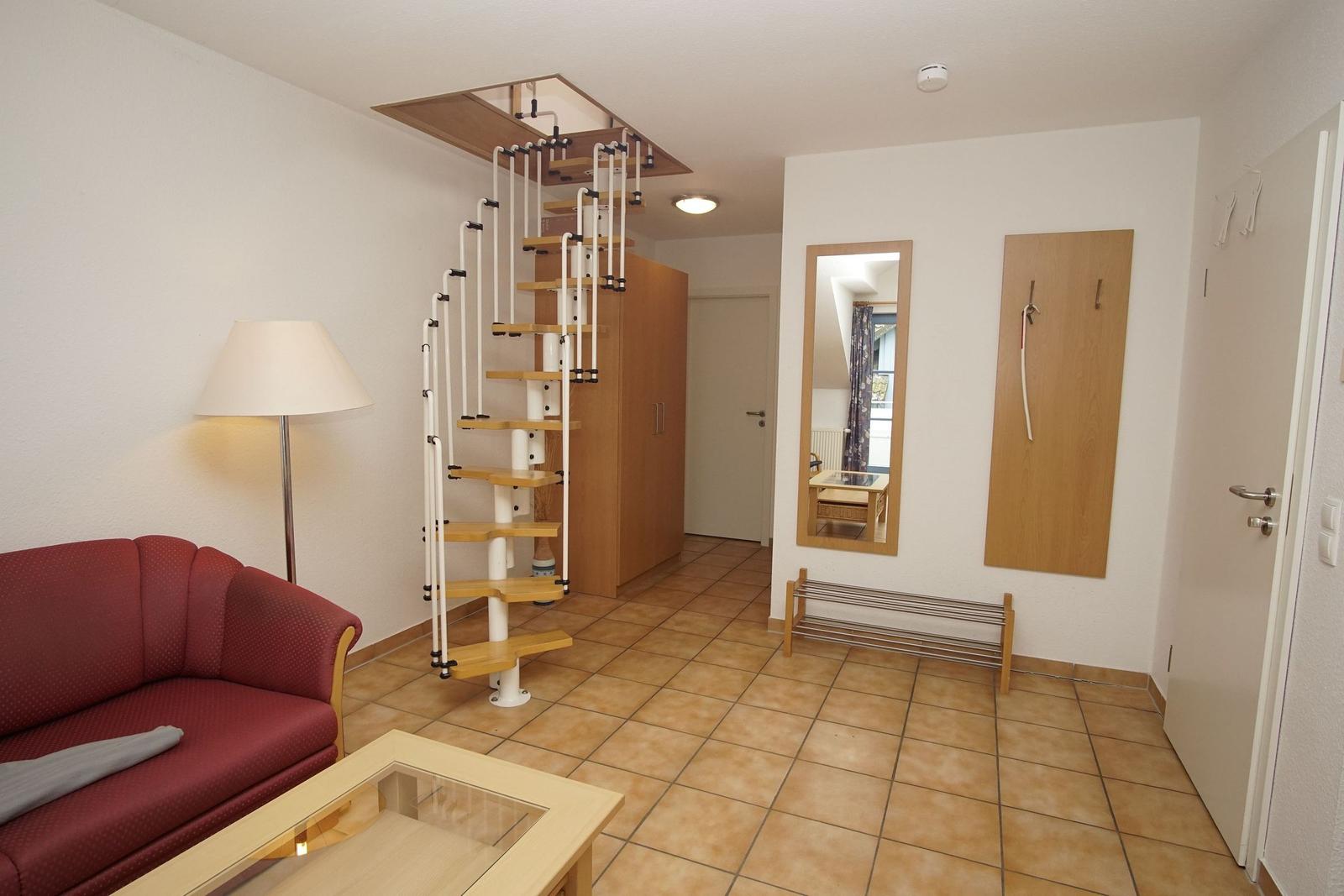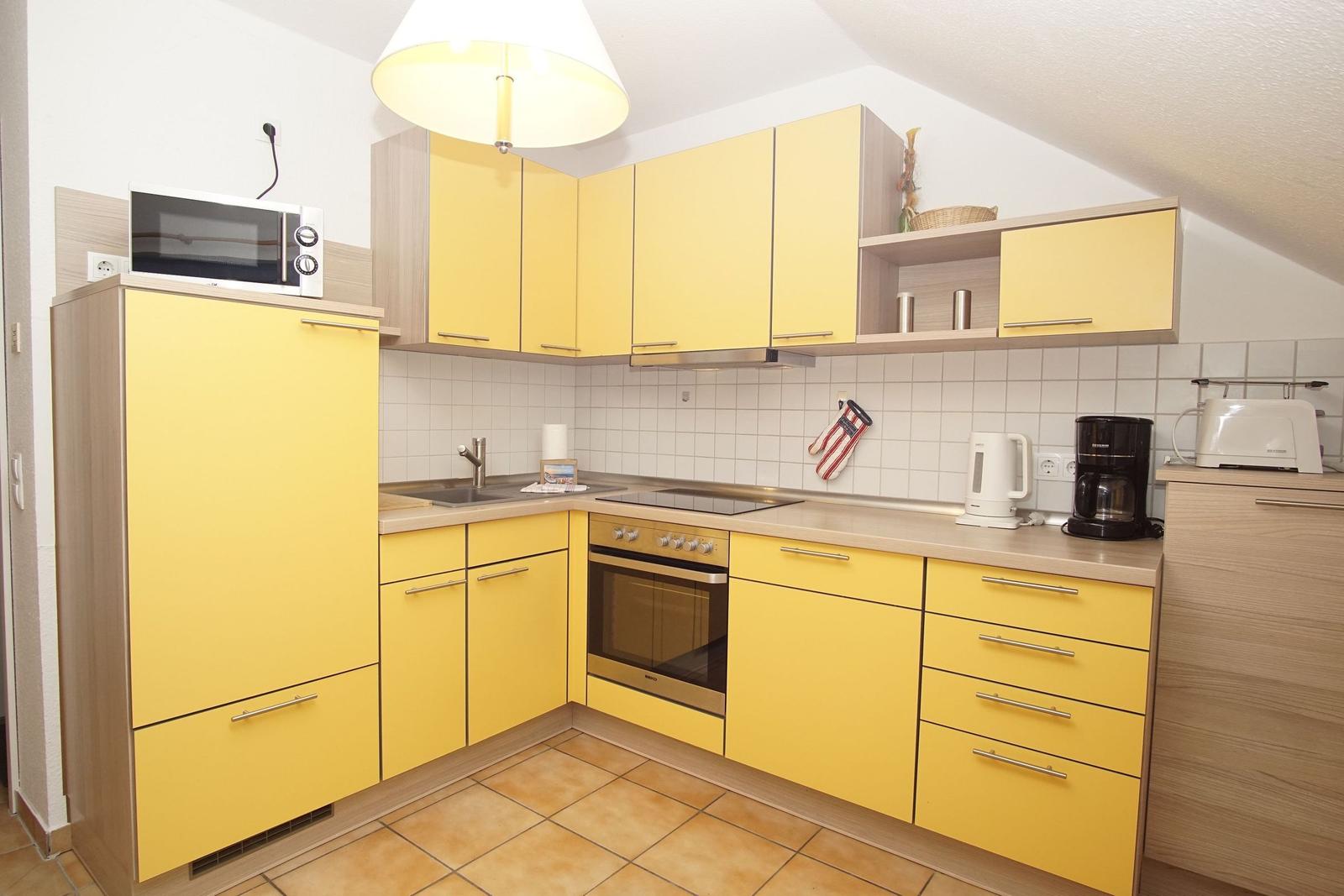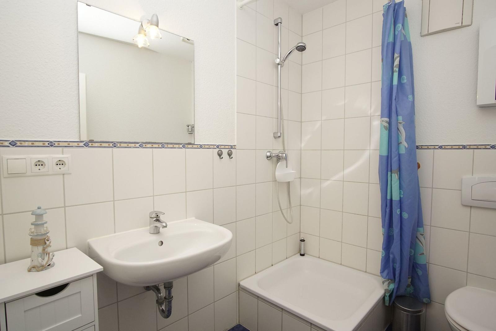 The Ferienresidenz Kap Arkona offers a comfortable and well-appointed two-room vacation apartment suitable for up to 4 guests (+1 infant). Spanning 40 m², the space includes a cozy living room featuring a dining area and a seating arrangement with cable TV, creating an inviting atmosphere for relaxation. The modern kitchenette is equipped with a two-burner ceramic stove, dishwasher, refrigerator with freezer compartment, microwave, toaster, kettle, and coffee machine, along with ample cutlery, dishes, and kitchen utensils.