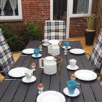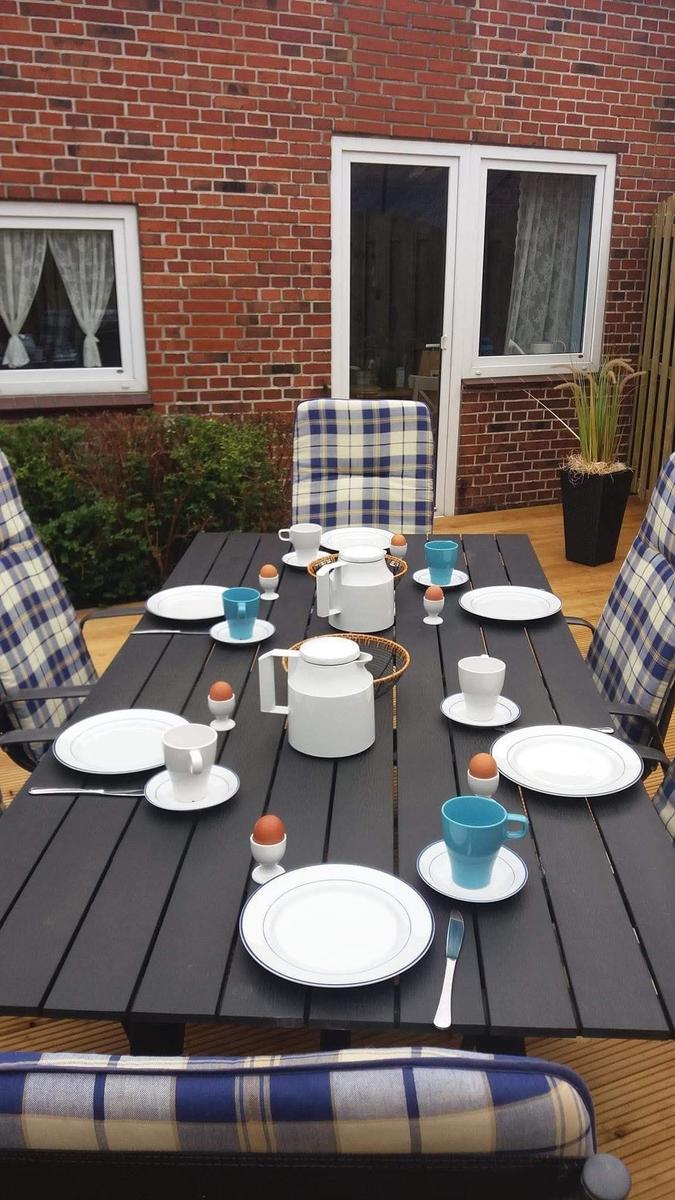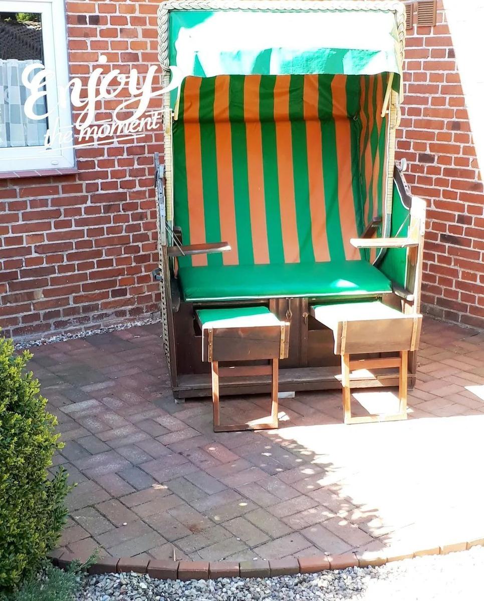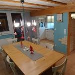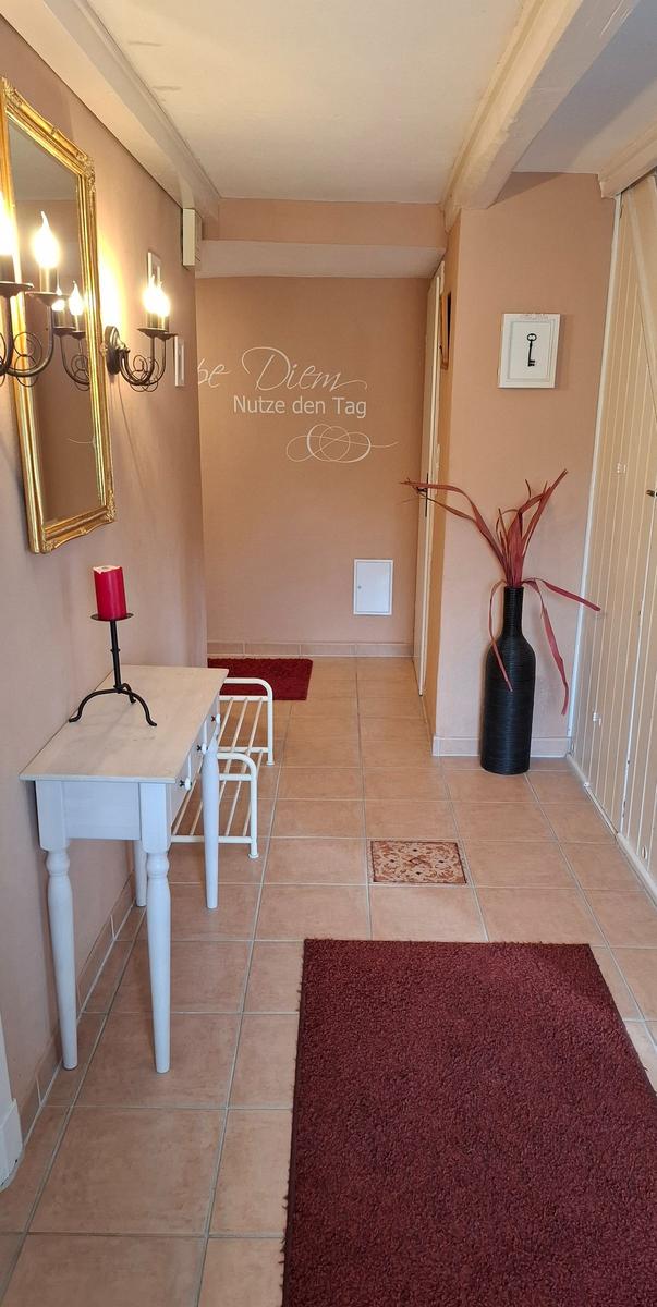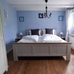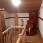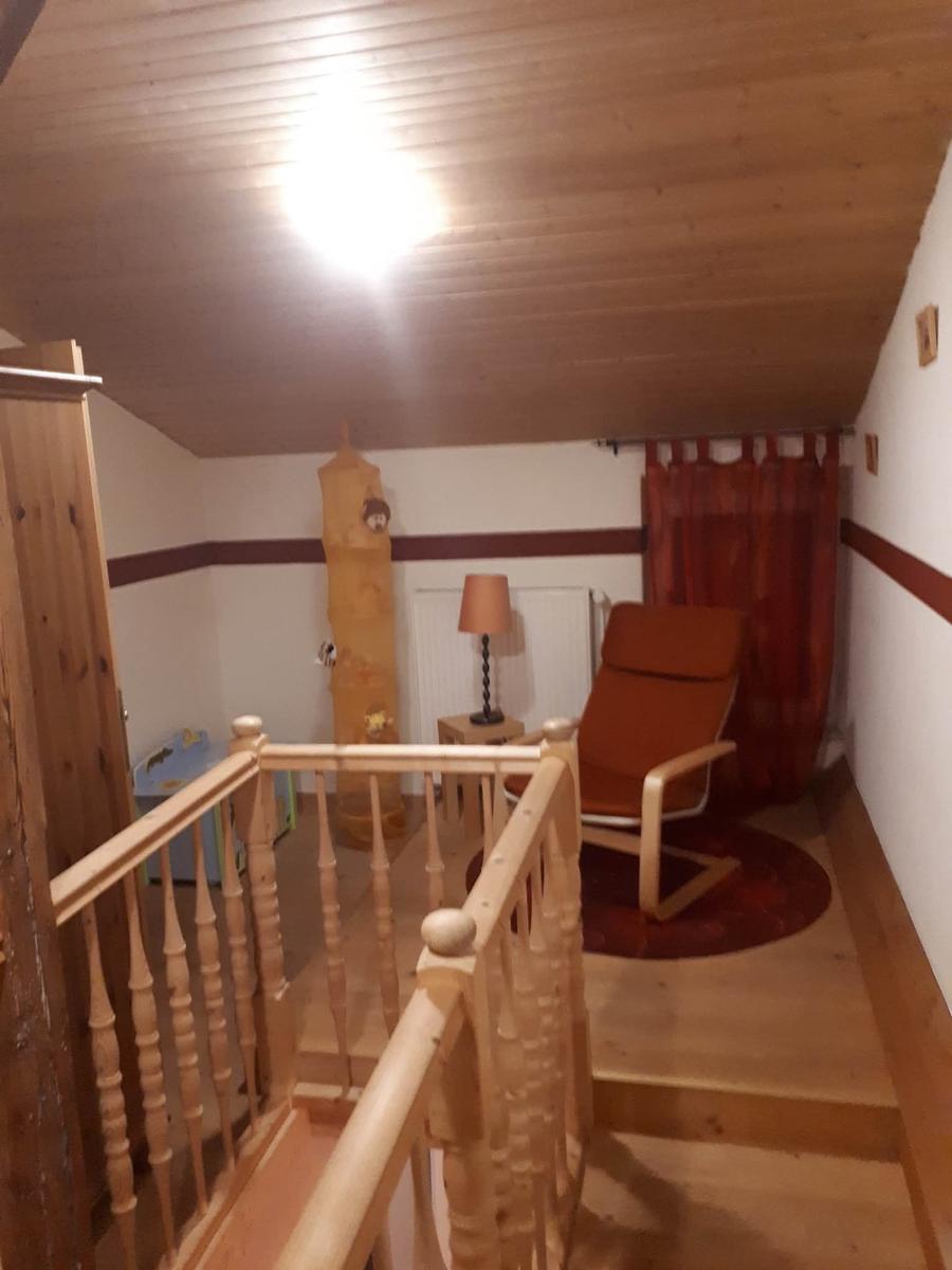 The ground floor includes a practical bathroom with a washing machine, while a narrow staircase ascends to the upper level, which features two additional bedrooms with double beds. Here, guests will also find a small, thoughtfully designed play area for children and an extra guest WC. The accommodation is characterized by its inviting atmosphere, beautiful details, and visible old beams, creating a warm and homely character throughout.
