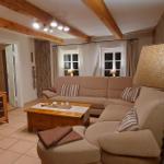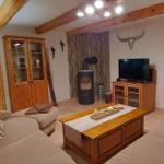 This stylish 100 m² accommodation offers a cozy retreat for up to 6 guests, making it ideal for families, friends, or couples seeking relaxation. Upon entering, a spacious hallway leads directly to a welcoming living area featuring a large, comfortable couch and a charming fireplace for cozy evenings. The adjacent dining area is perfect for shared meals. The fully equipped kitchen connects to the terrace for delightful outdoor dining.