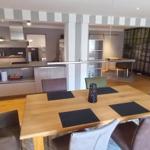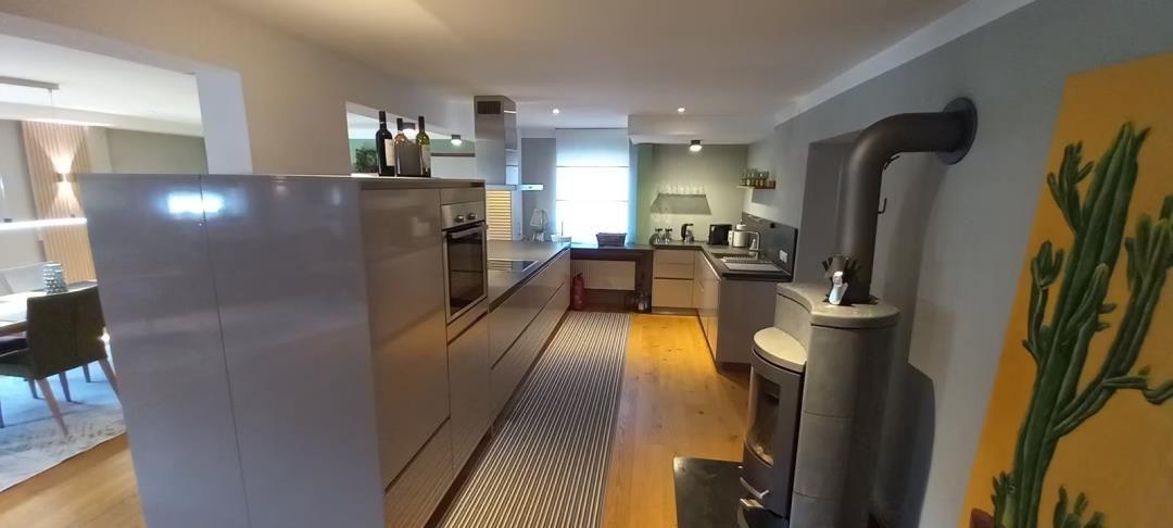 This modern and stylishly furnished apartment in the countryside, located near Haag and Wasserburg, offers 115 m² of barrier-free living space, accommodating 2 to 4 guests. It features a double bed and a high-quality double sofa bed, both situated in a spacious room, visually separated by a wardrobe. An additional room for a fifth guest can be booked for €48 per night.