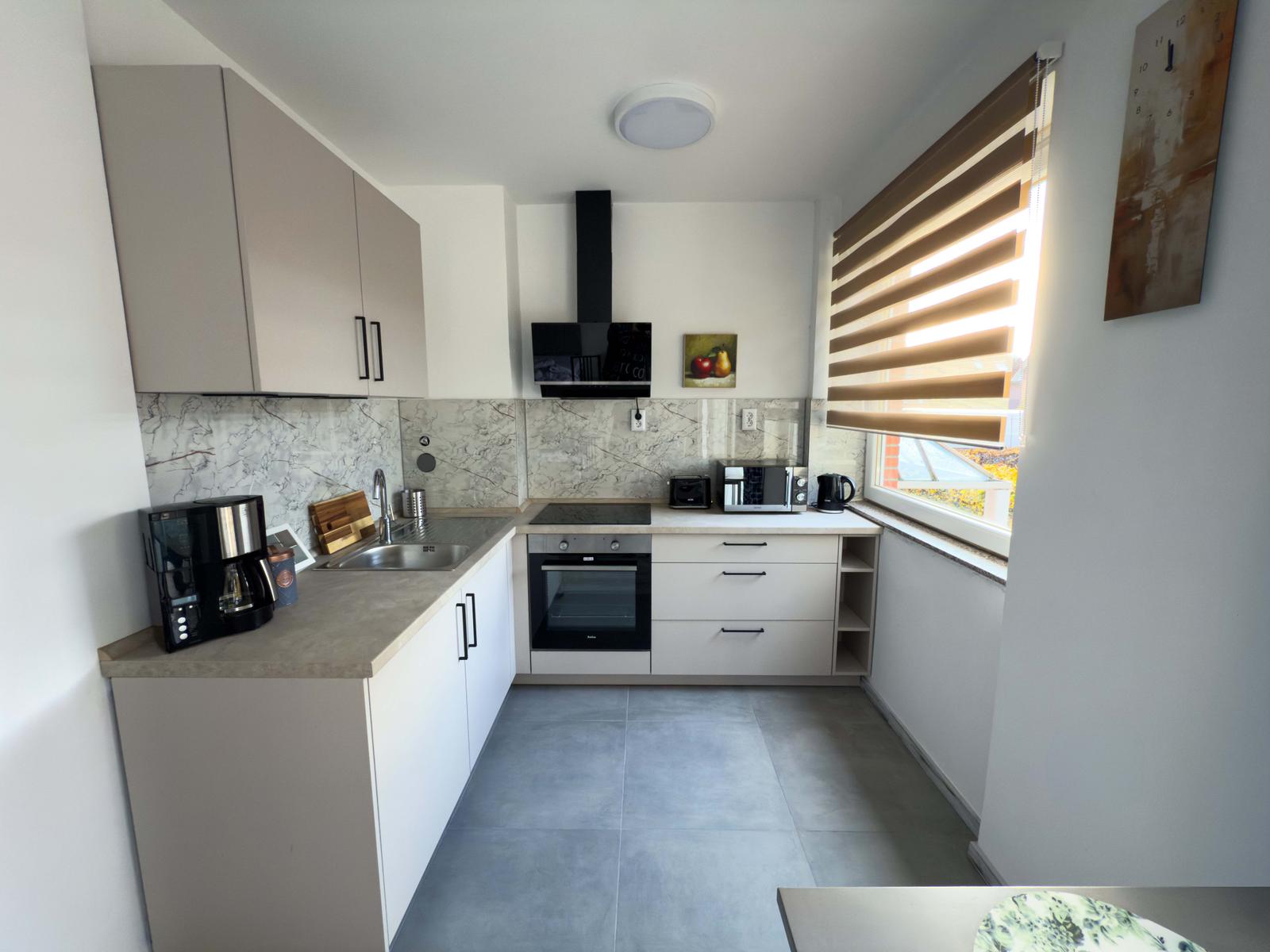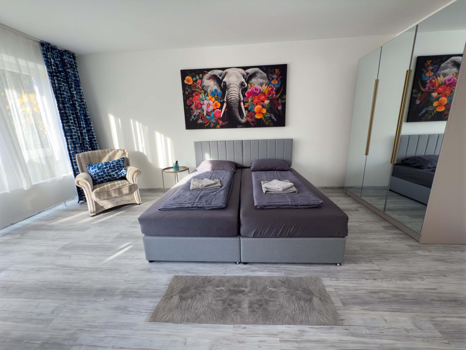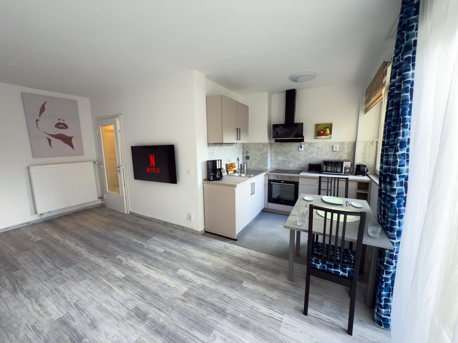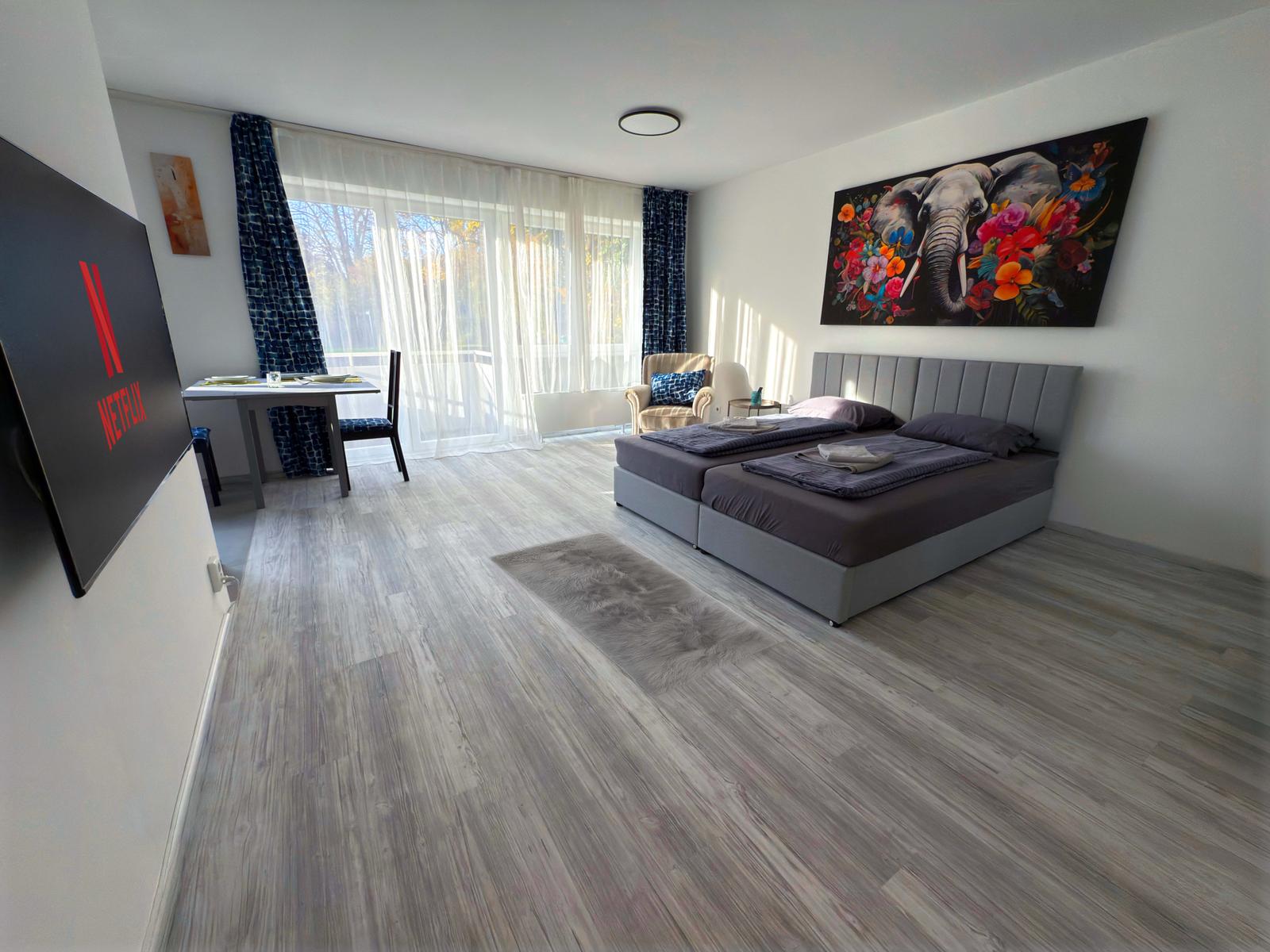 Welcome to our newly renovated apartment in Reinbek near Hamburg. The bright flat offers a modern kitchen, new bathroom, balcony, WiFi, Smart TV, parking, a double bed (convertible to two singles) and a sofa bed.