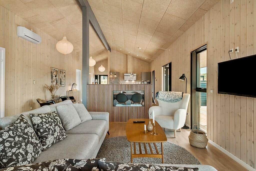 This vacation rental in Saltum, North Jutland, accommodates up to 7 adults and 2 children, offering a cozy interior spread over 129 m². The property includes essential amenities such as a washing machine, dishwasher, and dryer, ensuring convenience during the stay. For relaxation, guests have access to a sauna, enhancing the comfort of their experience. High-speed internet is also available, allowing guests to stay connected. The spacious layout provides ample room for families and groups, with well-furnished areas designed for leisure and relaxation. Although the property does not specify communal facilities, the inviting décor and thoughtful amenities create a welcoming atmosphere. The location is just 1,500 meters from the nearest beach and 3,000 meters to shopping options, making it a practical choice for both relaxation and exploration.