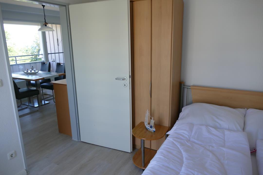 This modern 3-room holiday apartment accommodates up to 4 guests and features approximately 55m² of living space. Recently renovated, it includes a comfortable living area with a dining table for four, a flat-screen TV, and a radio/CD player.
