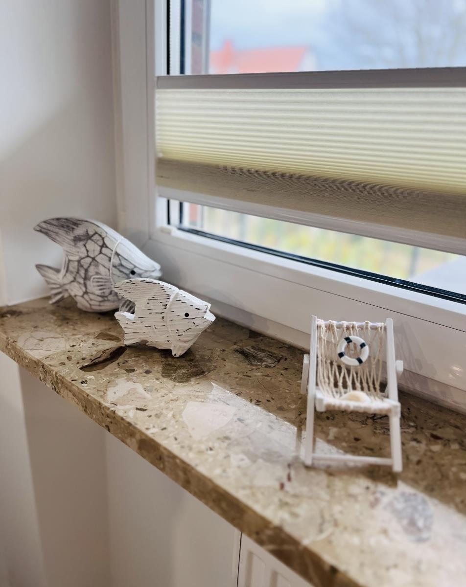 This newly renovated, modern, and bright 2-room vacation apartment accommodates up to 4 people, covering approximately 50m². Located on the first floor in Scharbeutz, it offers partial sea views from the balcony. The living area features a sofa bed for two, a dining table for four, a flat-screen TV, and complimentary Wi-Fi. The well-equipped kitchen includes a ceramic cooktop, oven, refrigerator with freezer compartment, microwave, dishwasher, coffee machine, toaster, and kettle, all with a view of the balcony.